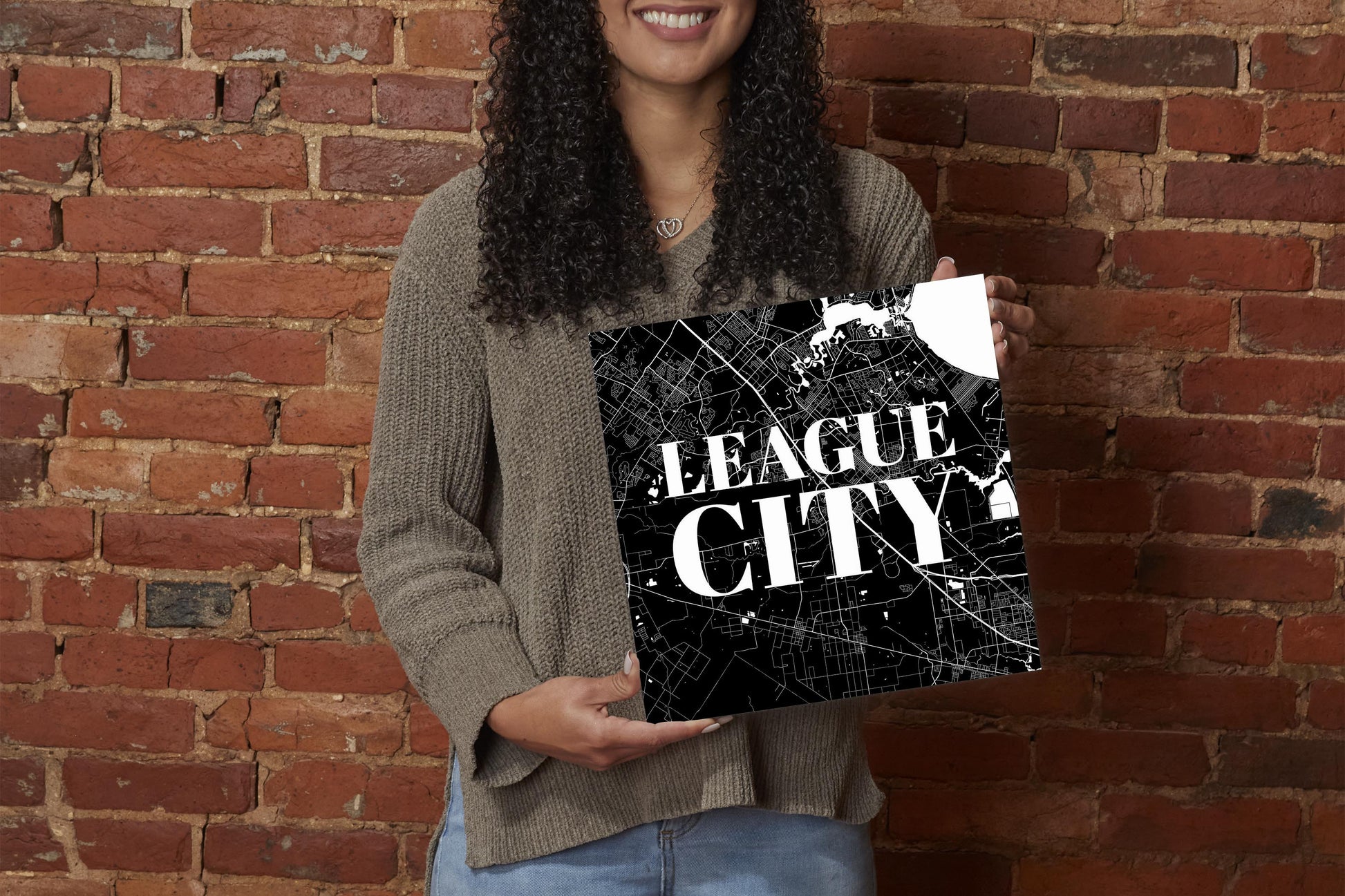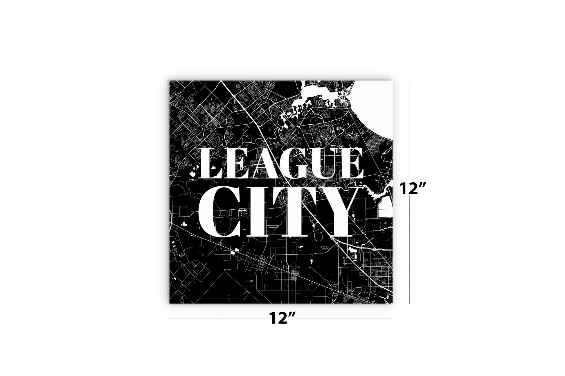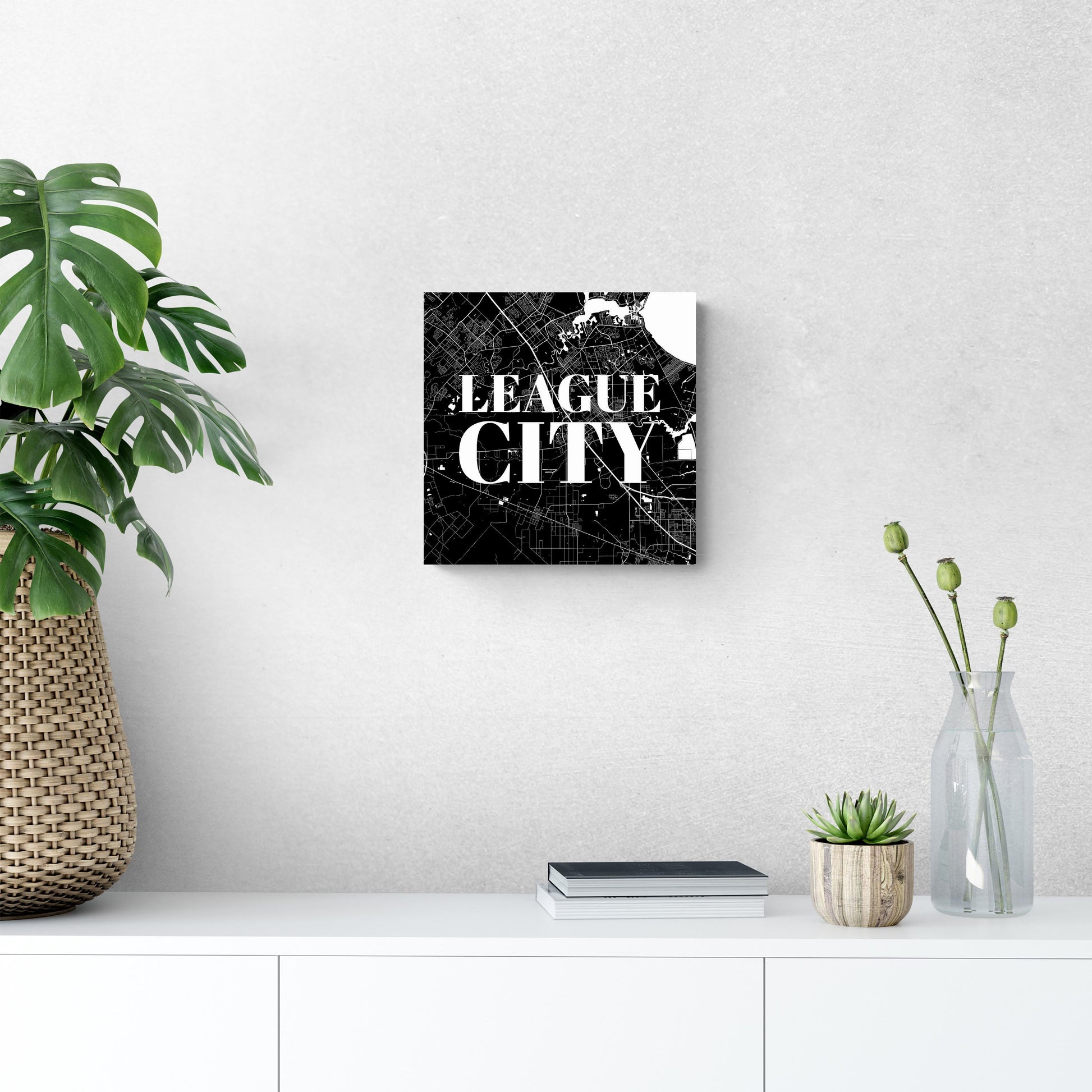Minimalistic B&W Texas League City Map | Wood Sign | Eaches | Min 2