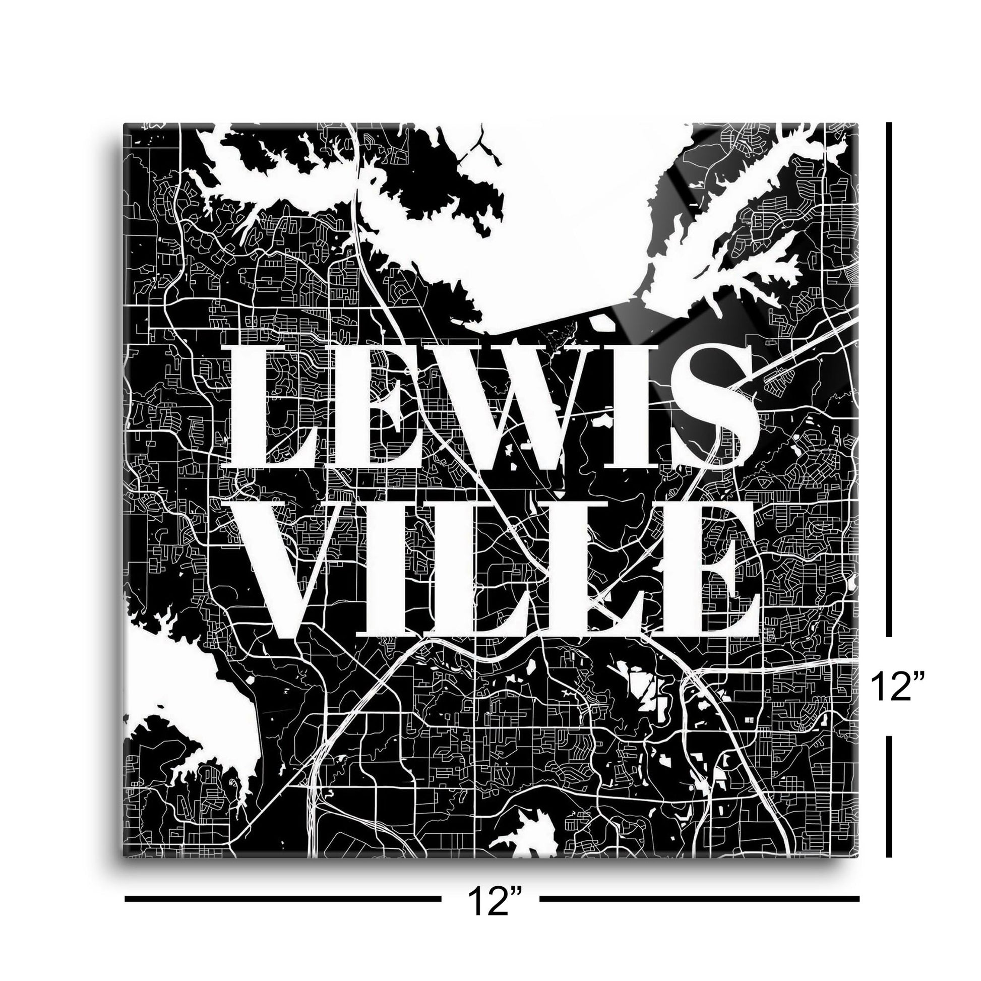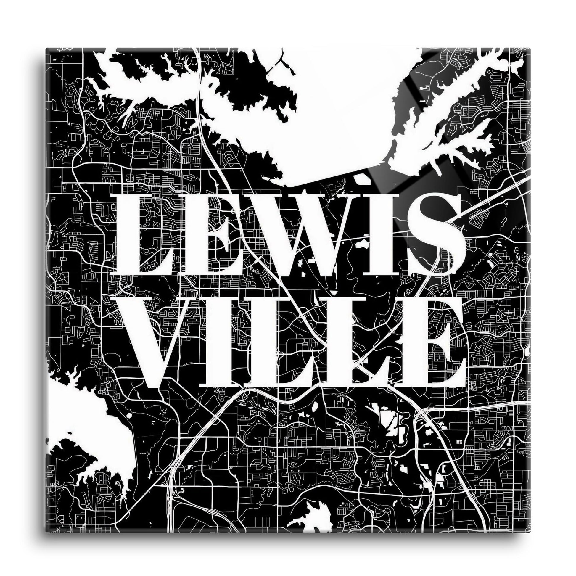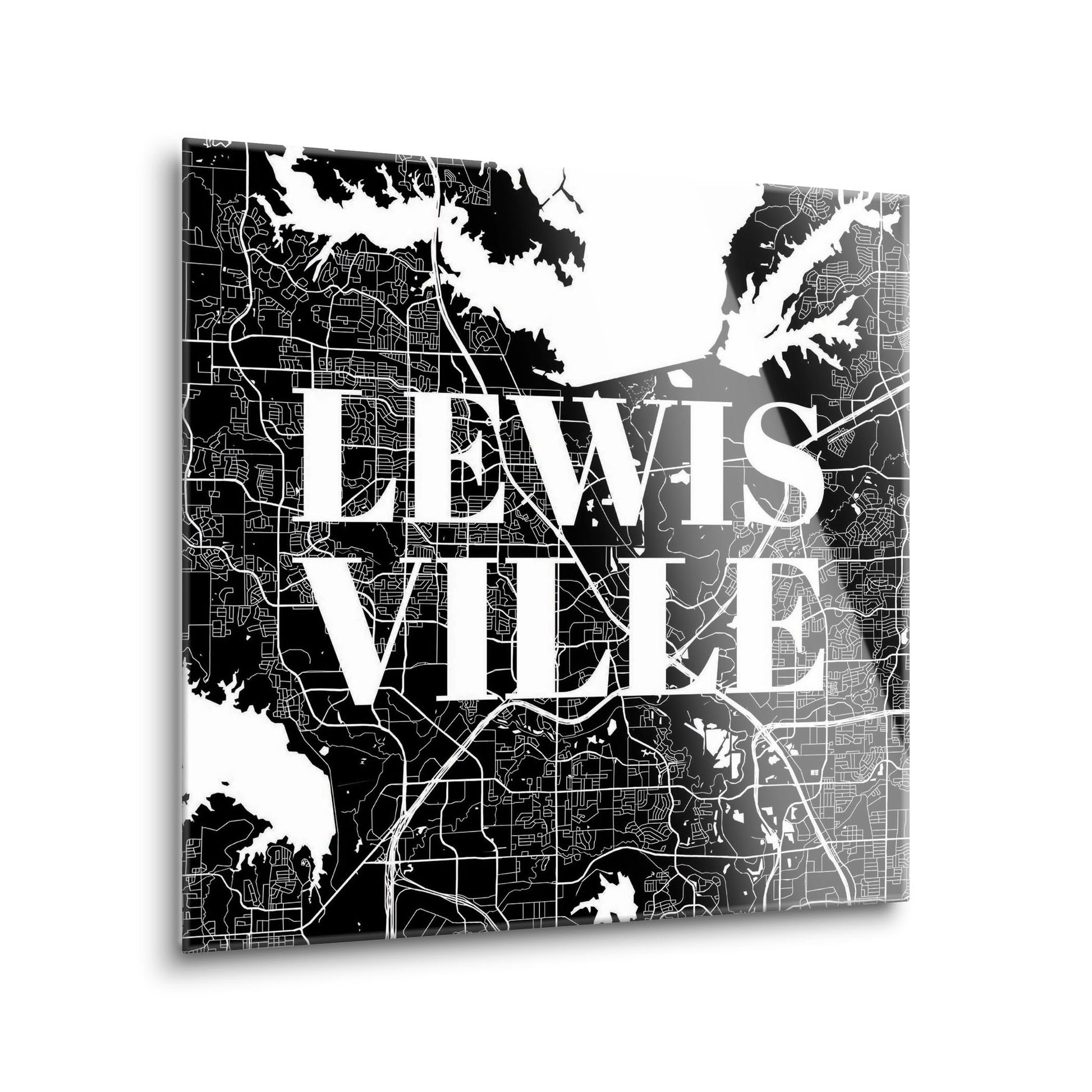 Minimalistic B&W Texas Lewisville Map | Hi-Def Glass Art | Eaches | Min 1