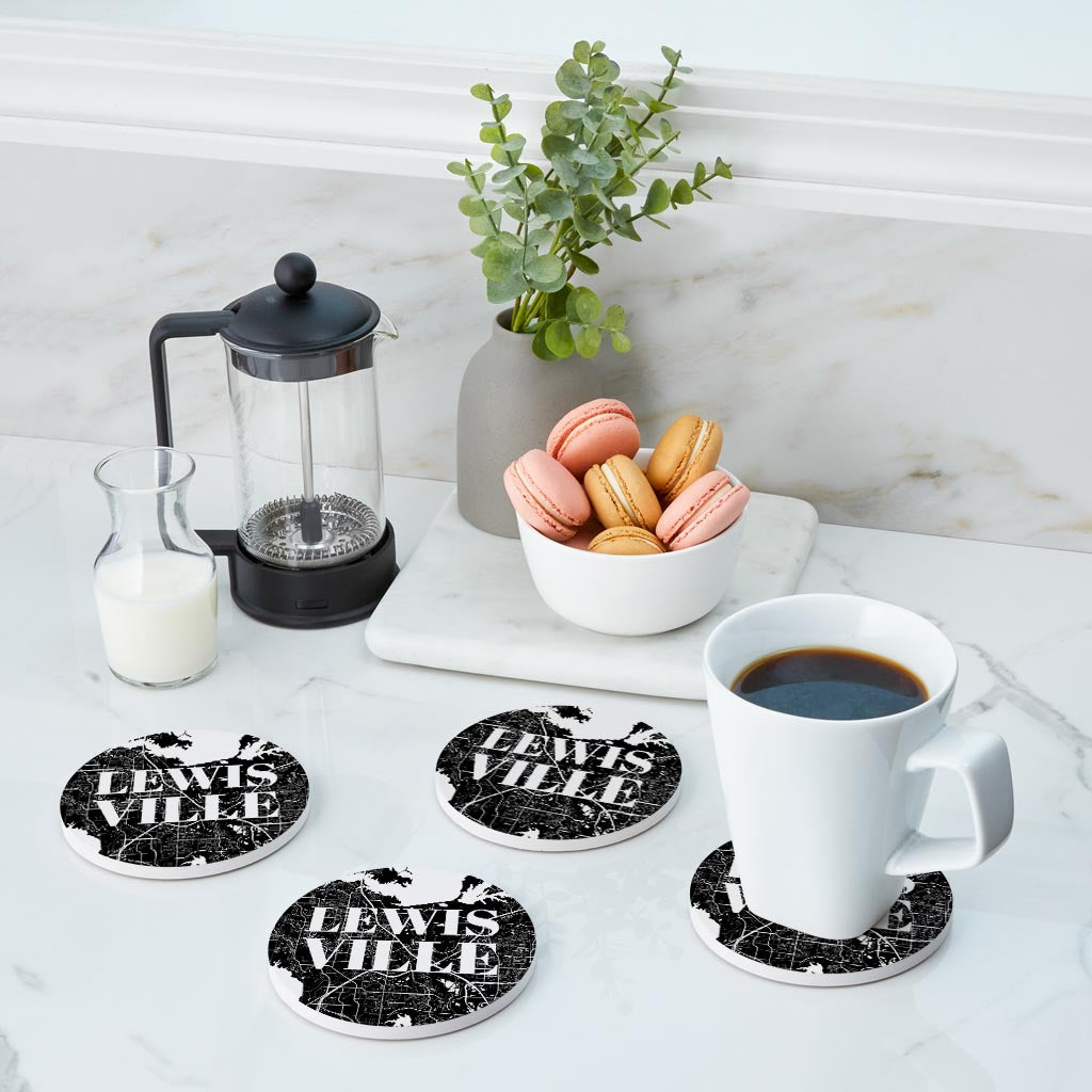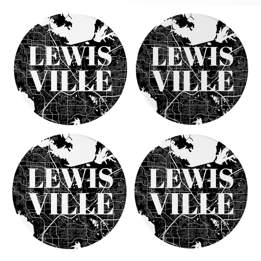 Minimalistic B&W Texas Lewisville Map | Absorbent Coasters | Set of 4 | Min 2