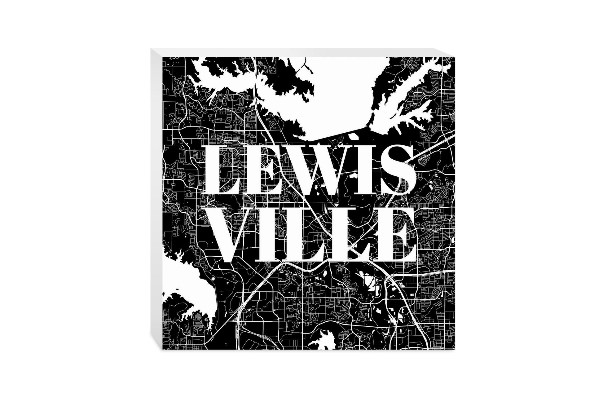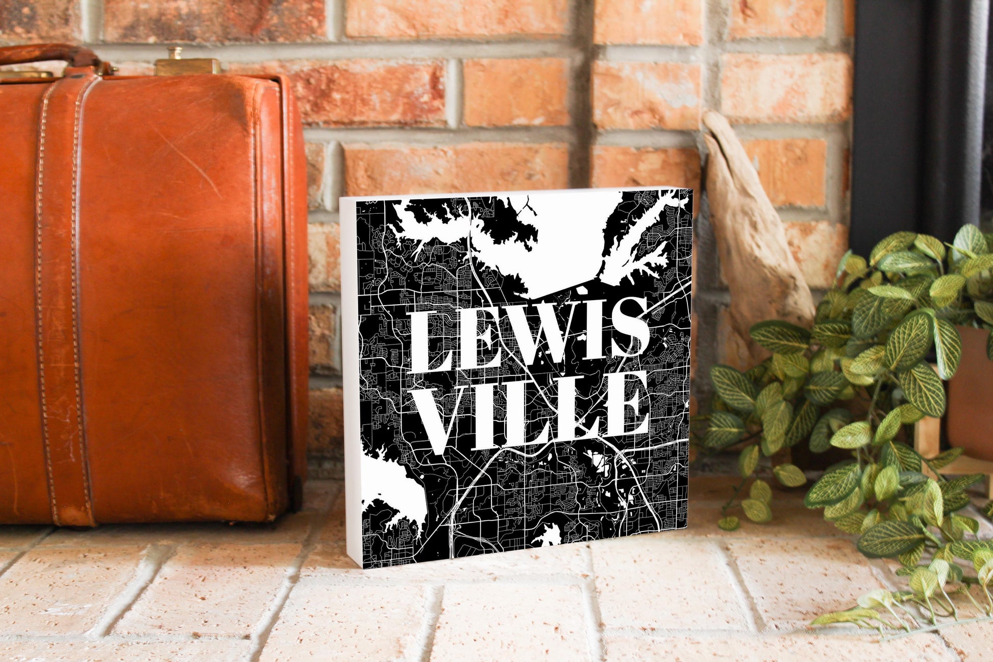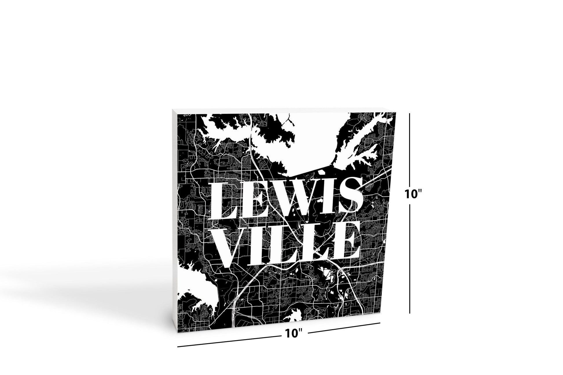 Minimalistic B&W Texas Lewisville Map | Wood Block | Eaches | Min 2