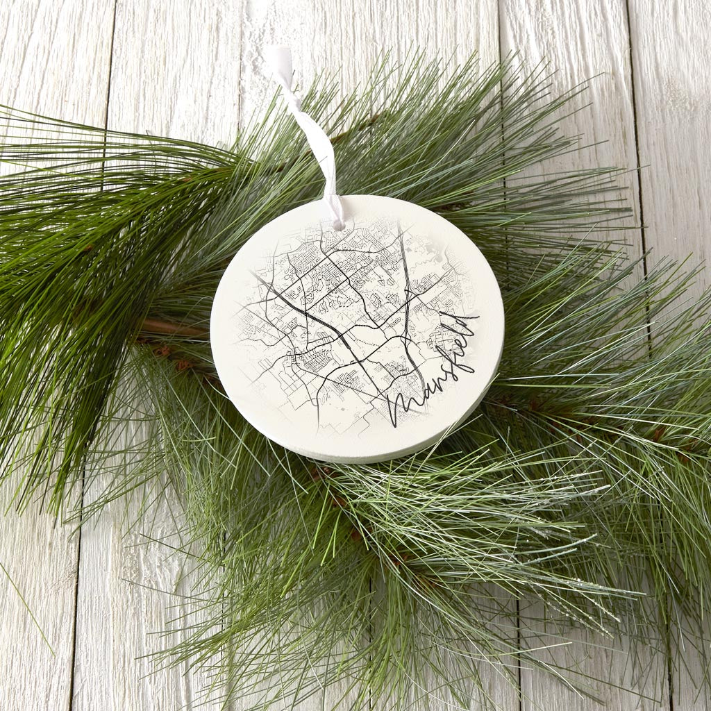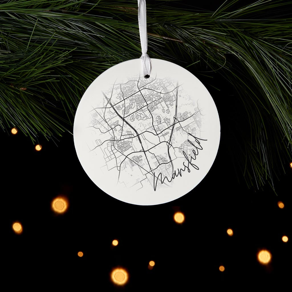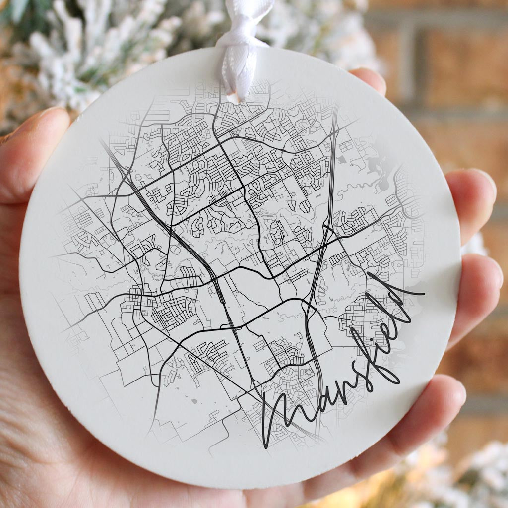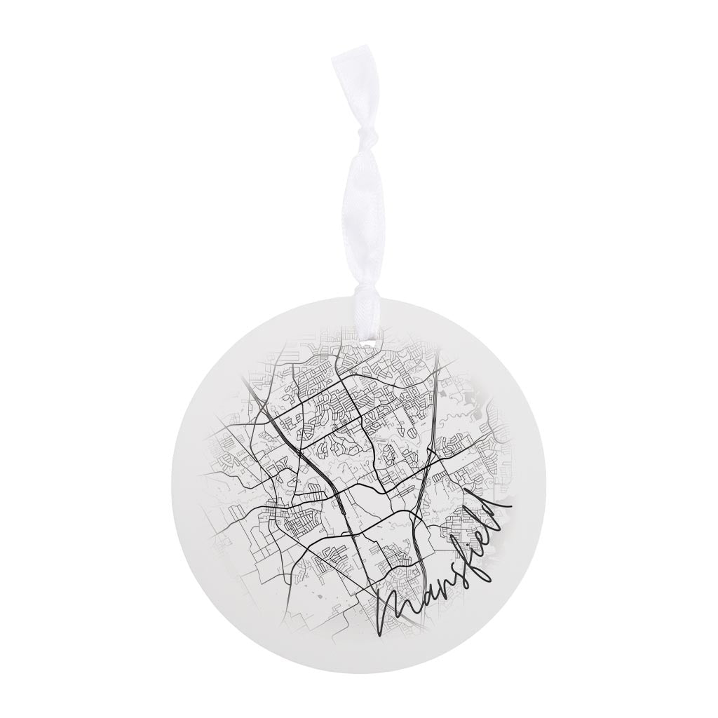 Minimalistic B&W Texas Mansfield Circle Map | Wood Ornament | Eaches | Min 6