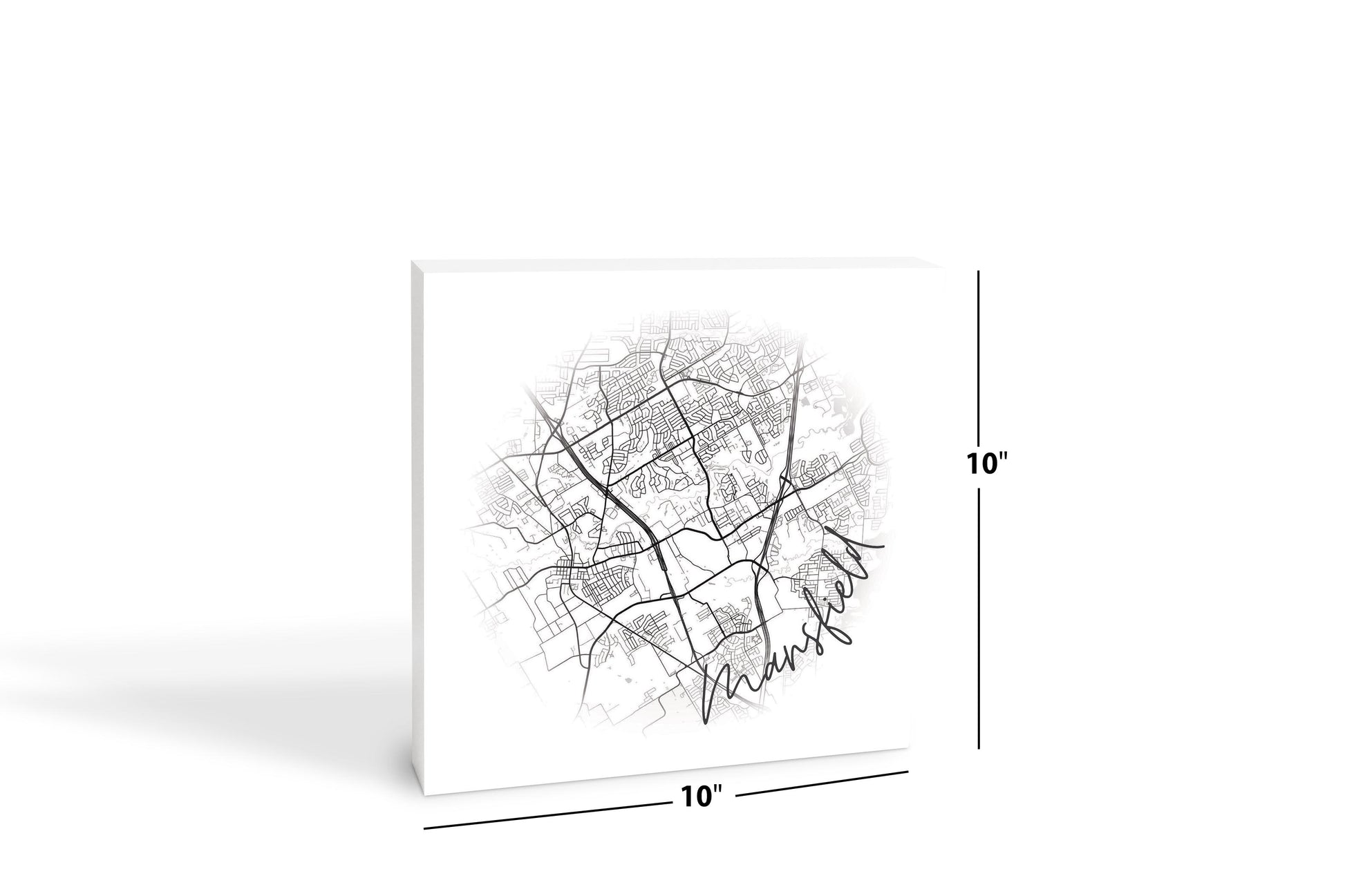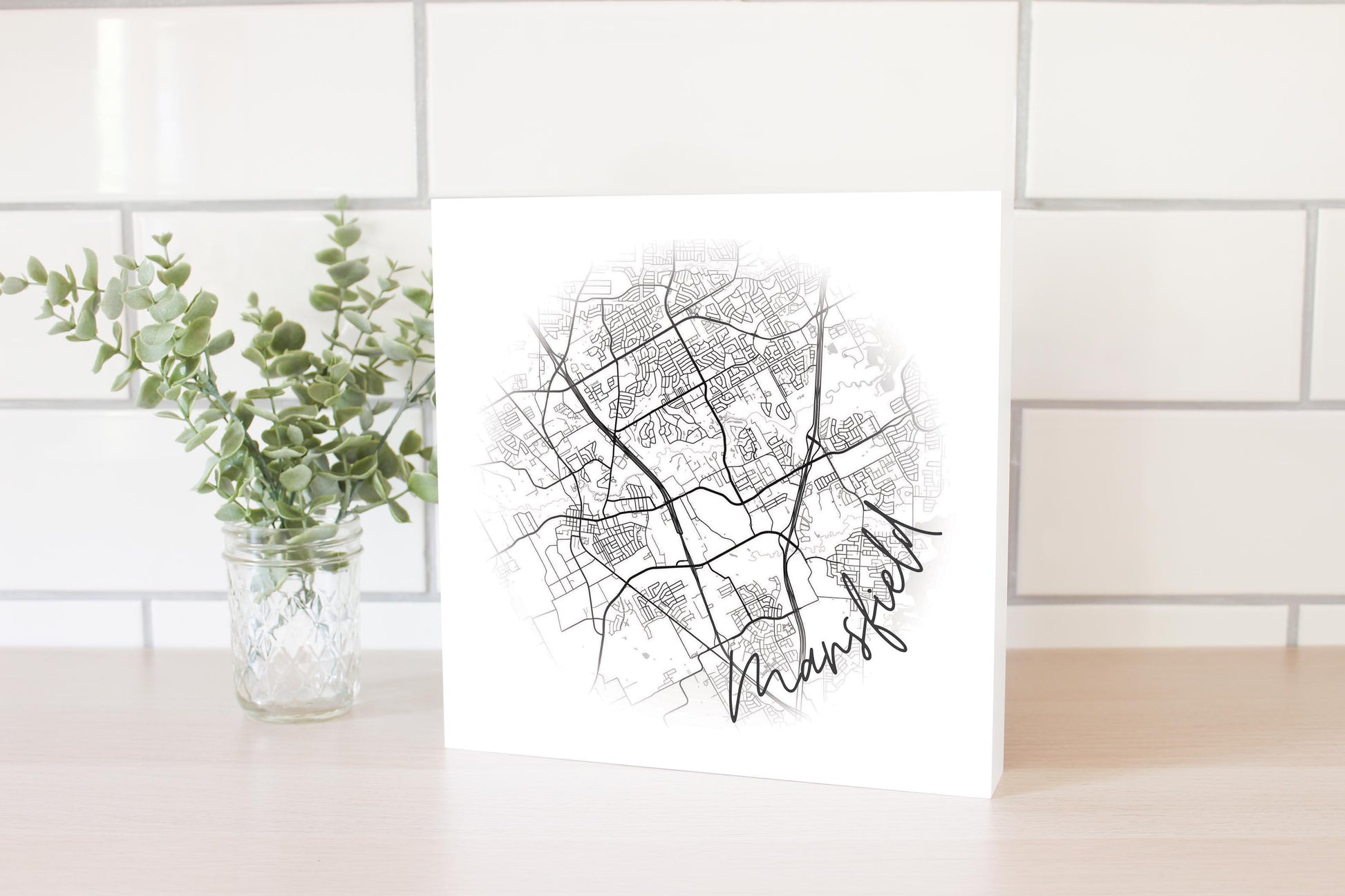 Minimalistic B&W Texas Mansfield Circle Map | Wood Block | Eaches | Min 2