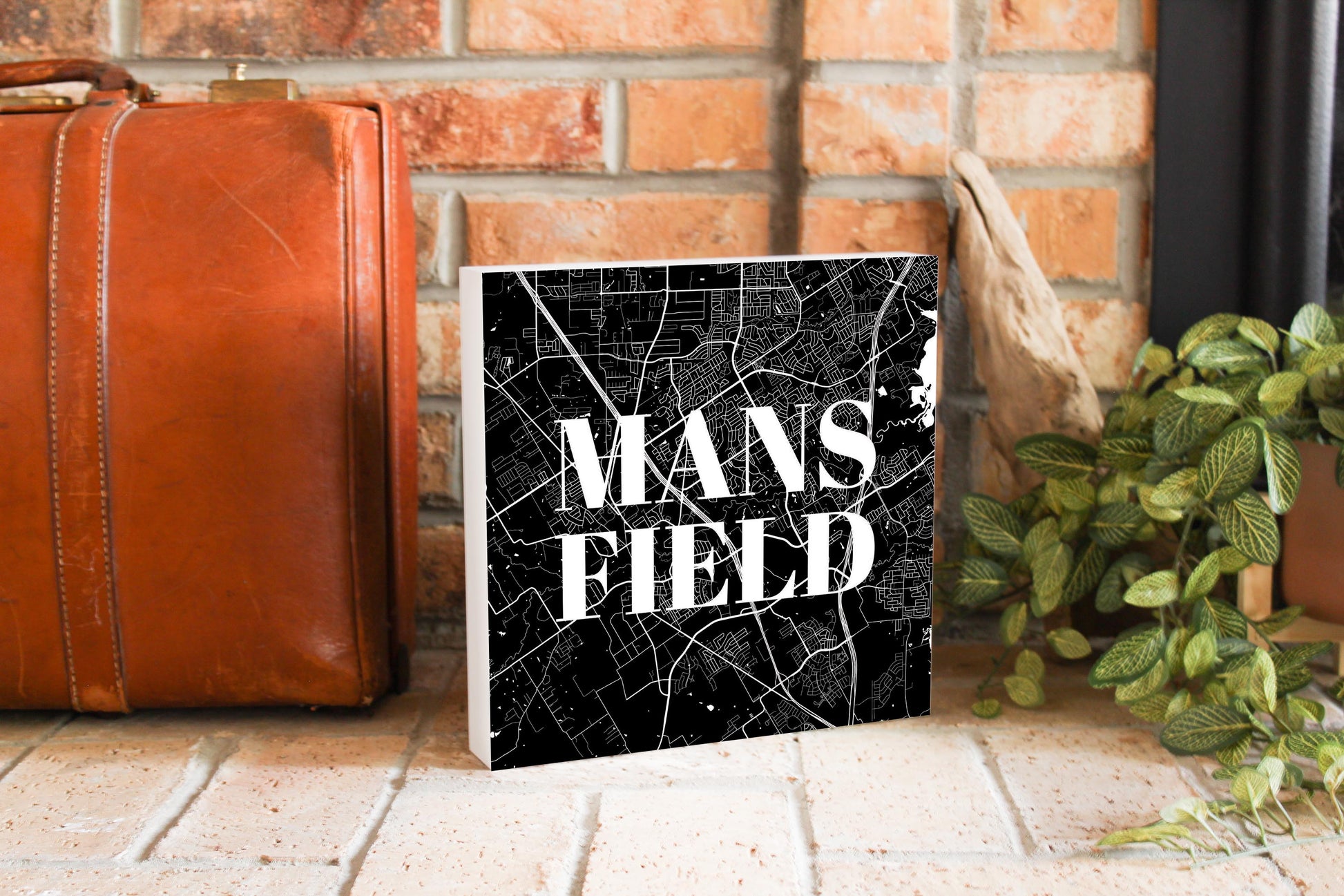 Minimalistic B&W Texas Mansfield Map| Wood Block | Eaches | Min 2
