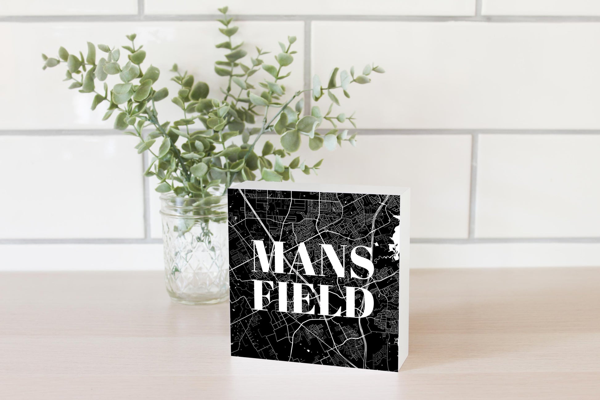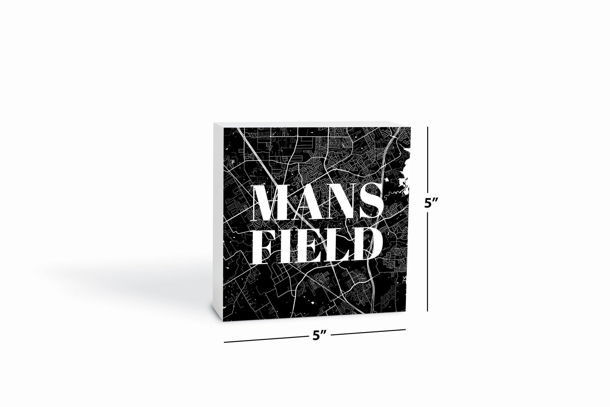 Minimalistic B&W Texas Mansfield Map | Wood Block | Eaches | Min 4