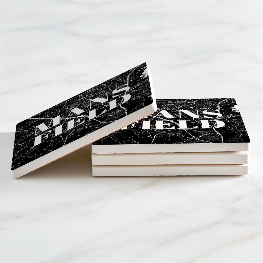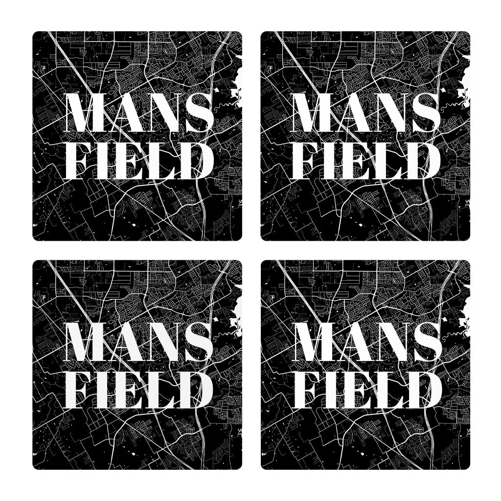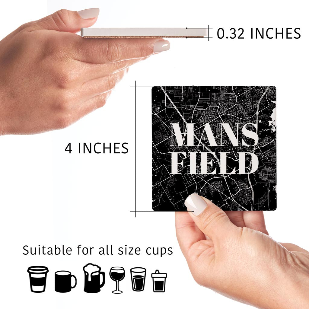 Minimalistic B&W Texas Mansfield Map | Absorbent Coasters | Set of 4 | Min 2