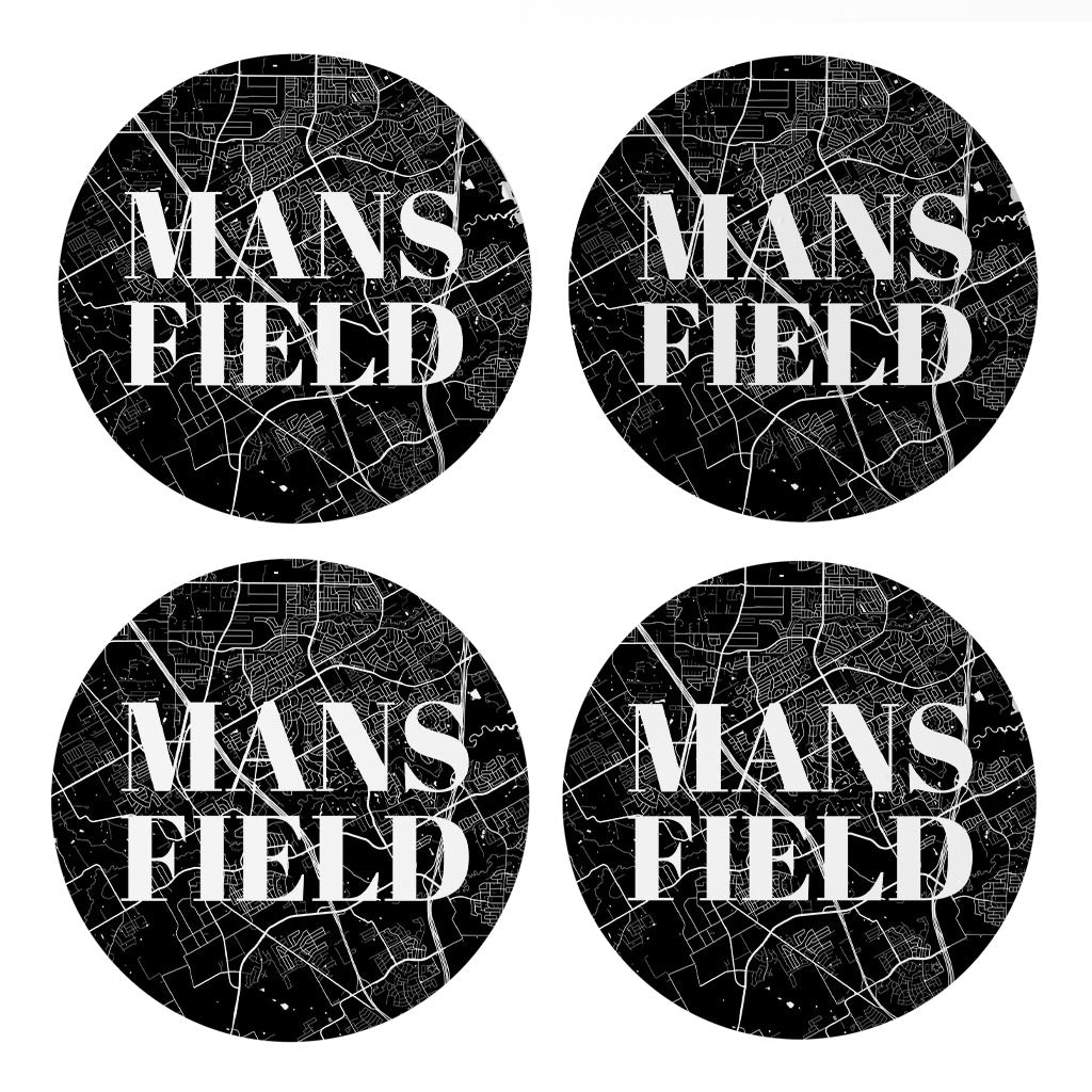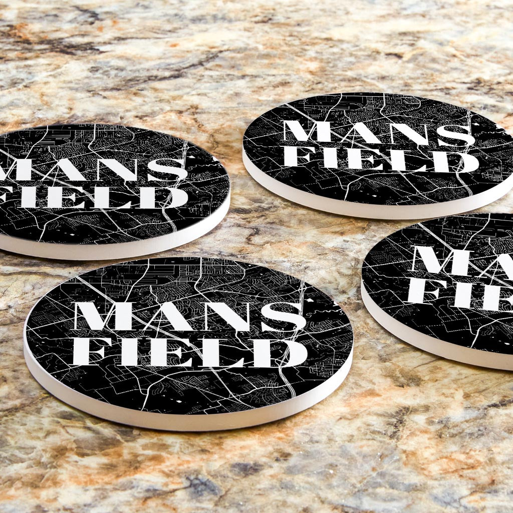 Minimalistic B&W Texas Mansfield Map | Absorbent Coasters | Set of 4 | Min 2