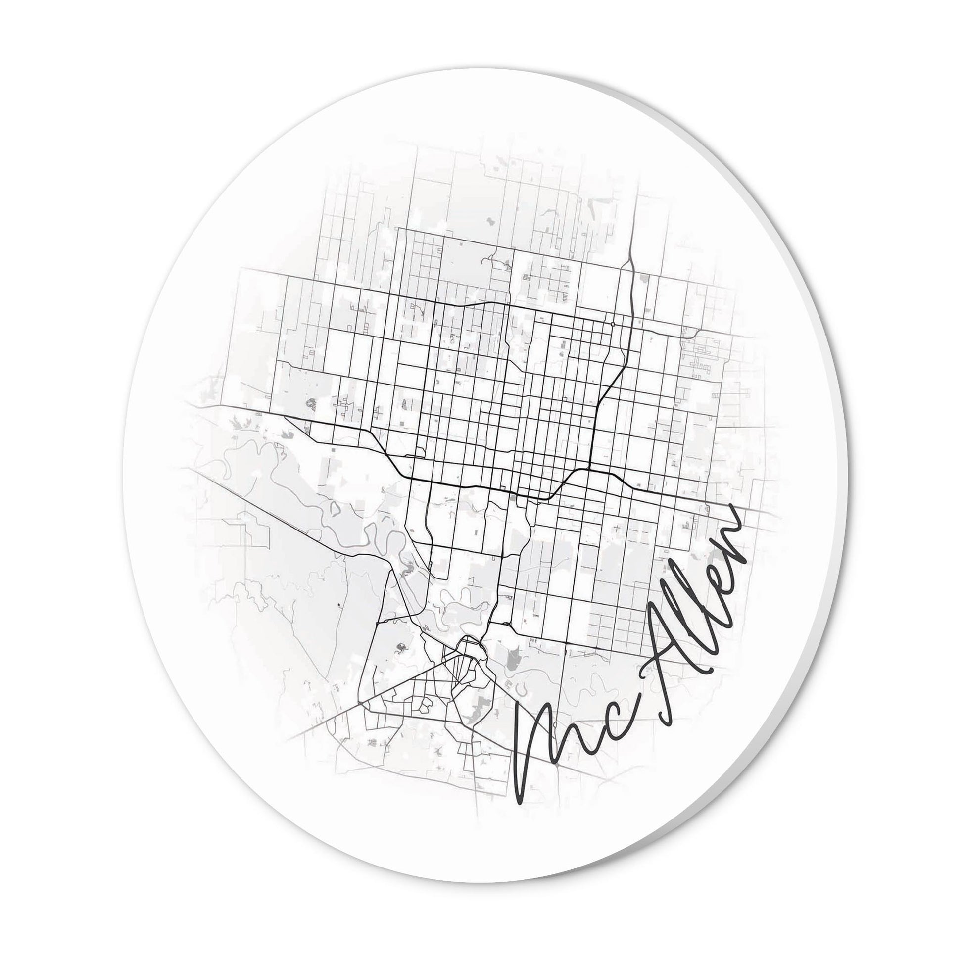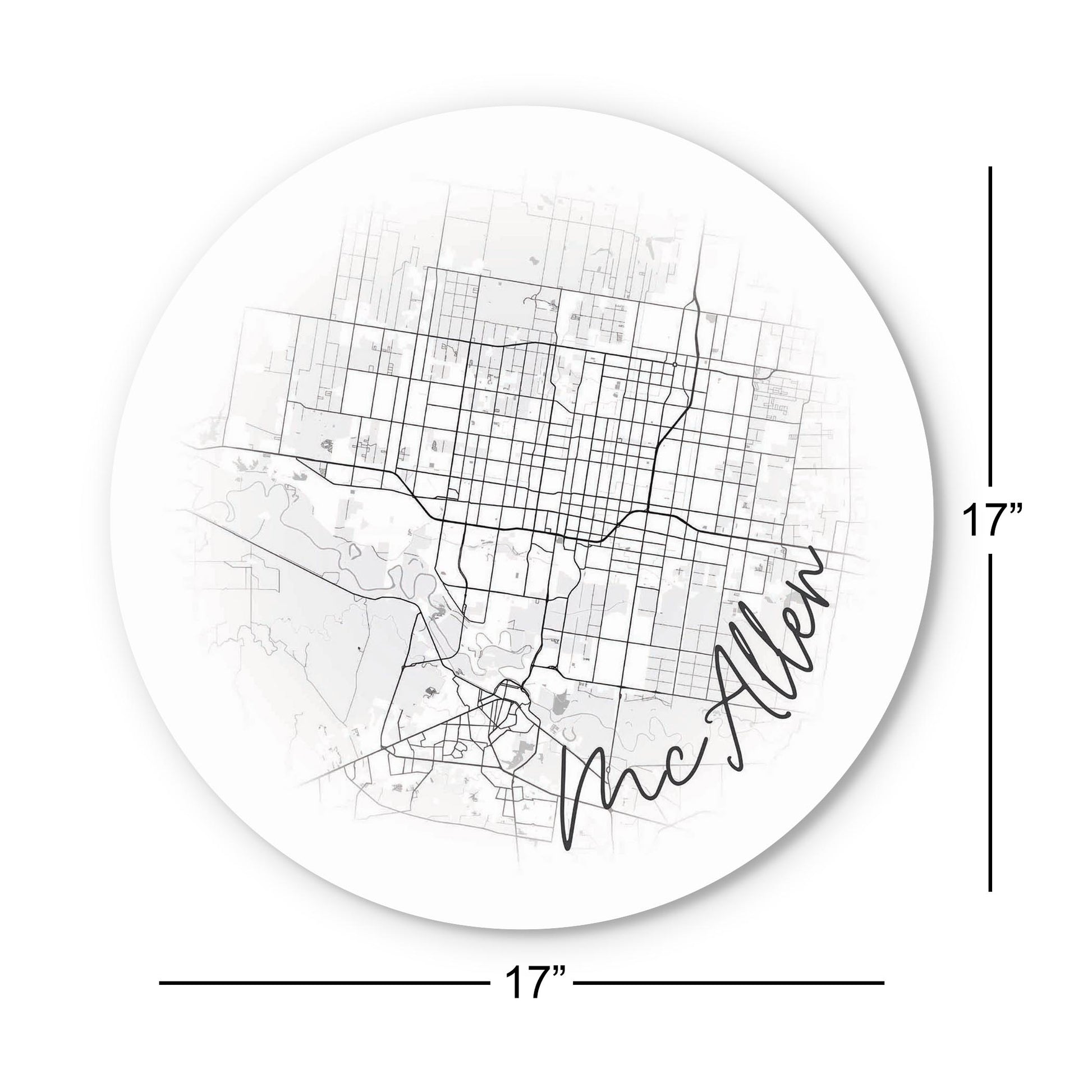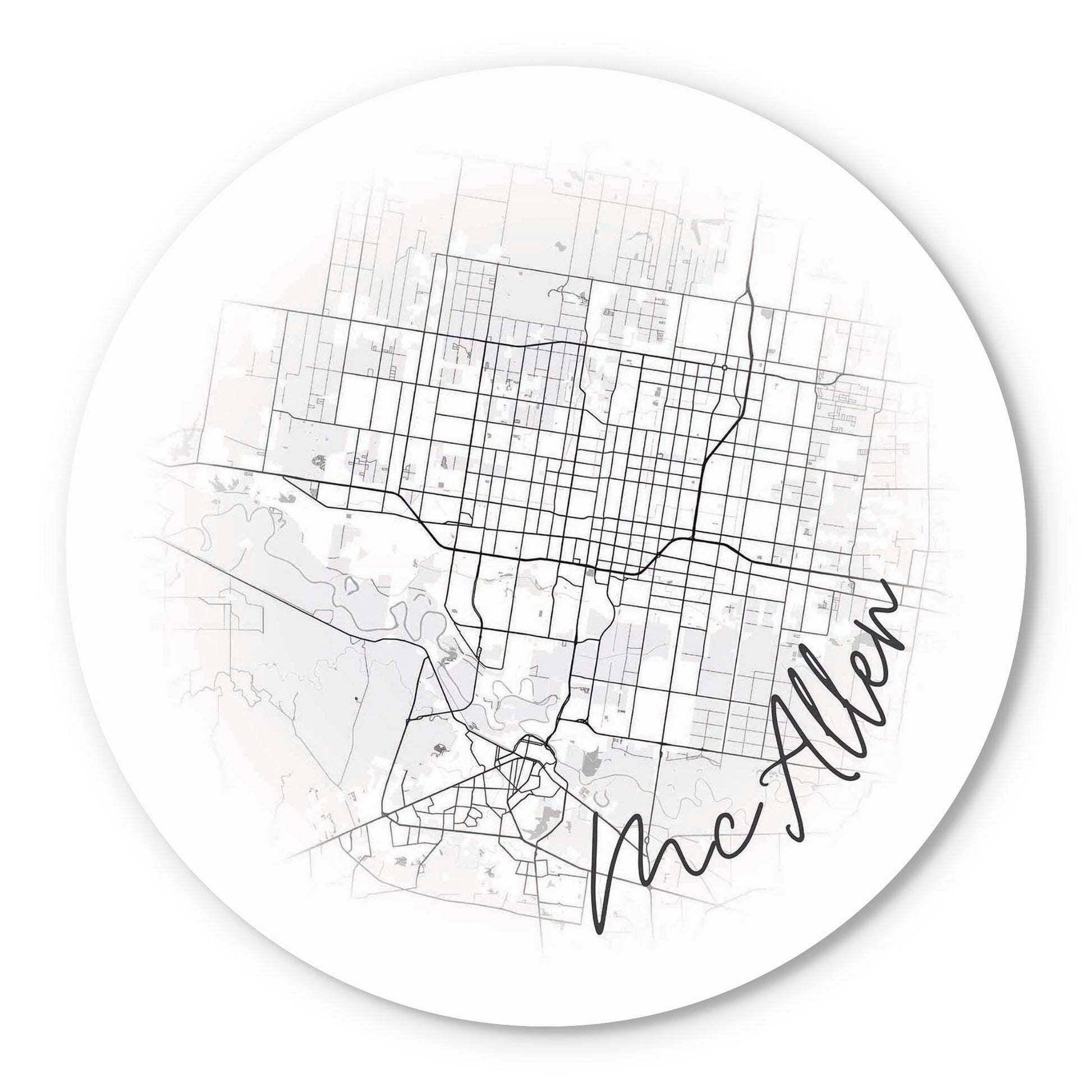 Minimalistic B&W Texas Mcallen Circle Map | Wood Sign | Eaches | Min 1