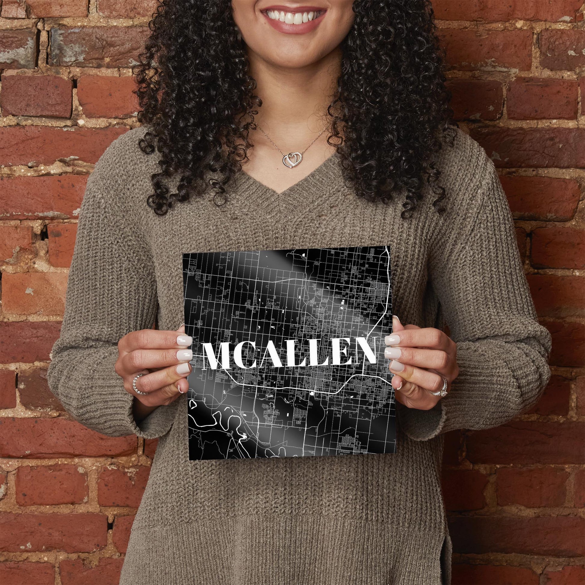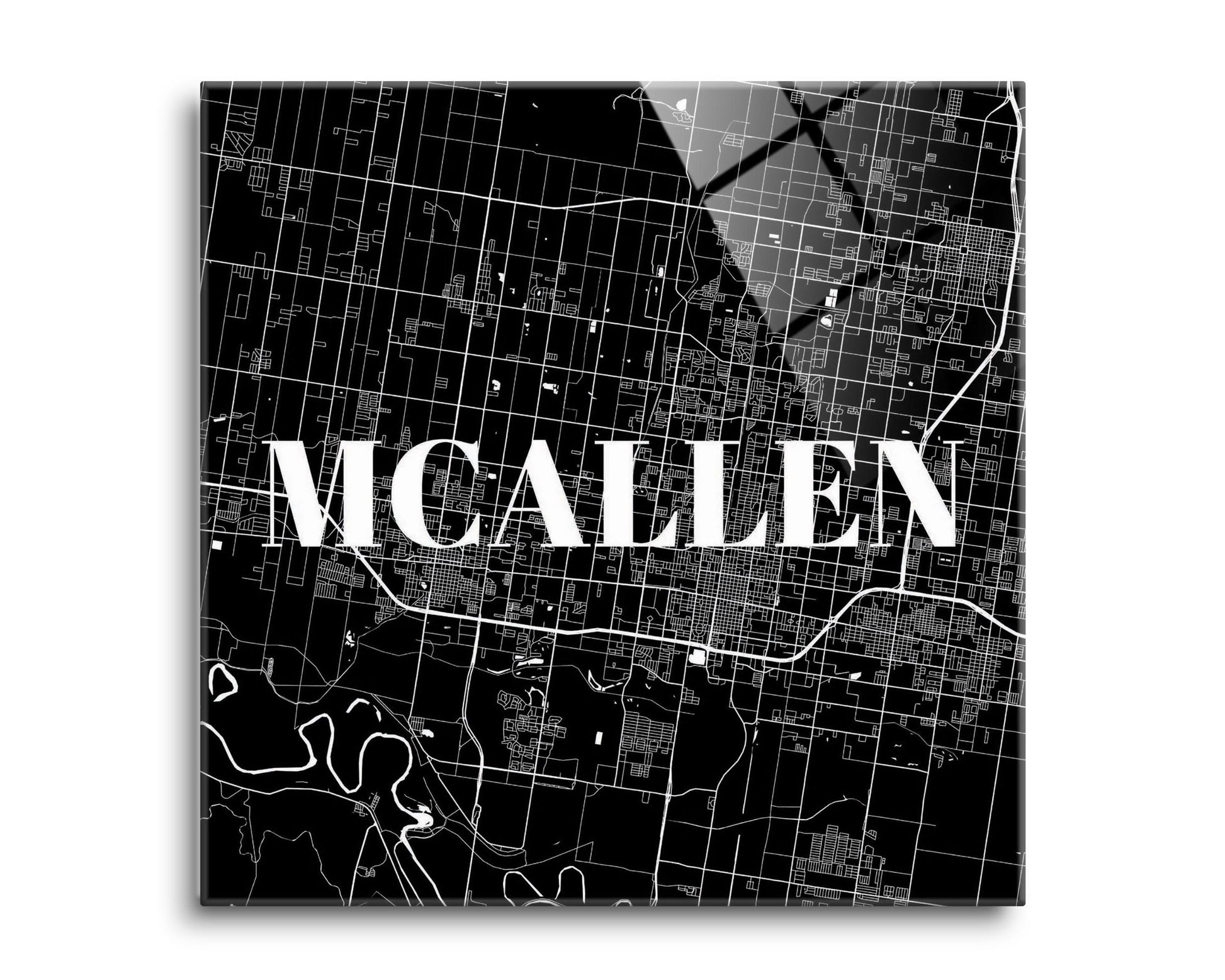 Minimalistic B&W Texas Mcallen Map | Hi-Def Glass Art | Eaches | Min 2