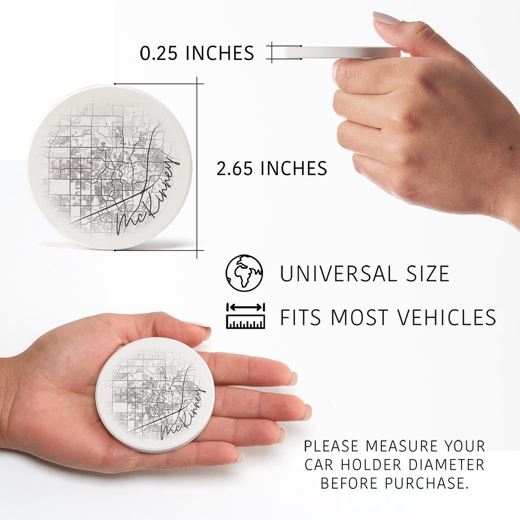 Minimalistic B&W Texas Mckinney Circle Map | Absorbent Car Coasters | Set of 2 | Min 4