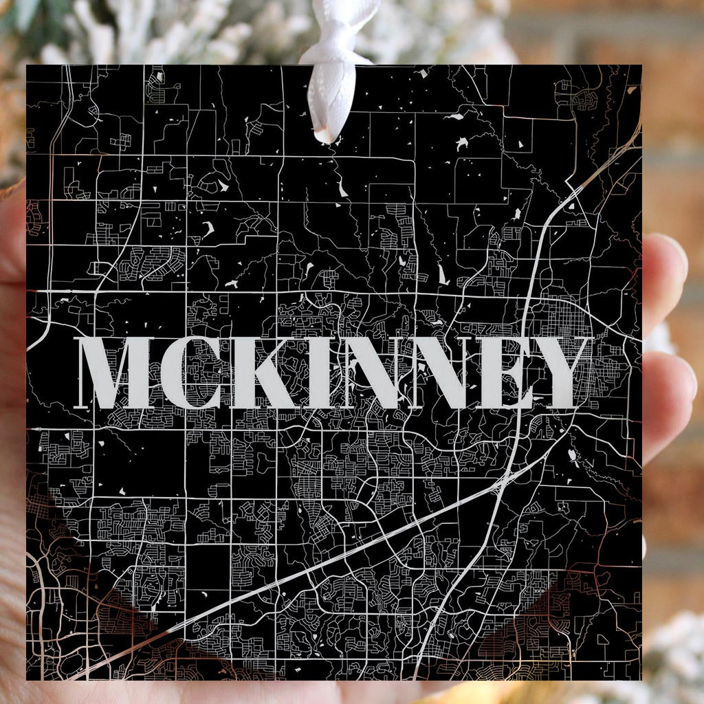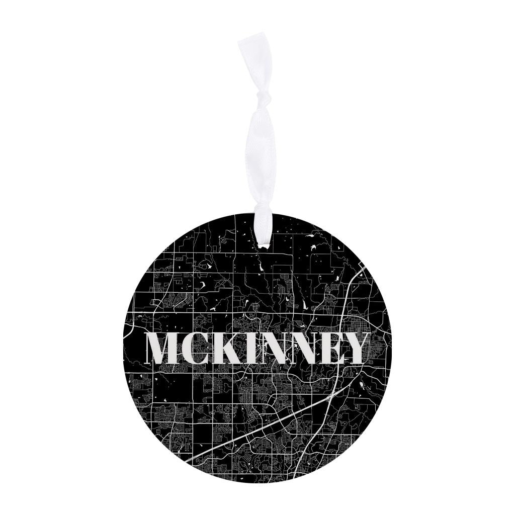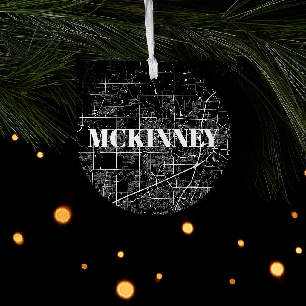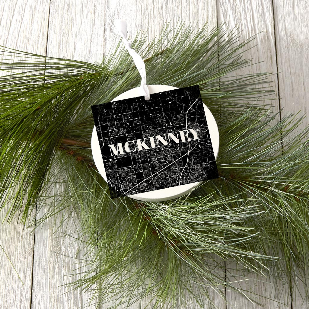 Minimalistic B&W Texas Mckinney Map | Wood Ornament | Eaches | Min 6