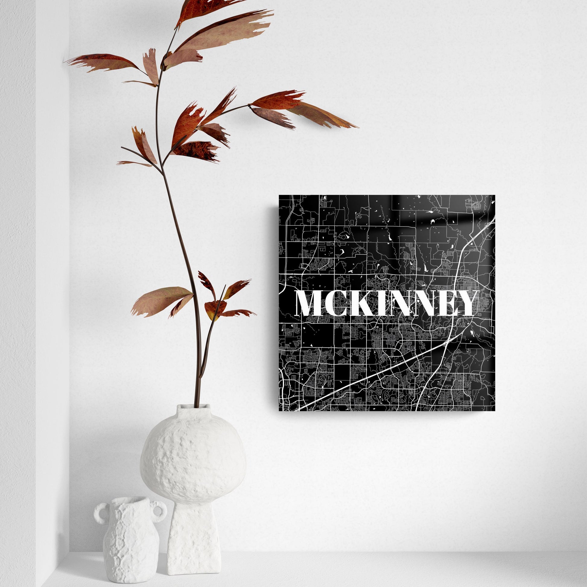Minimalistic B&W Texas Mckinney Map | Hi-Def Glass Art | Eaches | Min 2