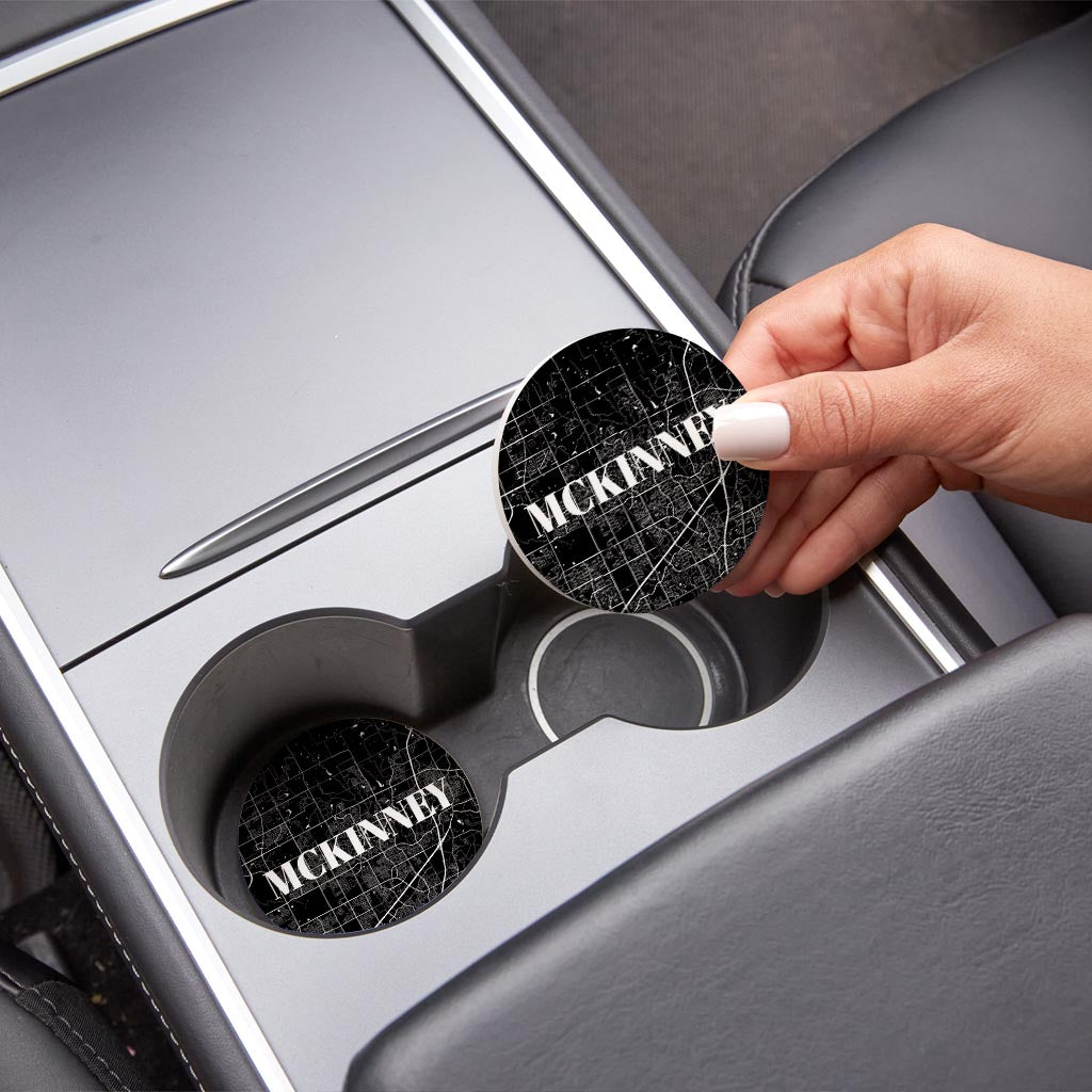 Minimalistic B&W Texas Mckinney Map | Absorbent Car Coasters | Set of 2 | Min 4