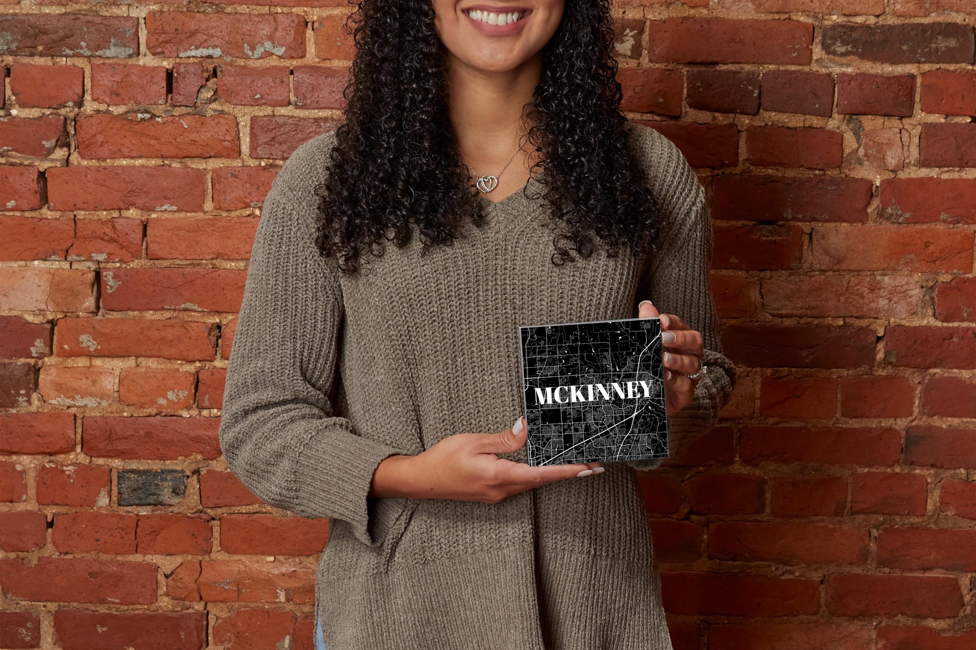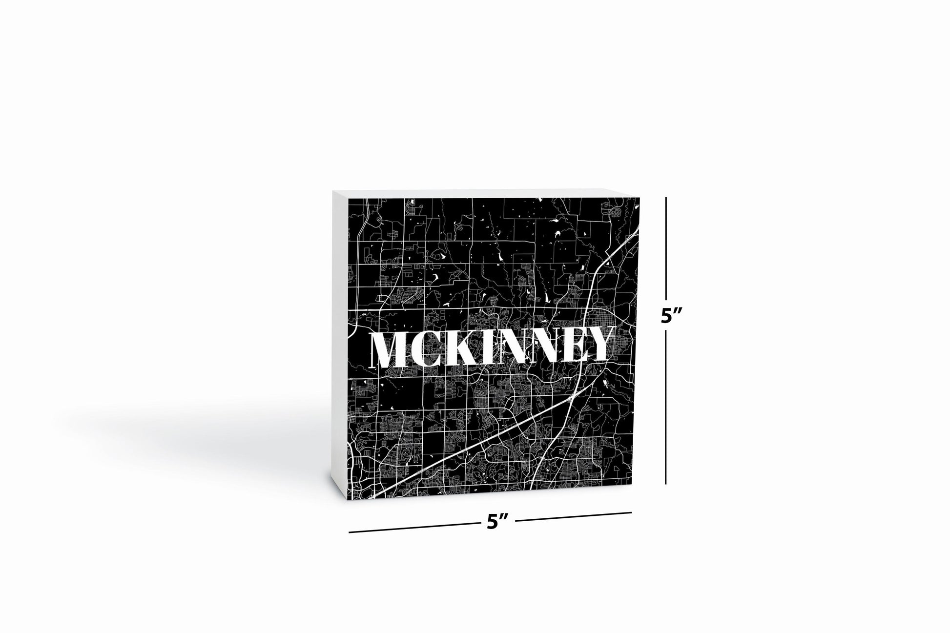 Minimalistic B&W Texas Mckinney Map | Wood Block | Eaches | Min 4