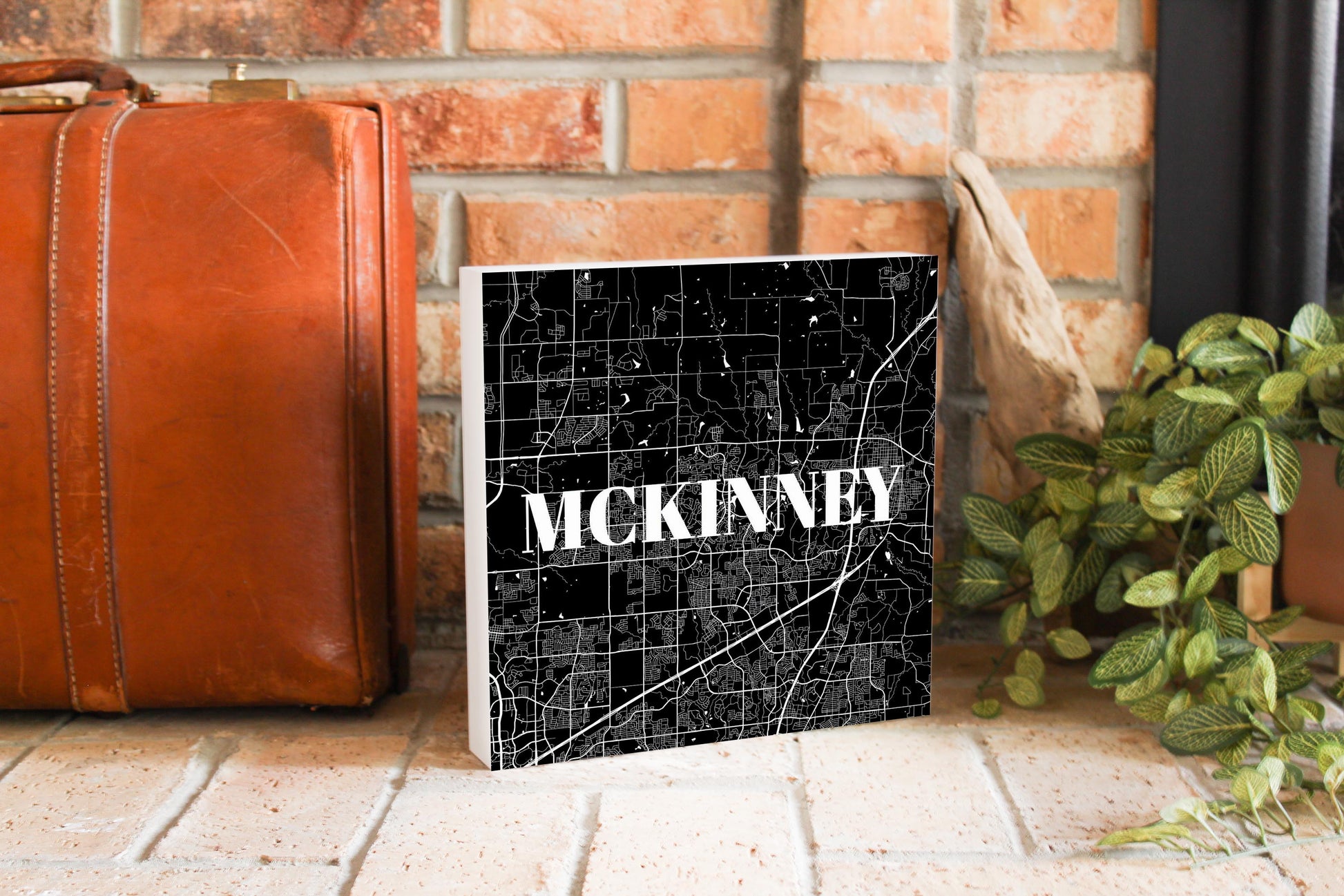 Minimalistic B&W Texas Mckinney Map | Wood Block | Eaches | Min 2