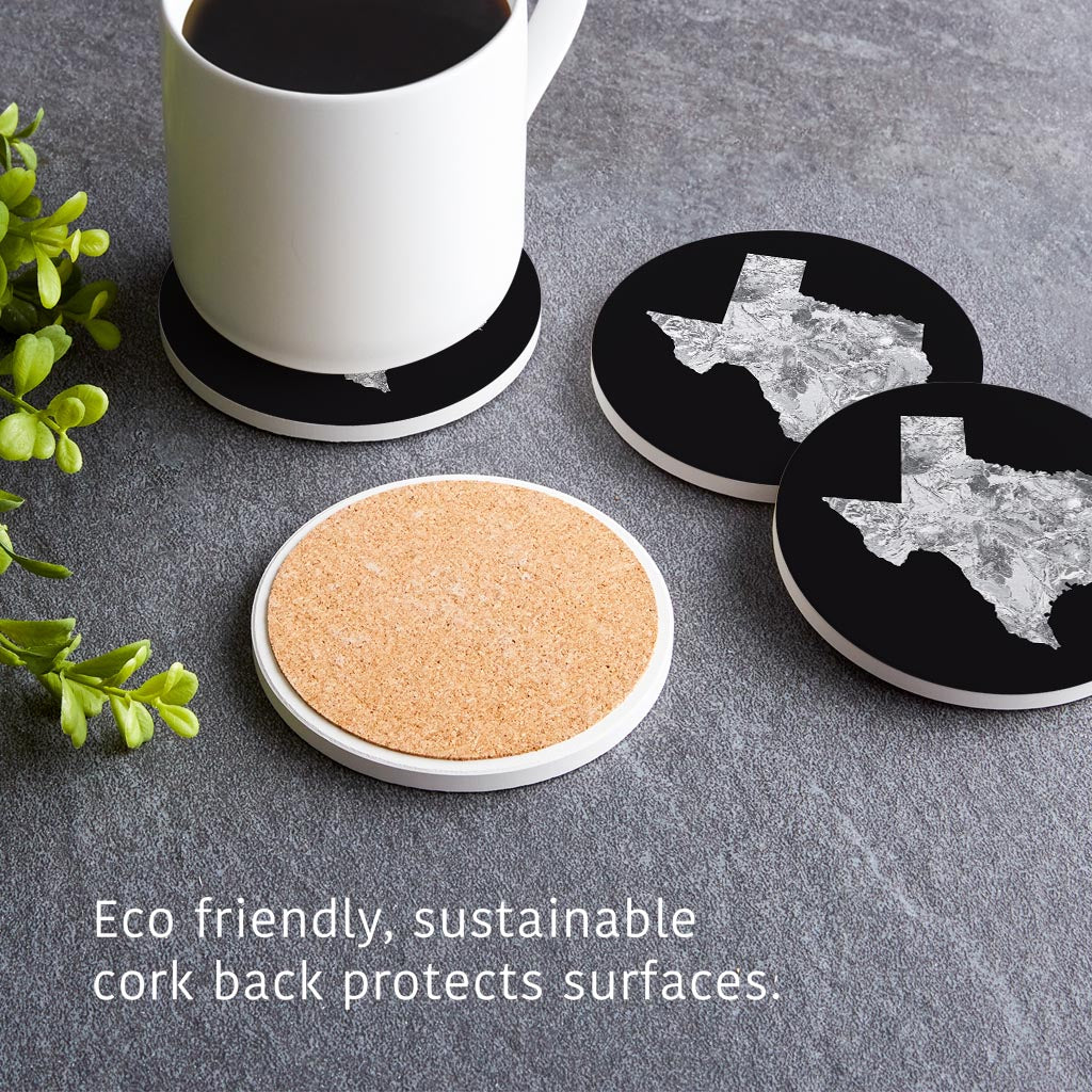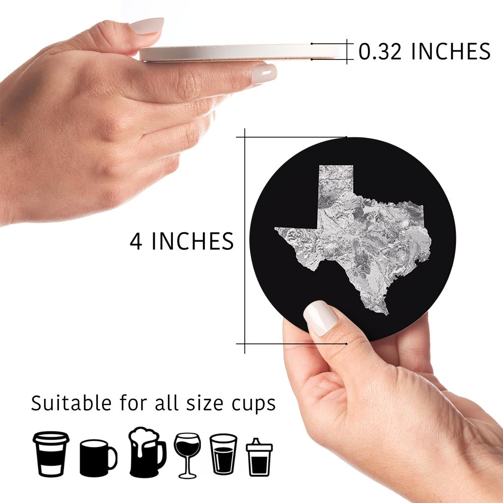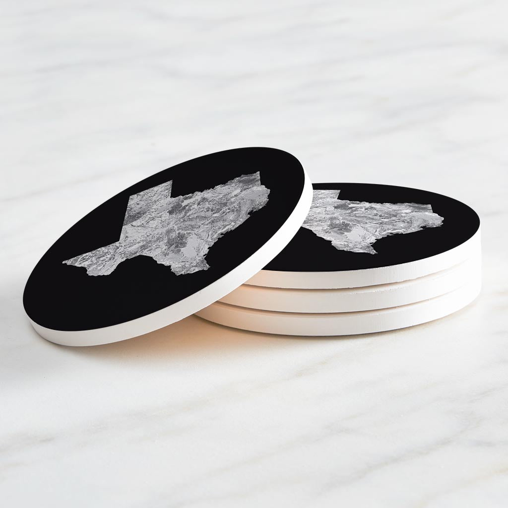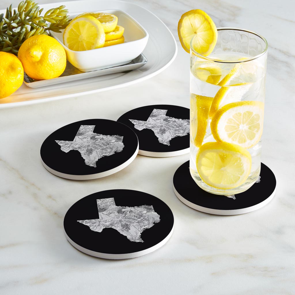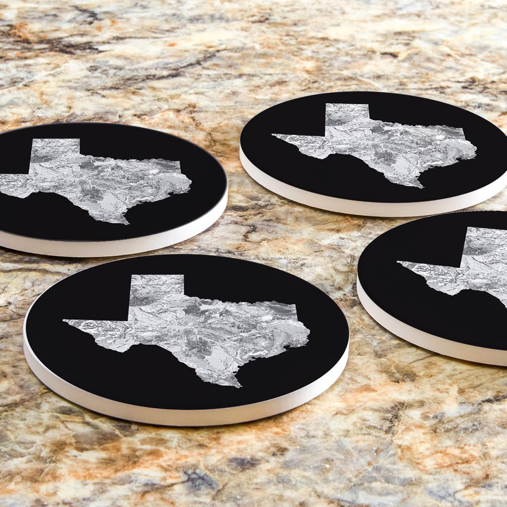 Minimalistic B&W Texas Metal State Shape| Absorbent Coasters | Set of 4 | Min 2