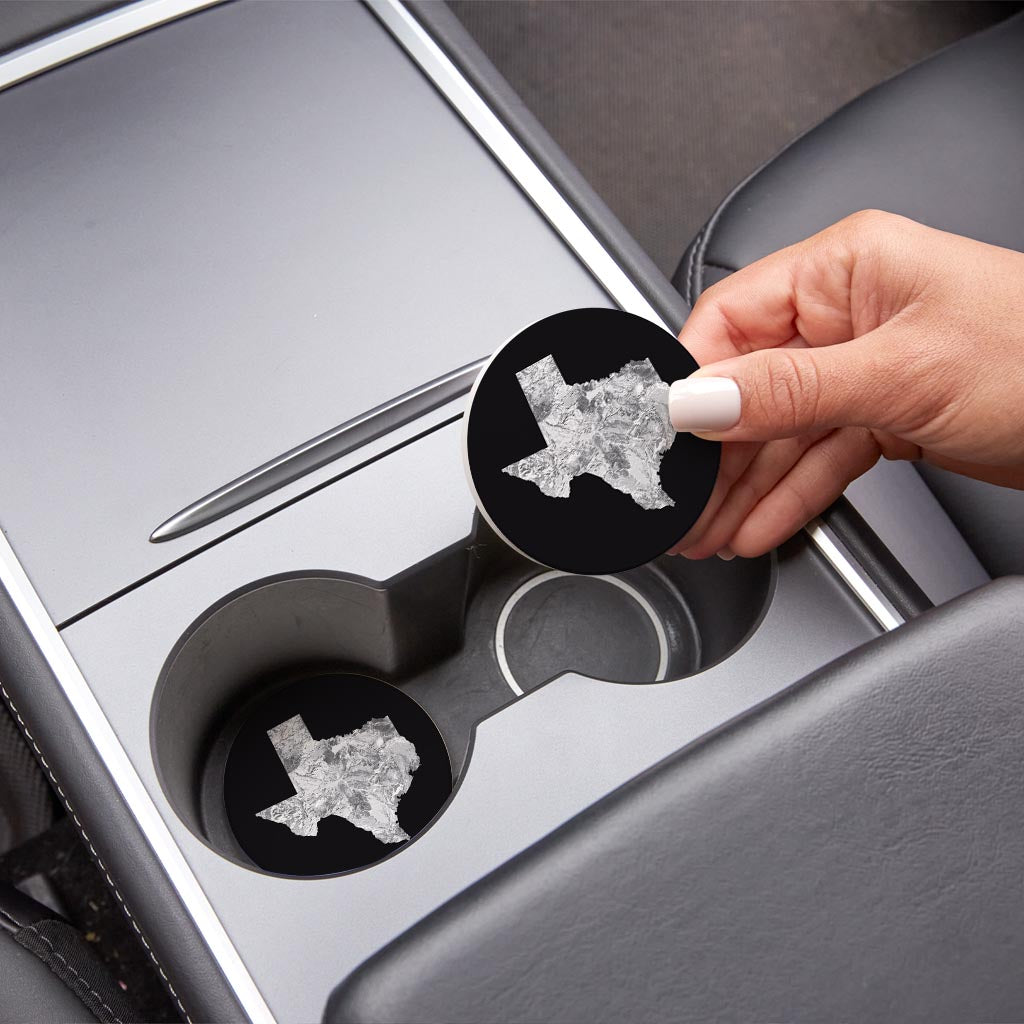 Minimalistic B&W Texas Metal State Shape | Absorbent Car Coasters | Set of 2 | Min 4
