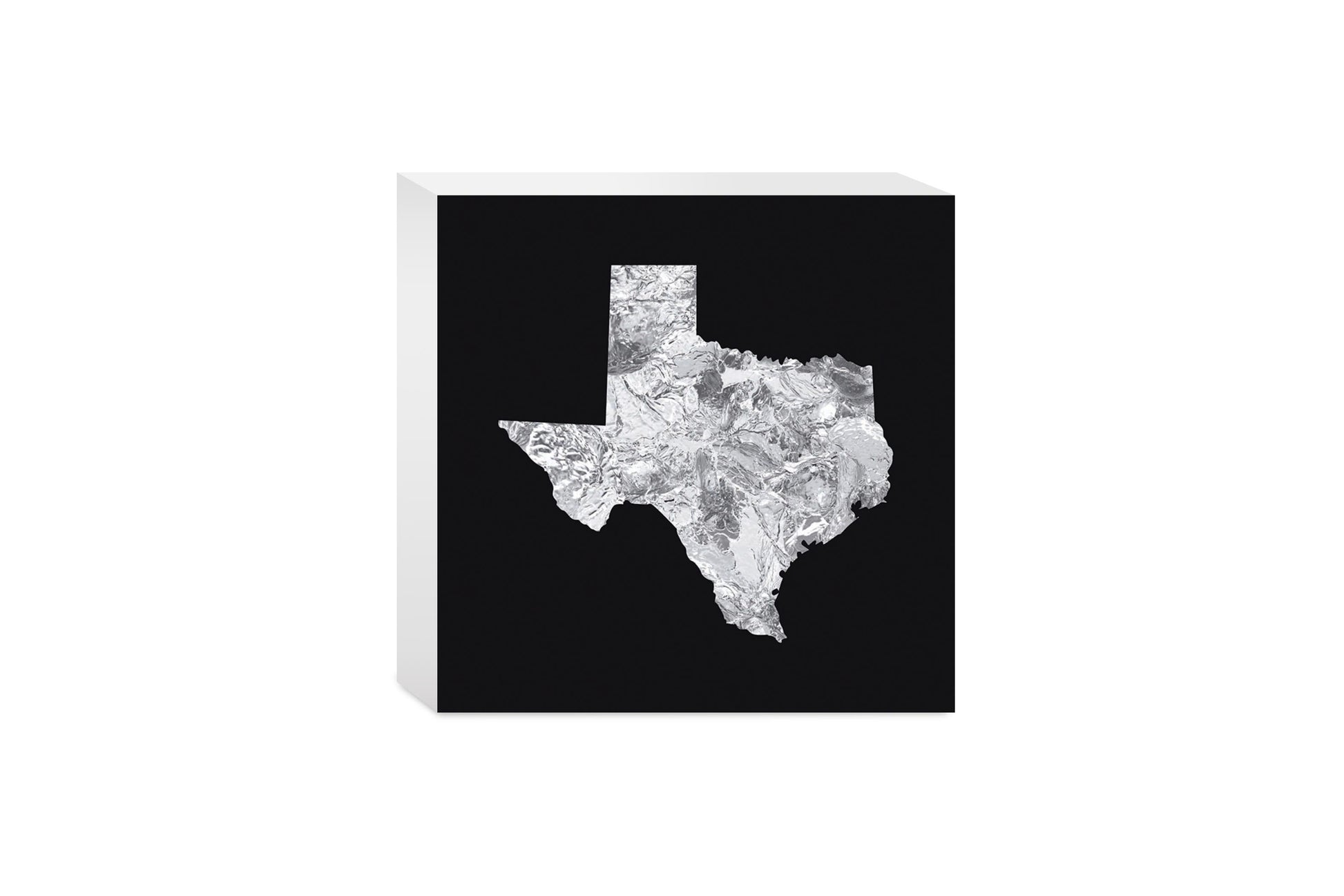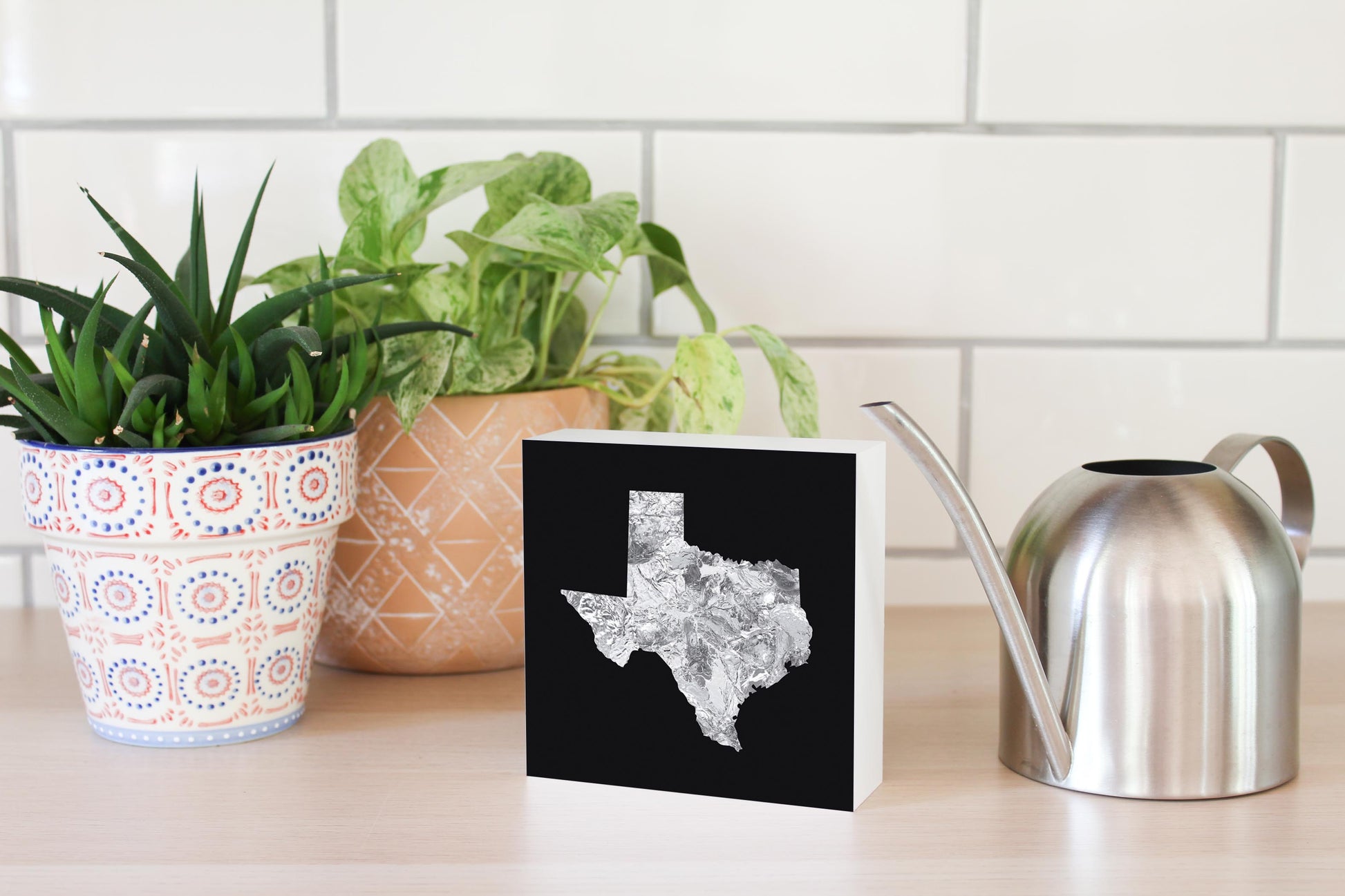 Minimalistic B&W Texas Metal State Shape | Wood Block | Eaches | Min 4