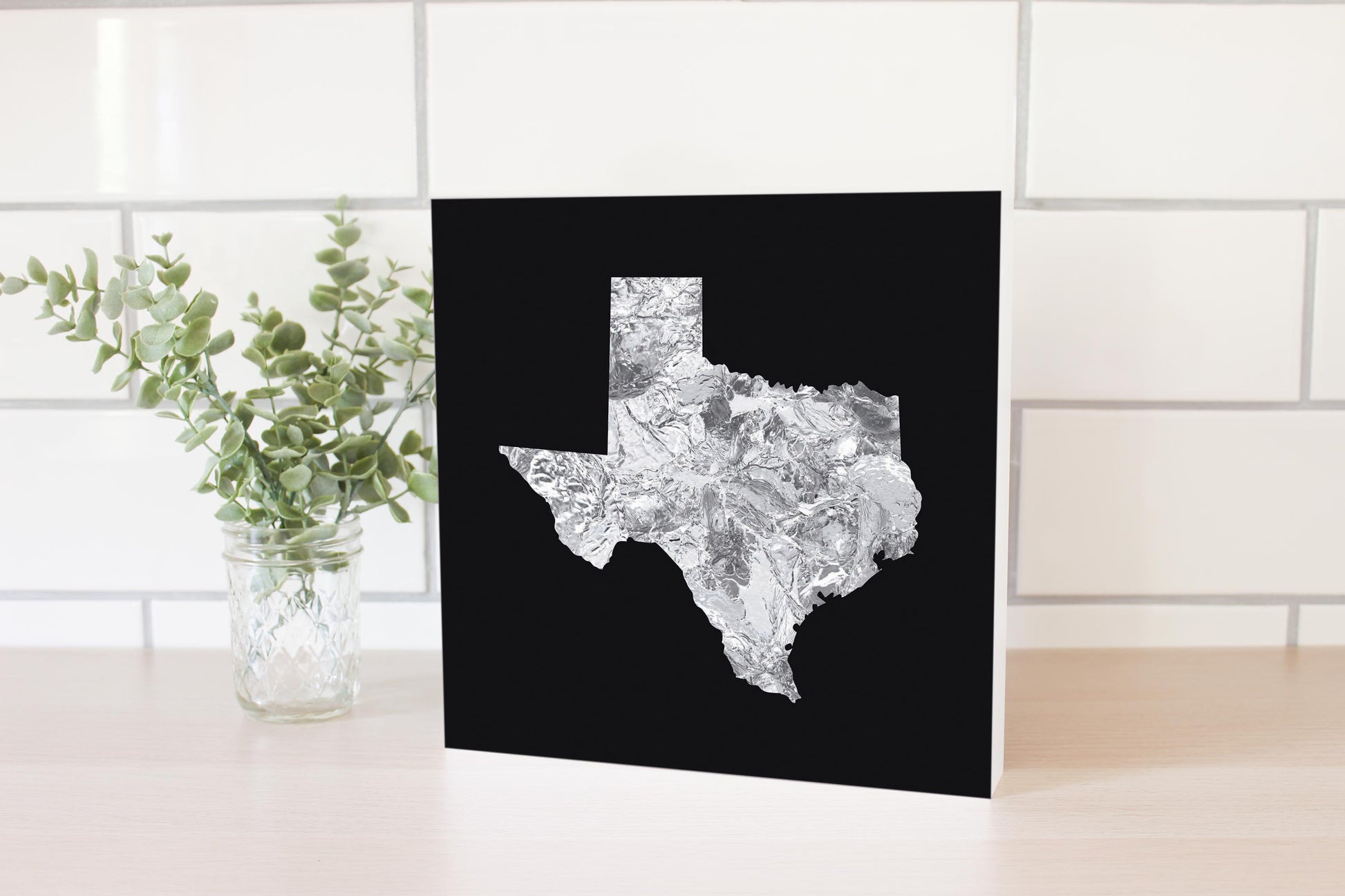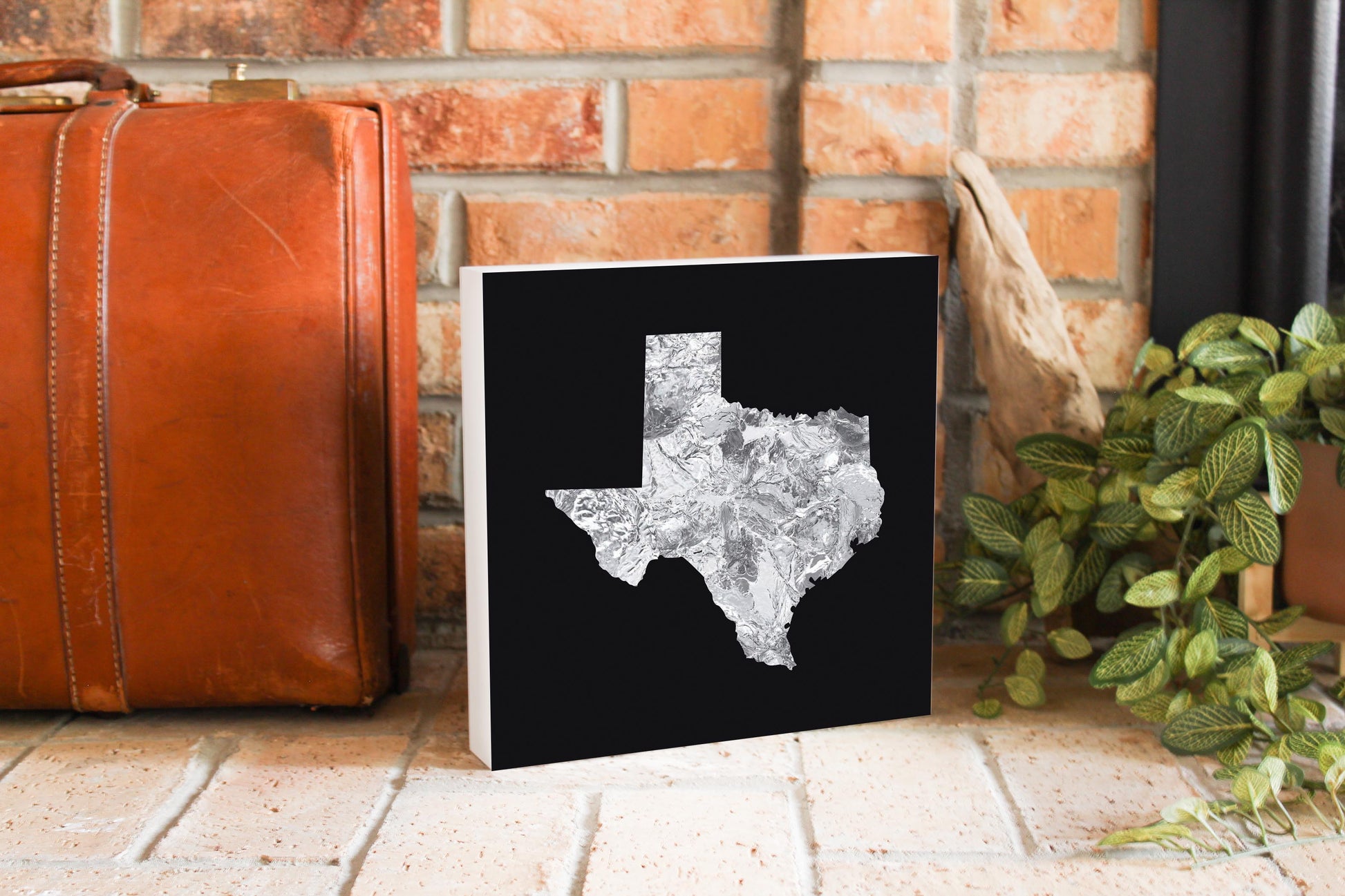 Minimalistic B&W Texas Metal State Shape | Wood Block | Eaches | Min 2