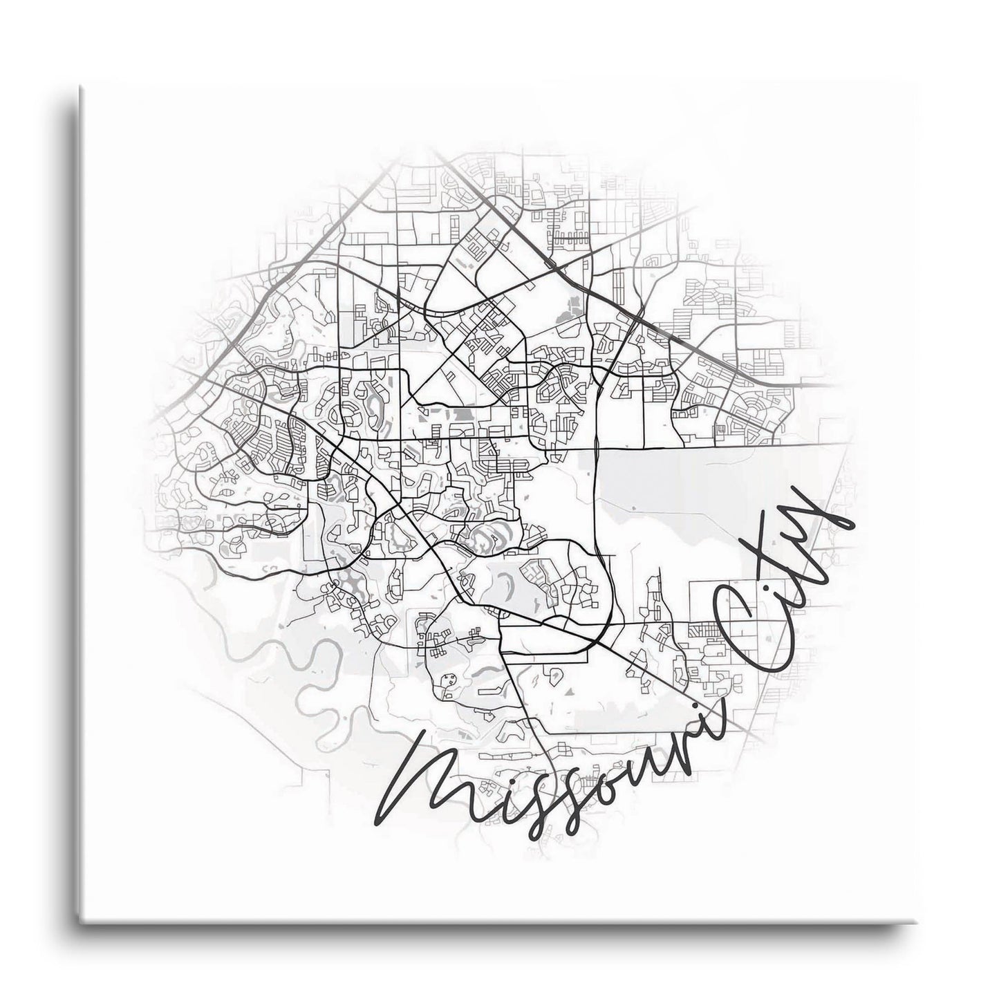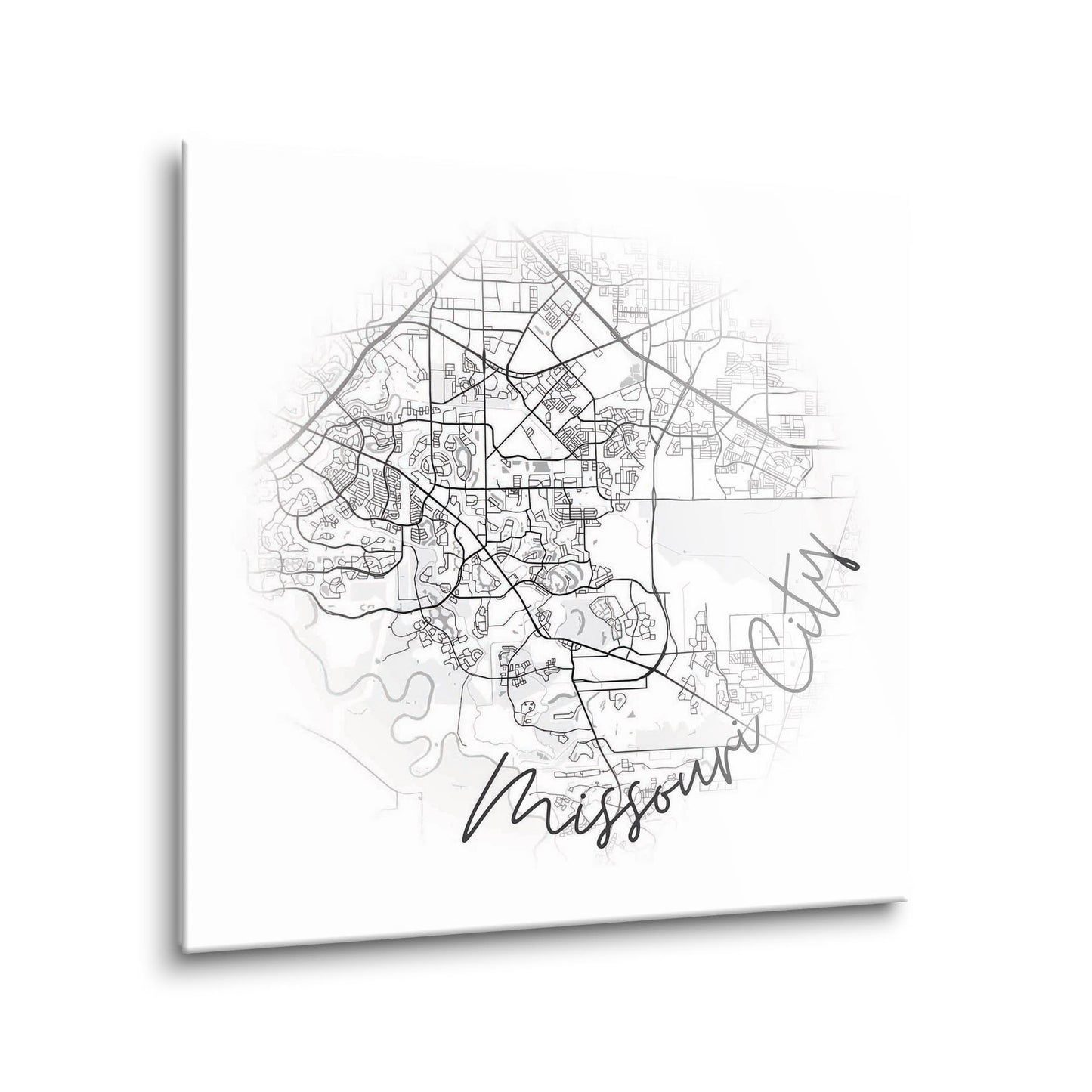 Minimalistic B&W Texas Missouri City Circle Map | Hi-Def Glass Art | Eaches | Min 1