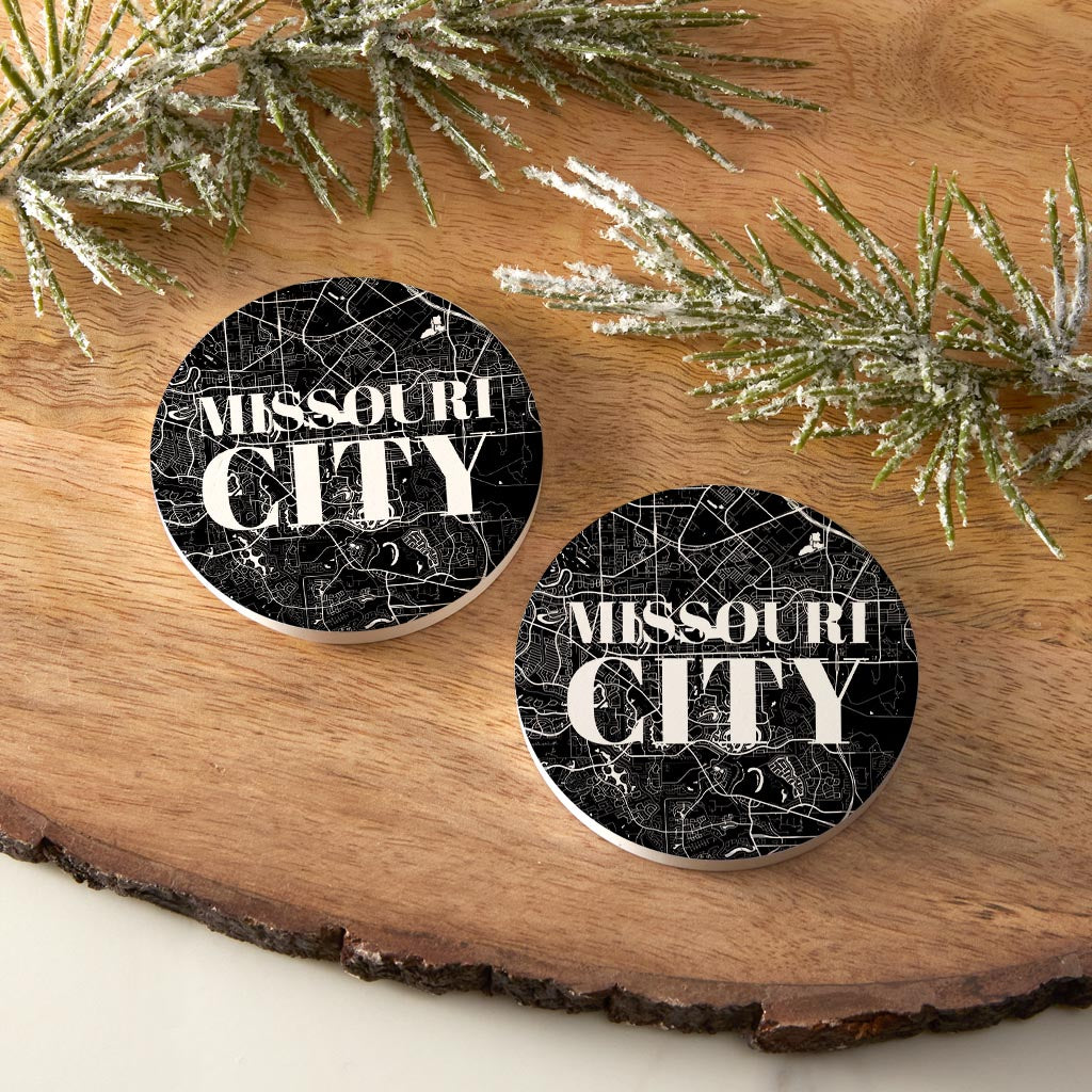 Minimalistic B&W Texas Missouri City Map | Absorbent Car Coasters | Set of 2 | Min 4
