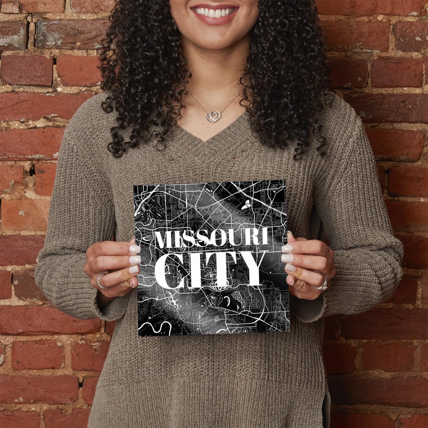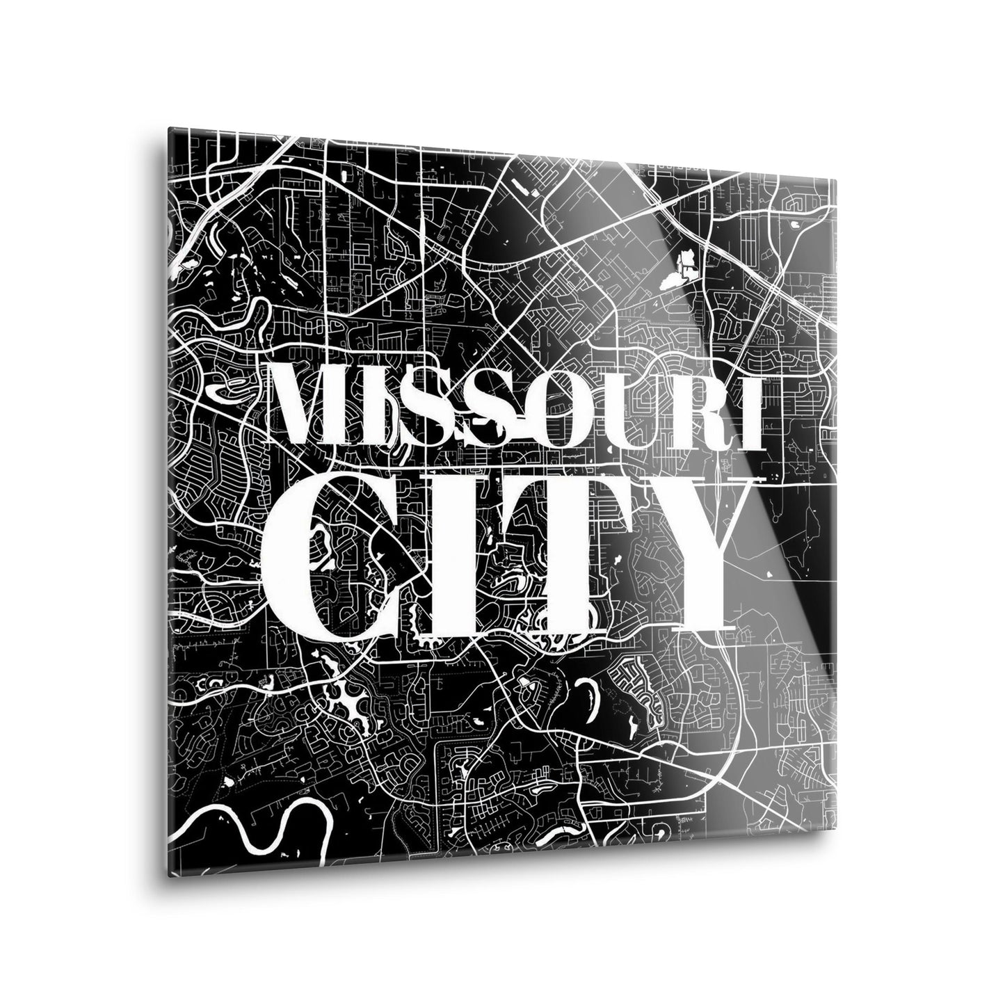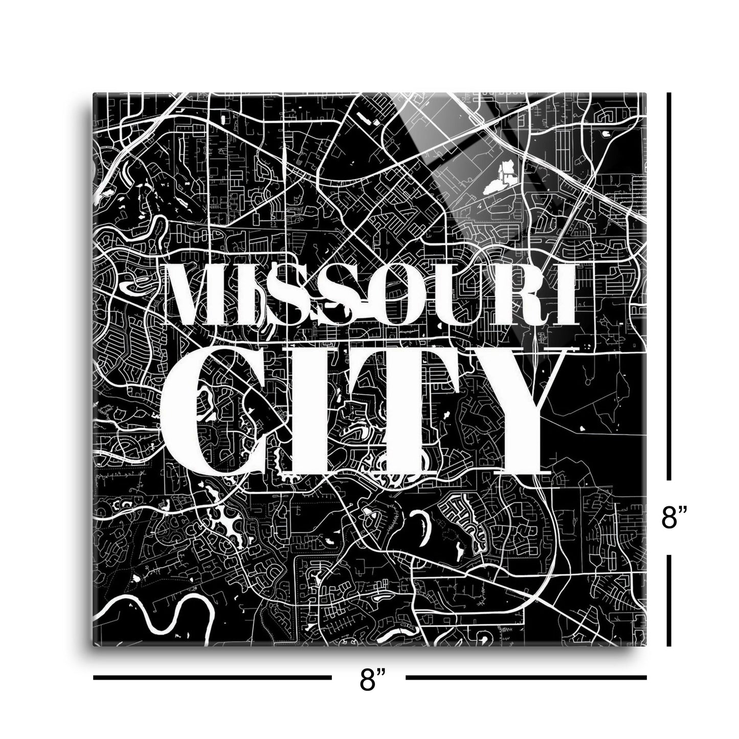 Minimalistic B&W Texas Missouri City Map | Hi-Def Glass Art | Eaches | Min 2