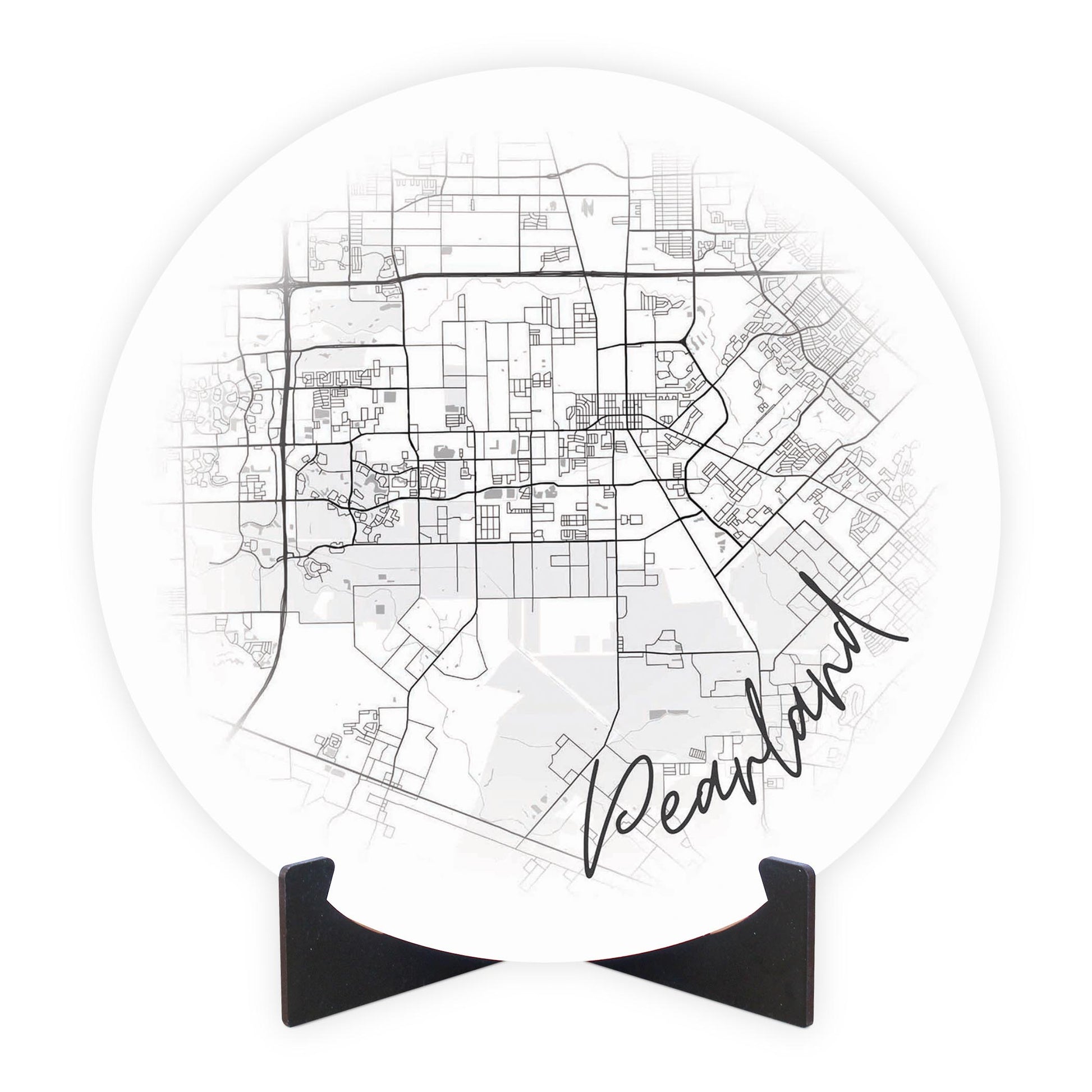 Minimalistic B&W Texas Pearland City Circle Map | Wood Sign | Eaches | Min 1
