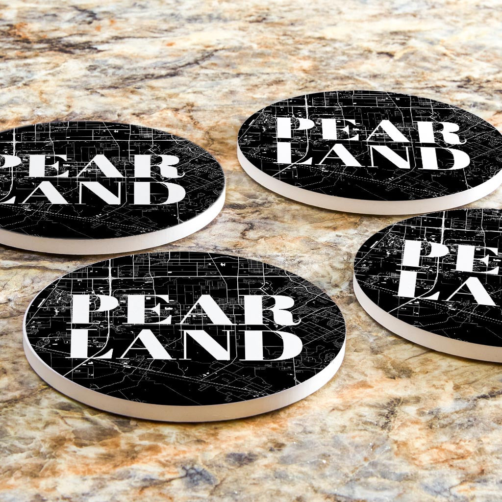 Minimalistic B&W Texas Pearland City Map| Absorbent Coasters | Set of 4 | Min 2