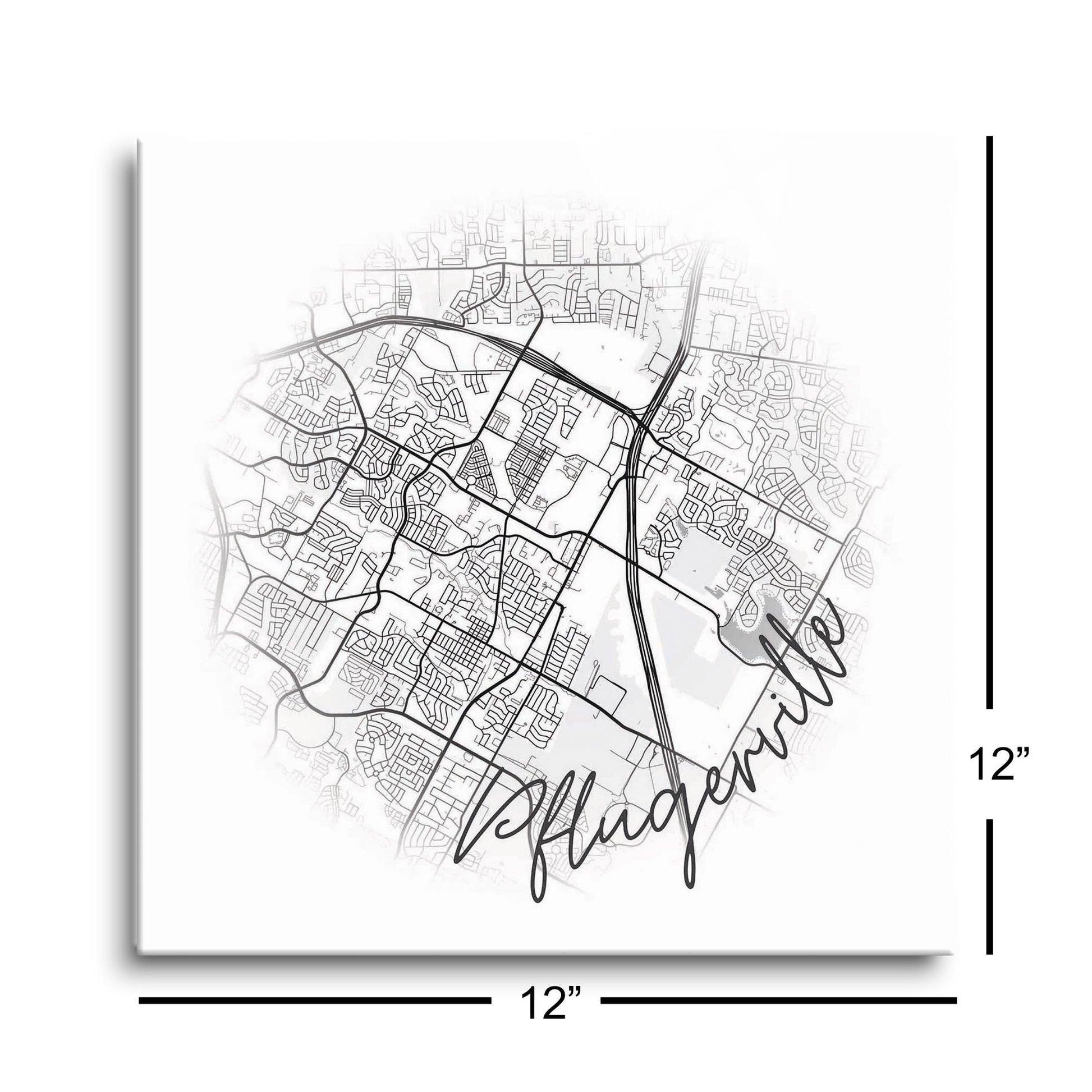 Minimalistic B&W Texas Pflugerville Circle Map | Hi-Def Glass Art | Eaches | Min 1