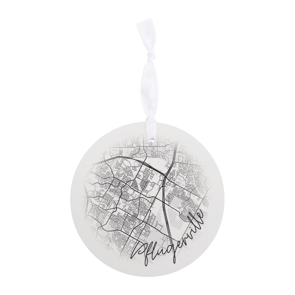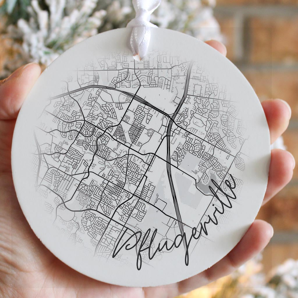 Minimalistic B&W Texas Pflugerville Circle Map | Wood Ornament | Eaches | Min 6