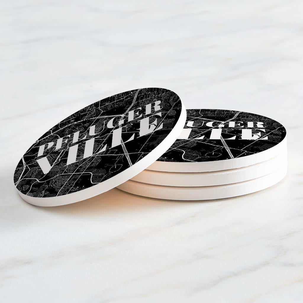 Minimalistic B&W Texas Pflugerville Map | Absorbent Coasters | Set of 4 | Min 2
