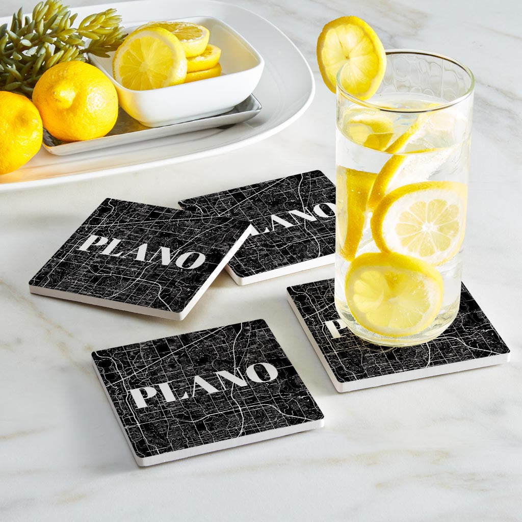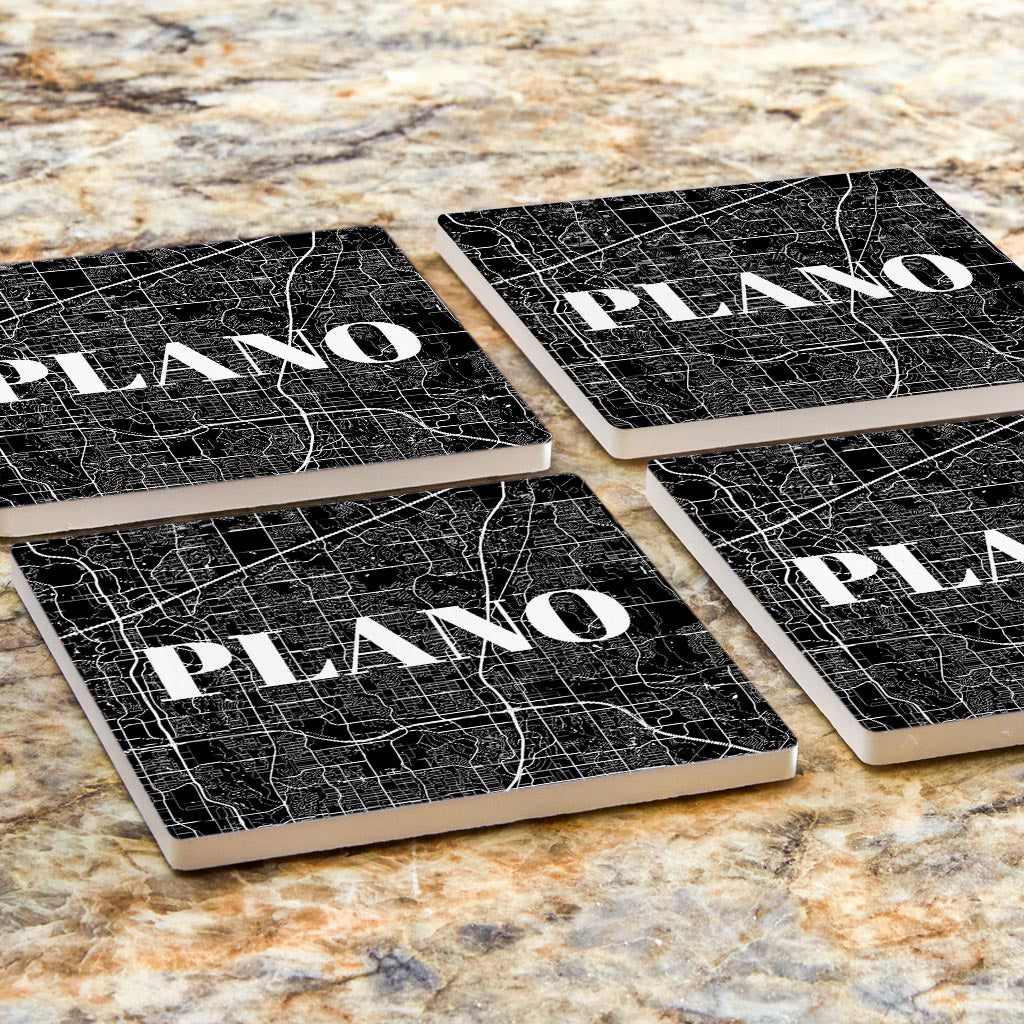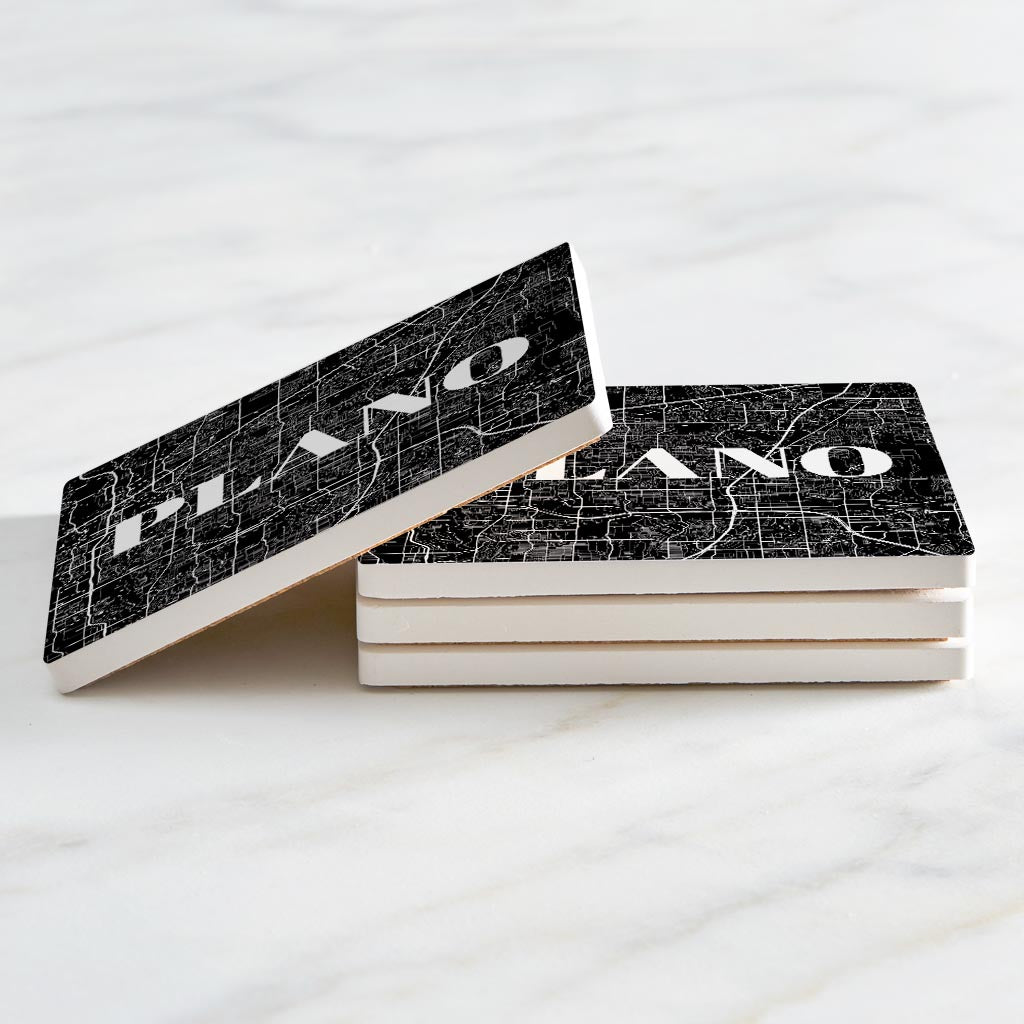 Minimalistic B&W Texas Plano Map| Absorbent Coasters | Set of 4 | Min 2