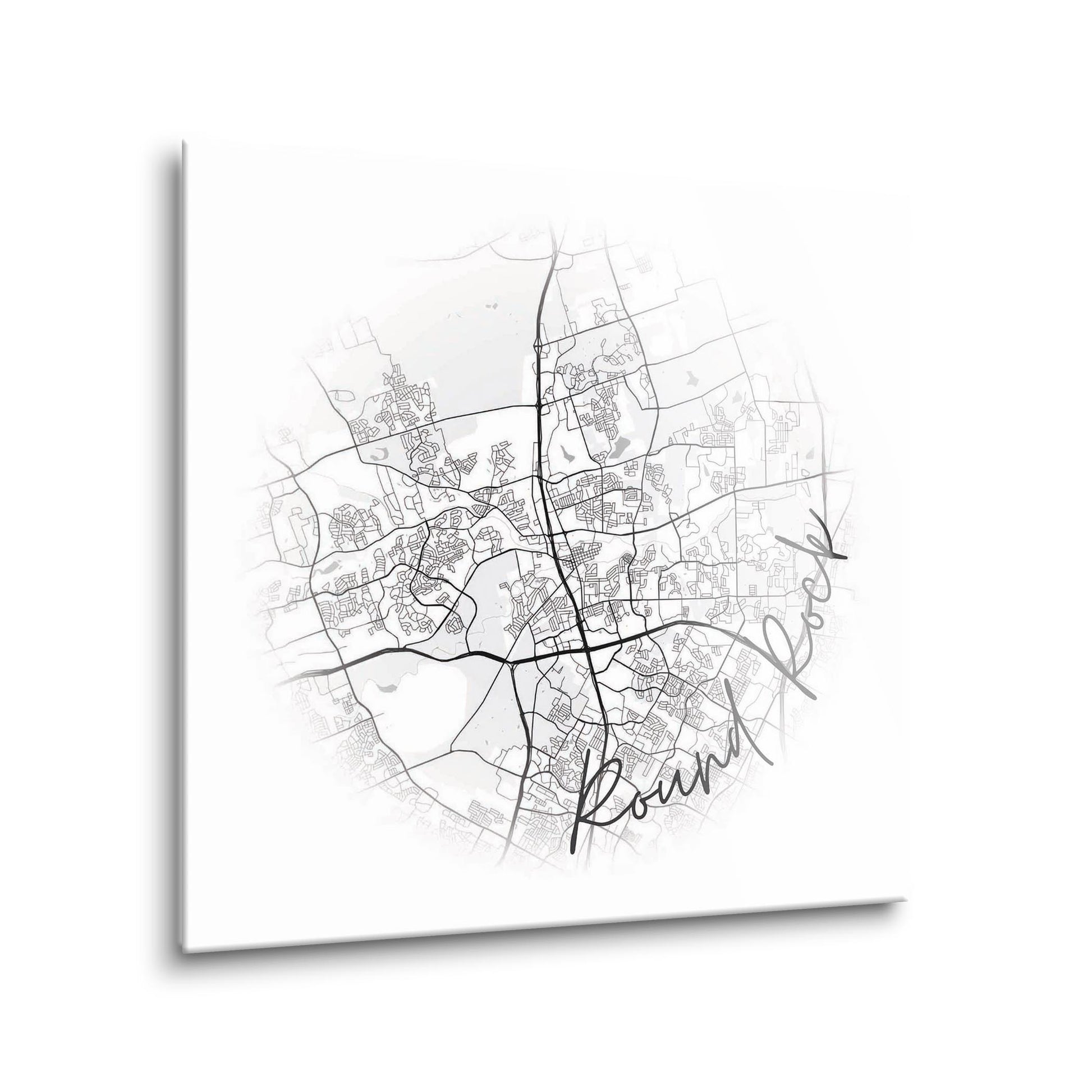 Minimalistic B&W Texas Round Rock Circle Map | Hi-Def Glass Art | Eaches | Min 1