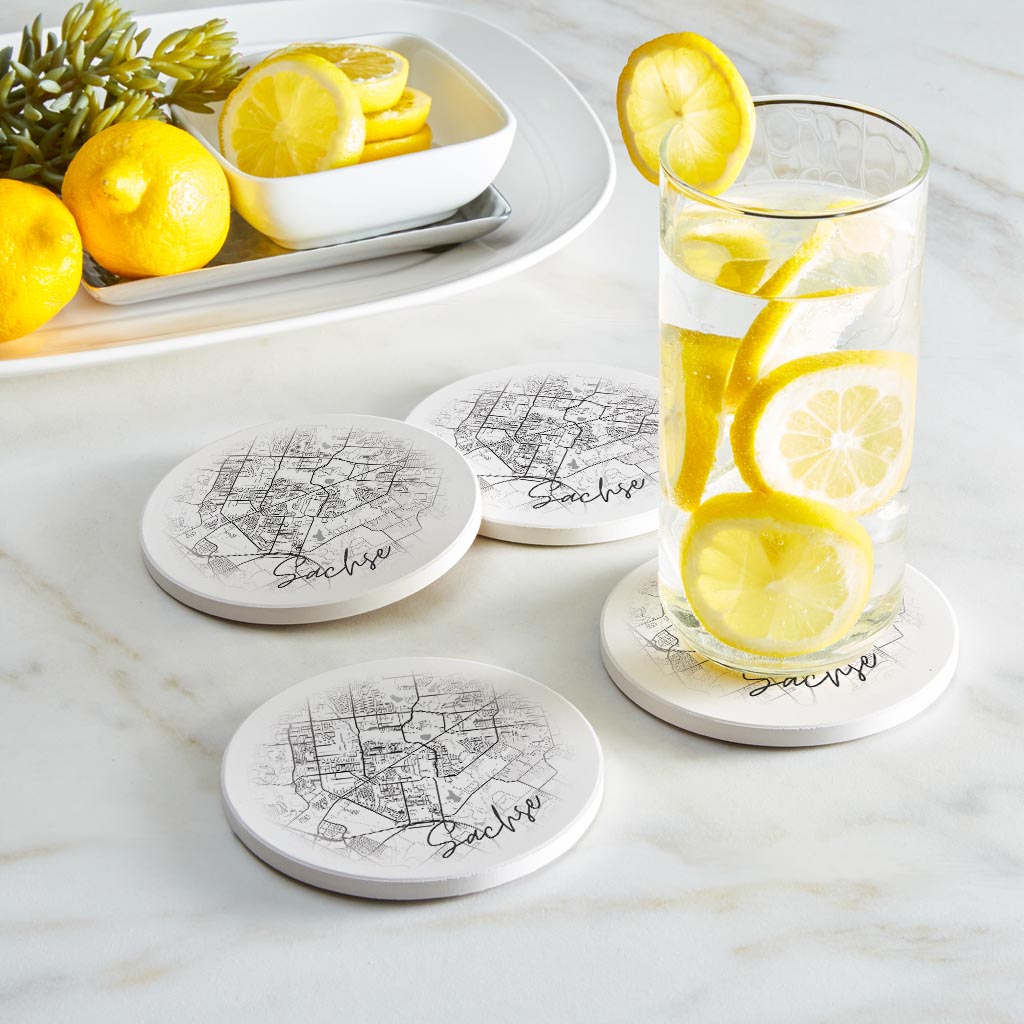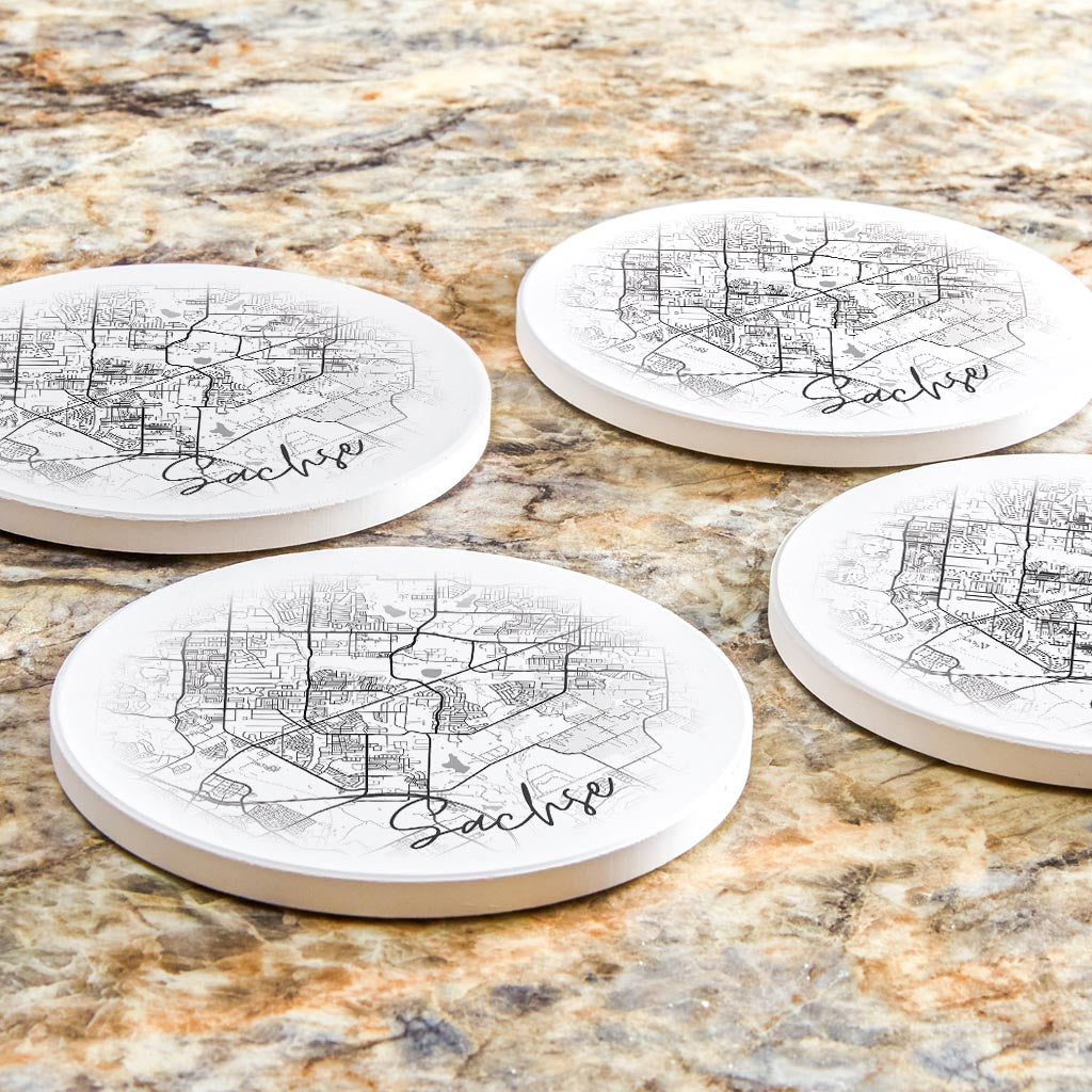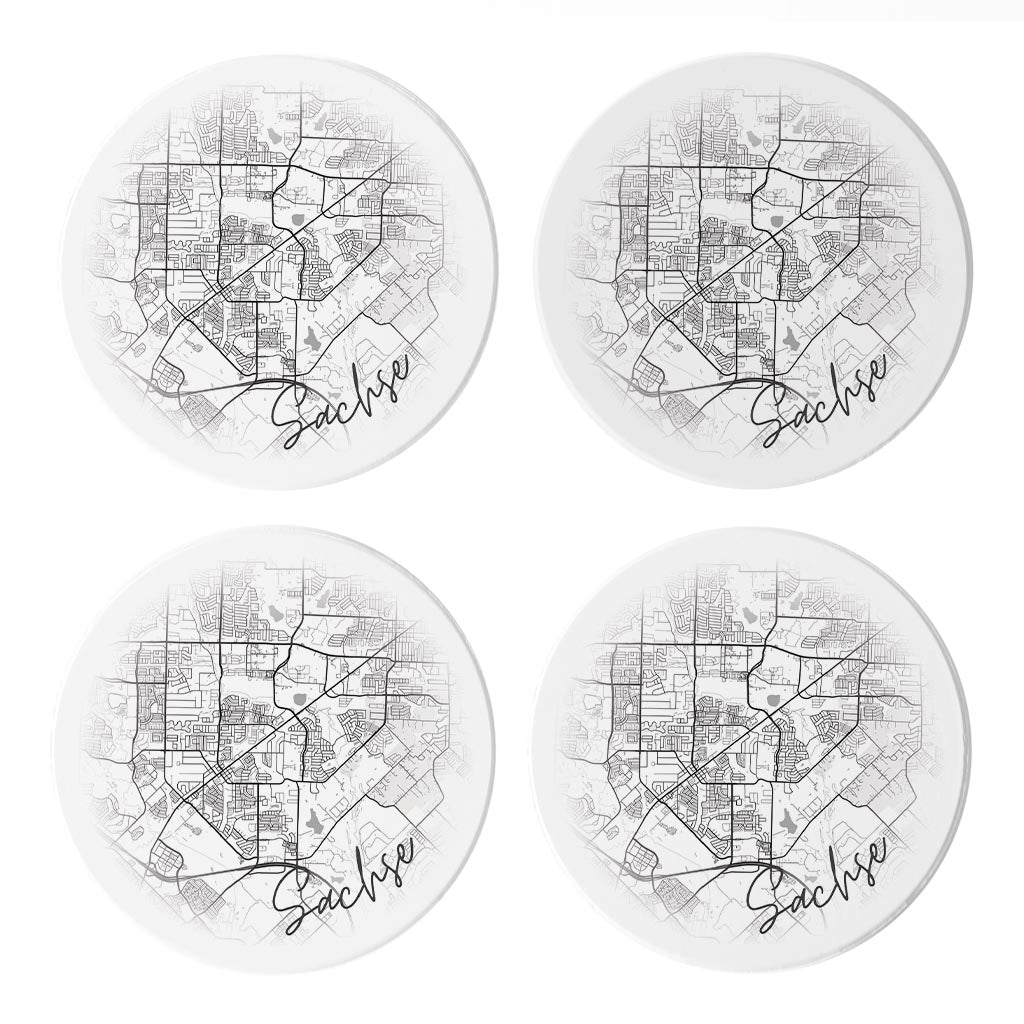 Minimalistic B&W Texas Sachse Circle Map | Absorbent Coasters | Set of 4 | Min 2