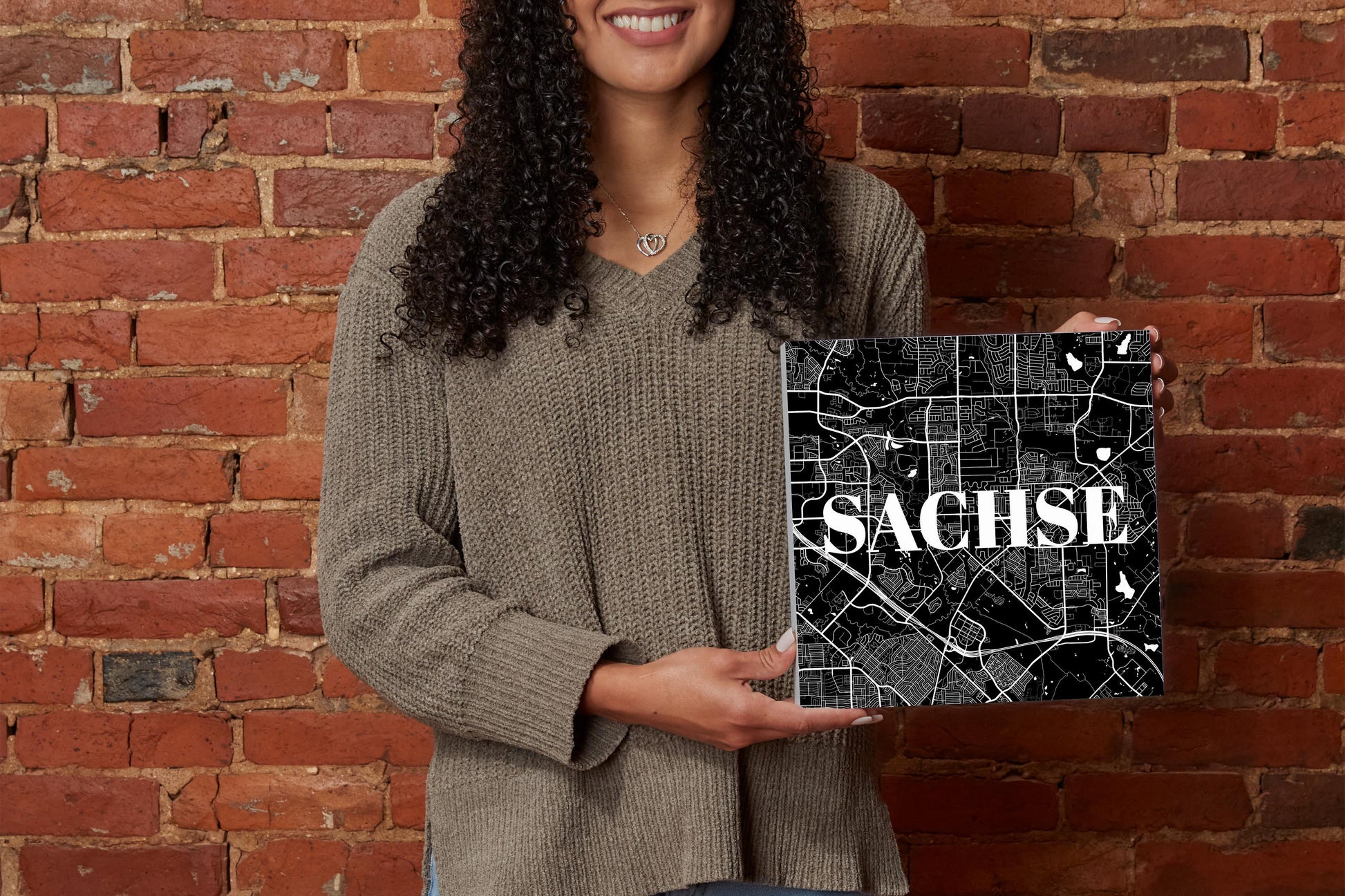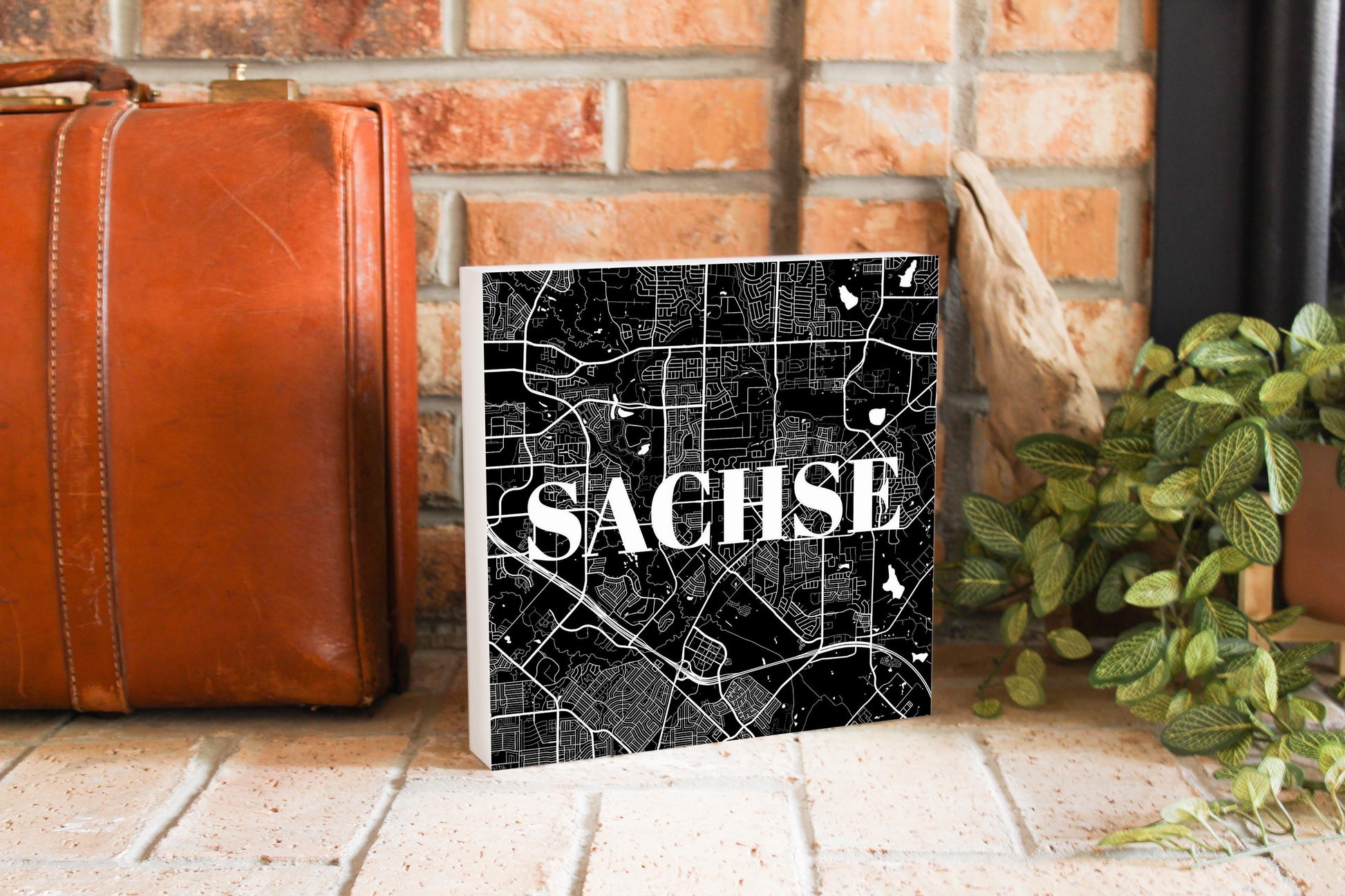 Minimalistic B&W Texas Sachse Map | Wood Block | Eaches | Min 2