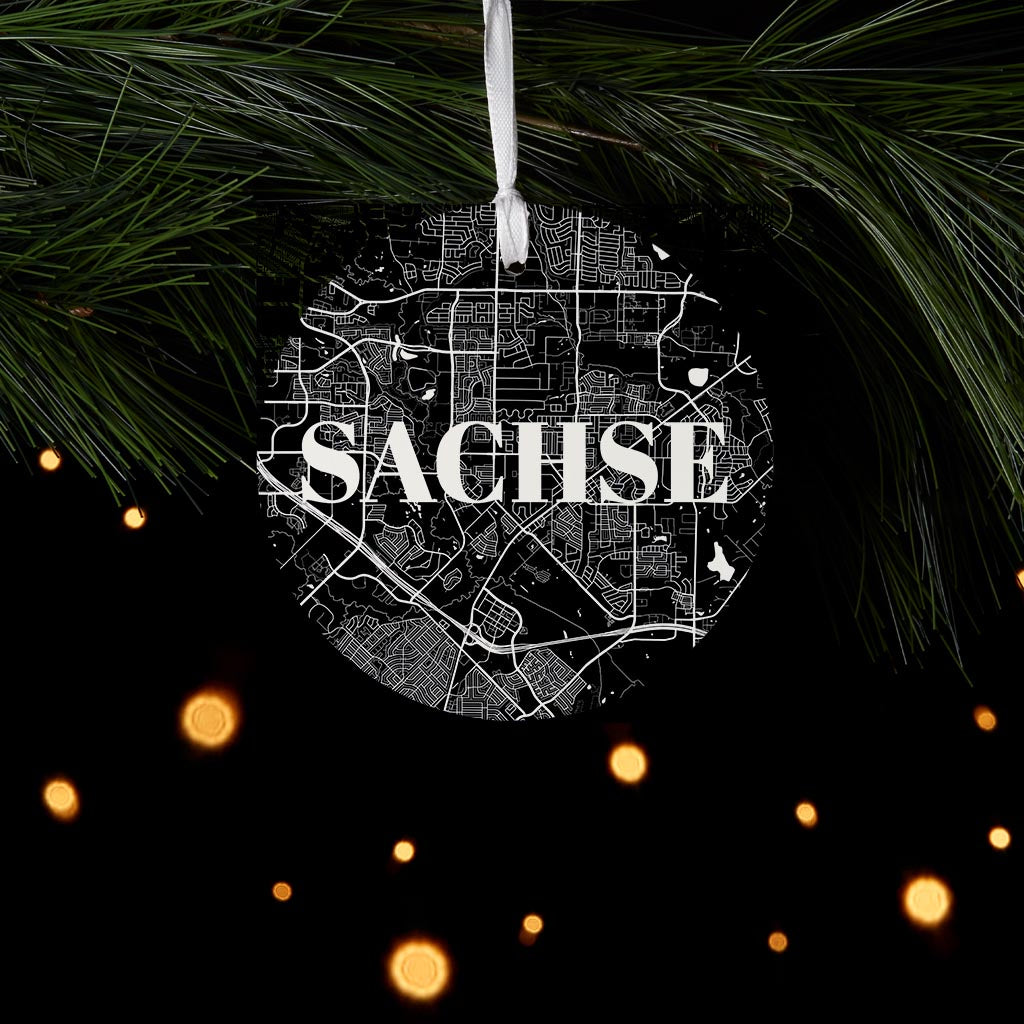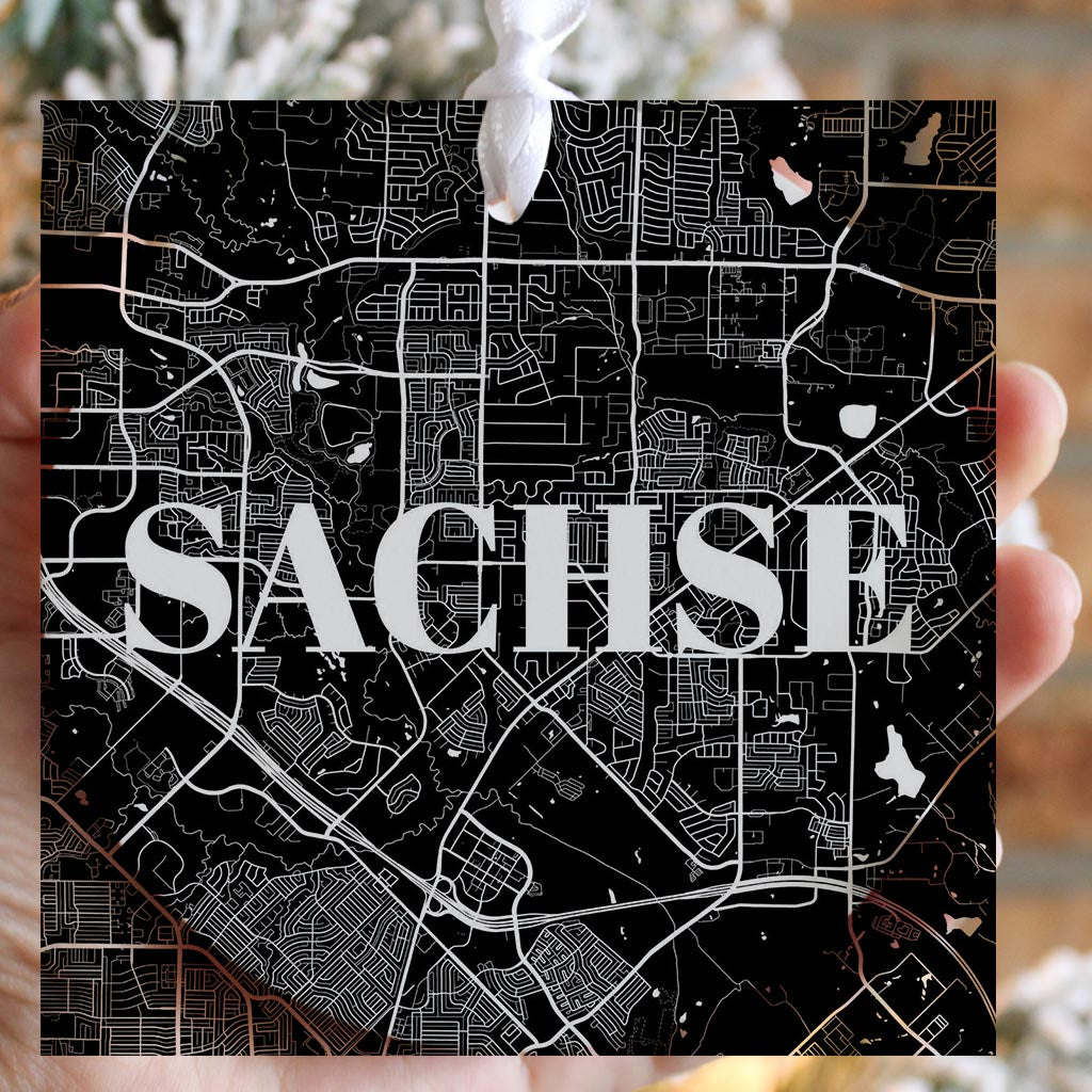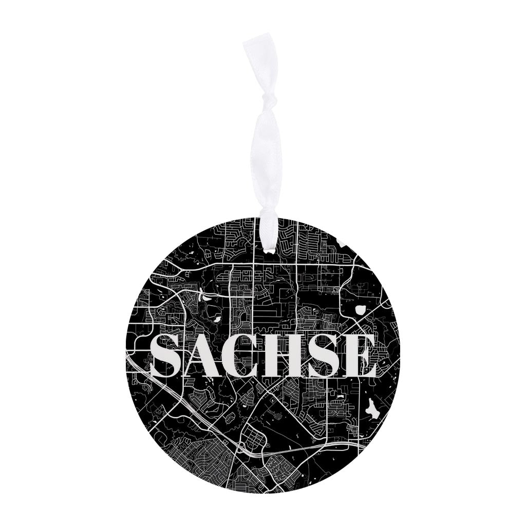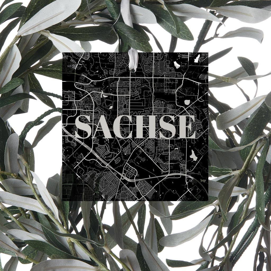 Minimalistic B&W Texas Sachse Map | Wood Ornament | Eaches | Min 6