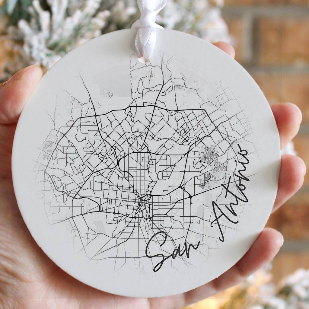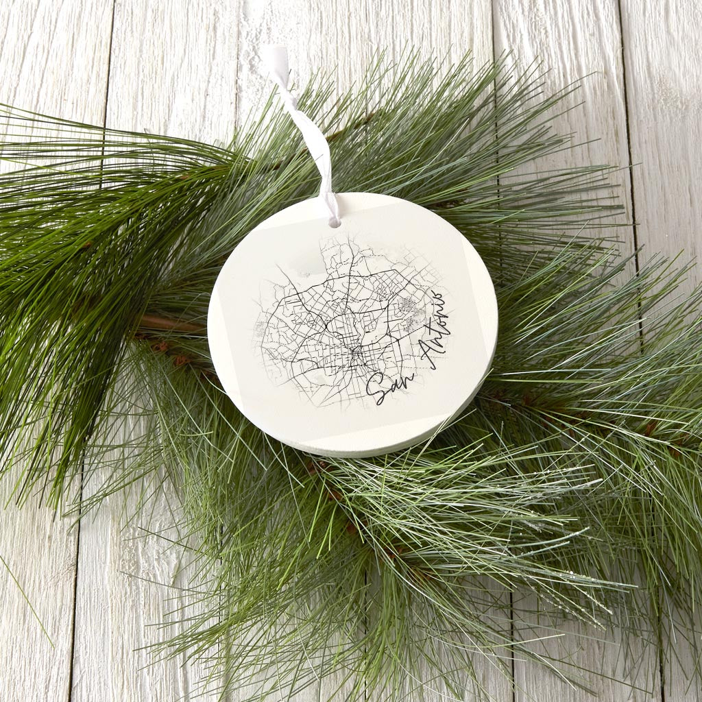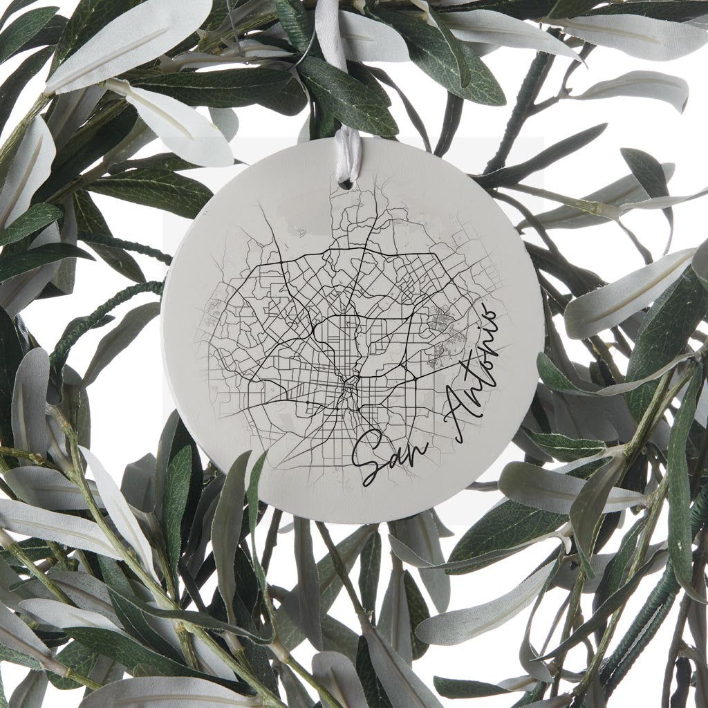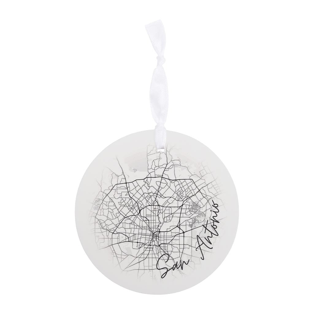 Minimalistic B&W Texas San Antonio Circle Map | Wood Ornament | Eaches | Min 6