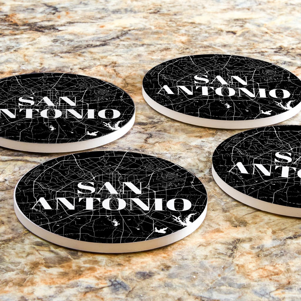 Minimalistic B&W Texas San Antonio Map | Absorbent Coasters | Set of 4 | Min 2