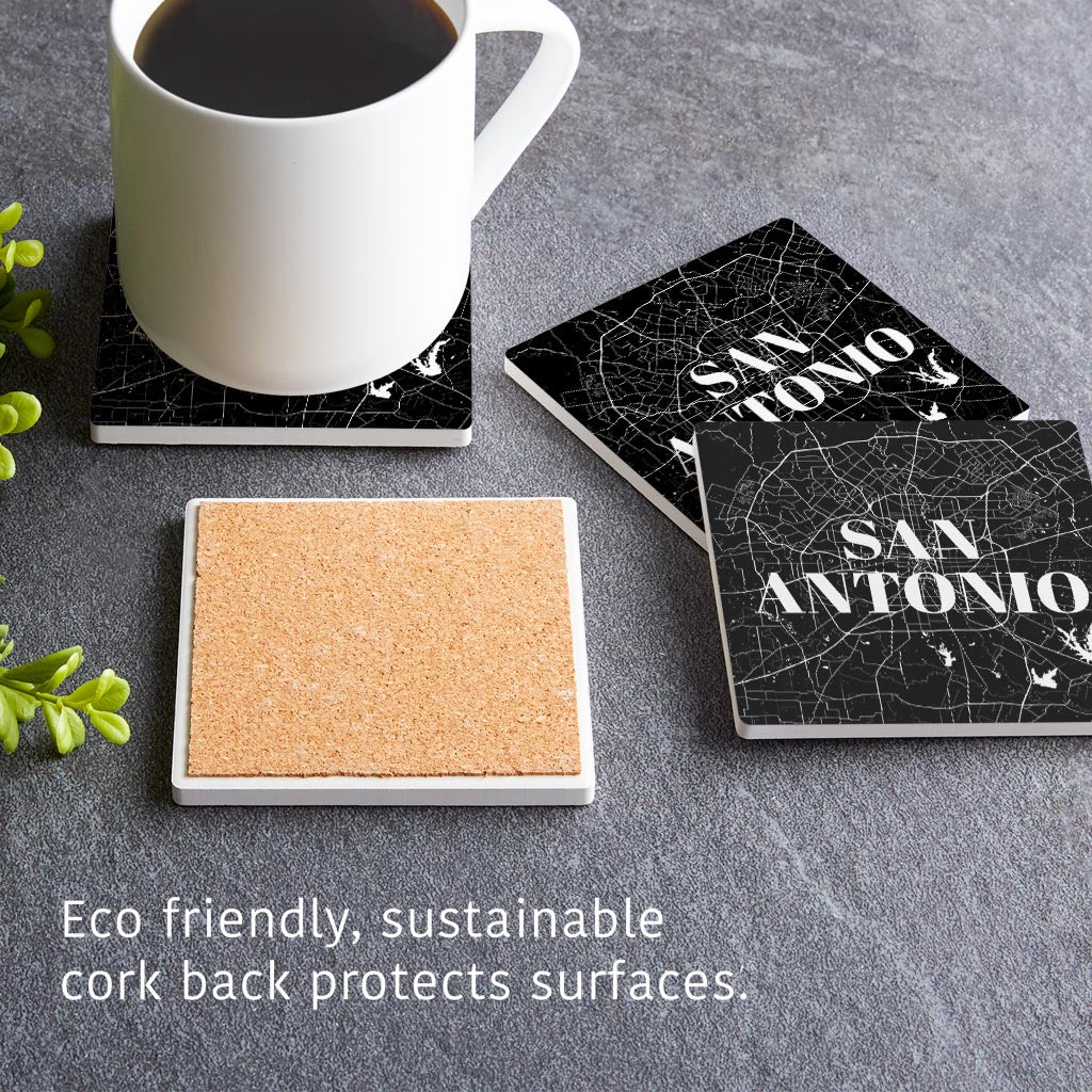 Minimalistic B&W Texas San Antonio Map | Absorbent Coasters | Set of 4 | Min 2