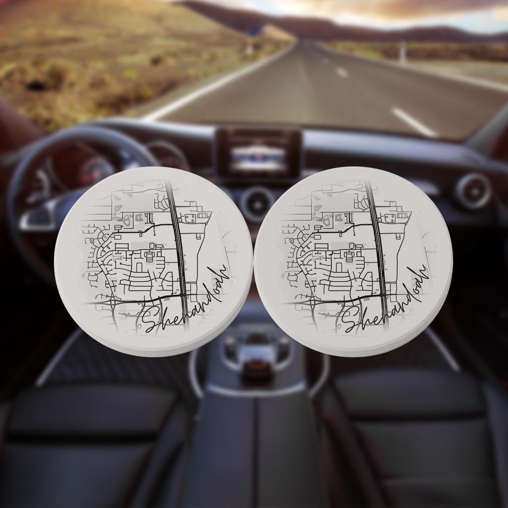 Minimalistic B&W Texas Shenandoah Circle Map | Absorbent Car Coasters | Set of 2 | Min 4