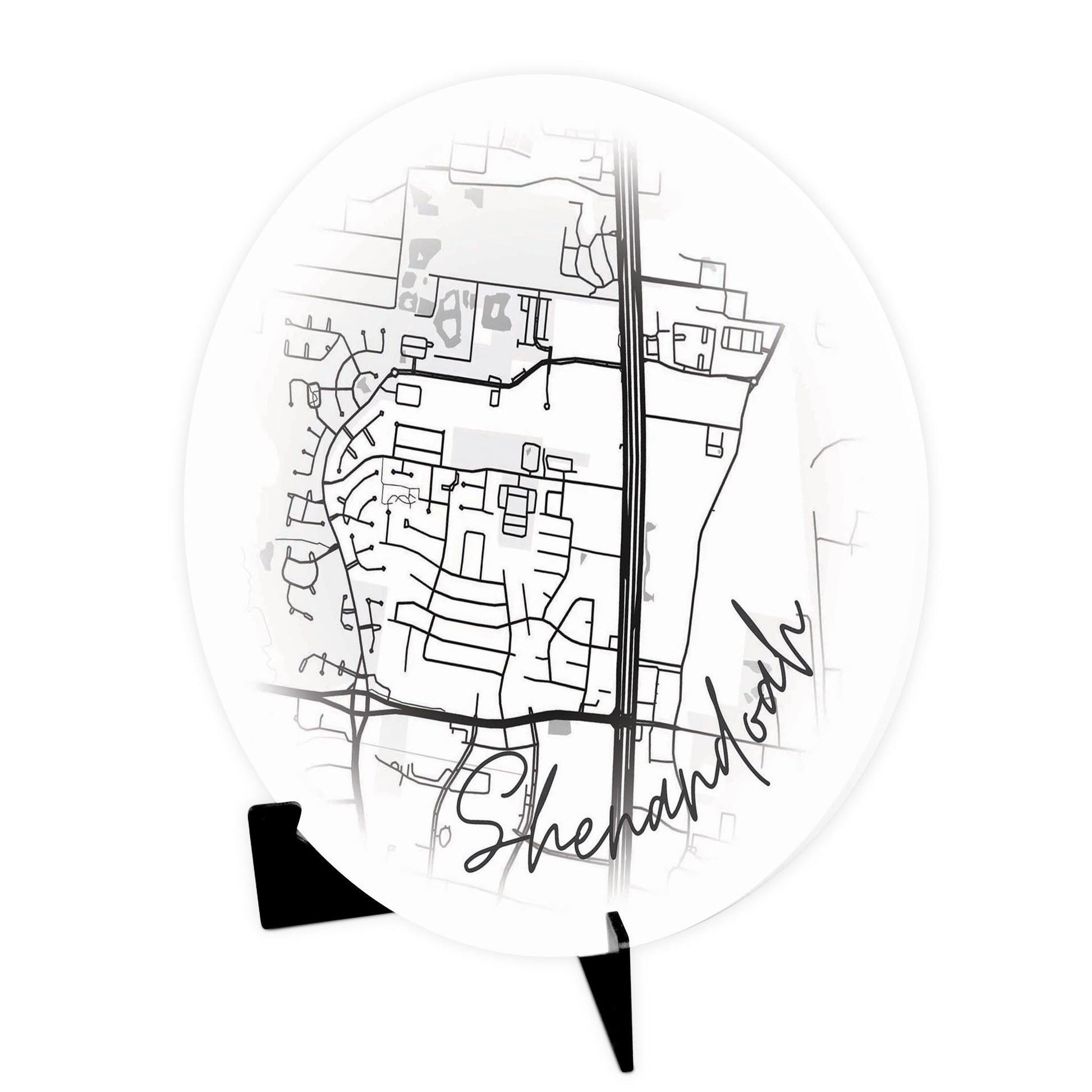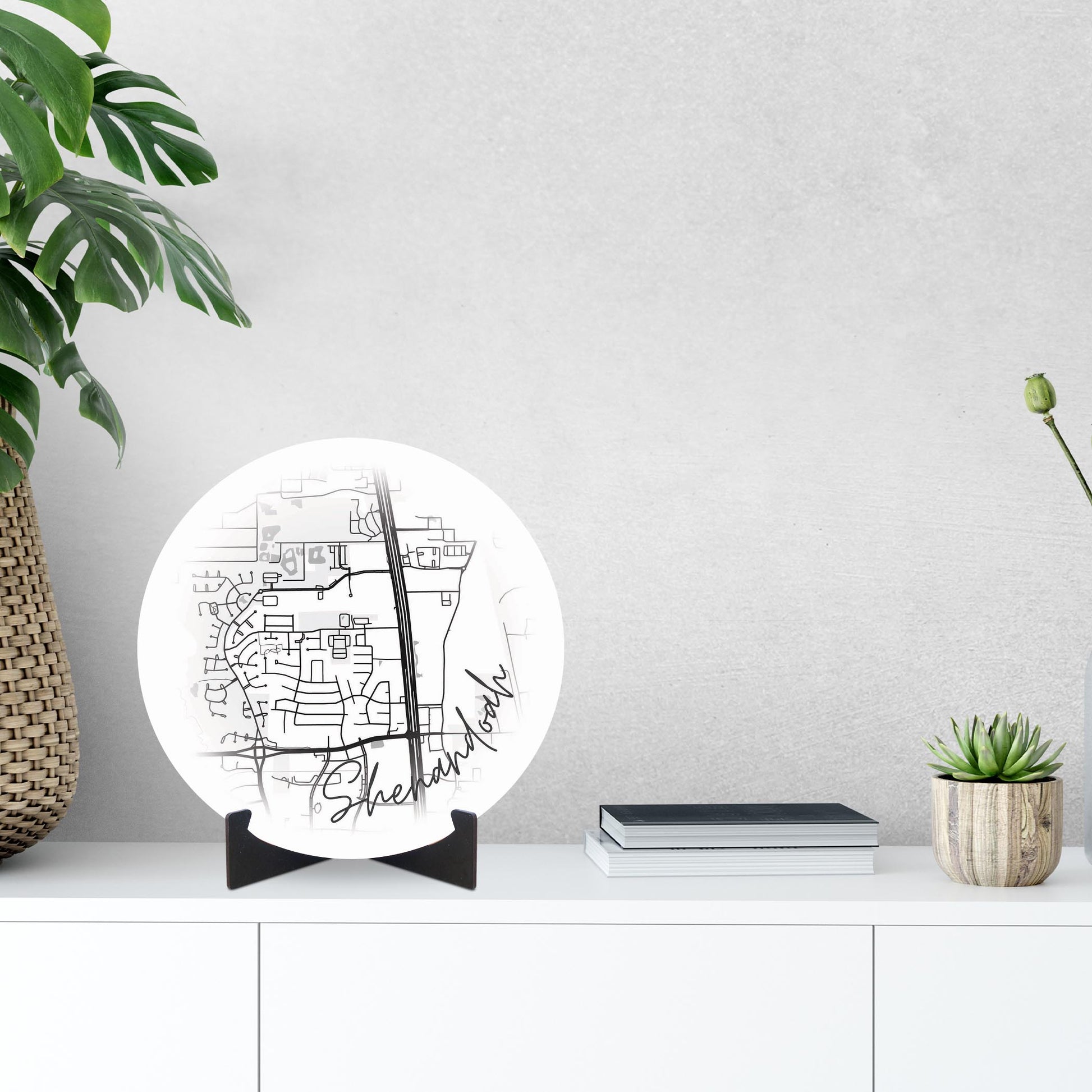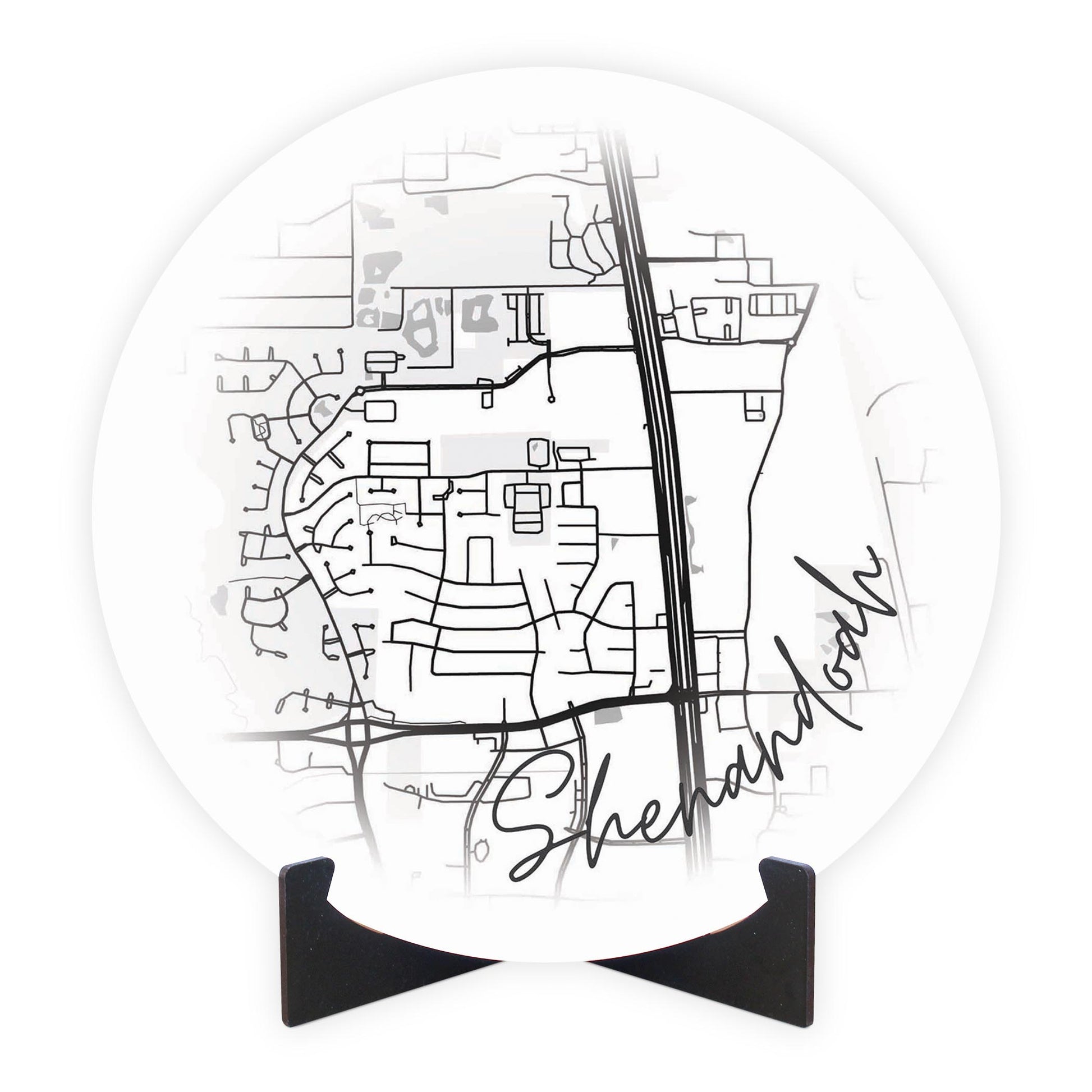 Minimalistic B&W Texas Shenandoah Circle Map | Wood Sign | Eaches | Min 1