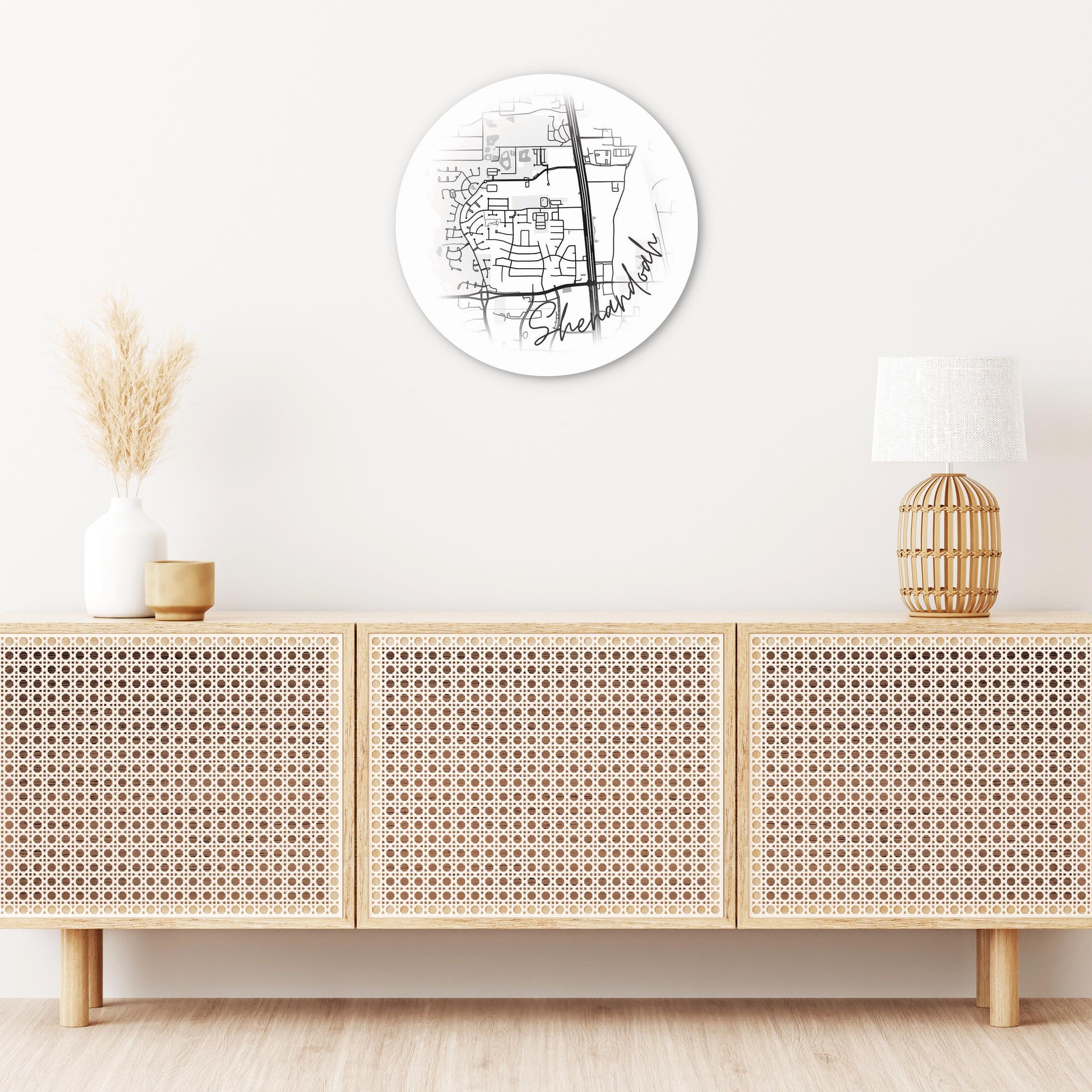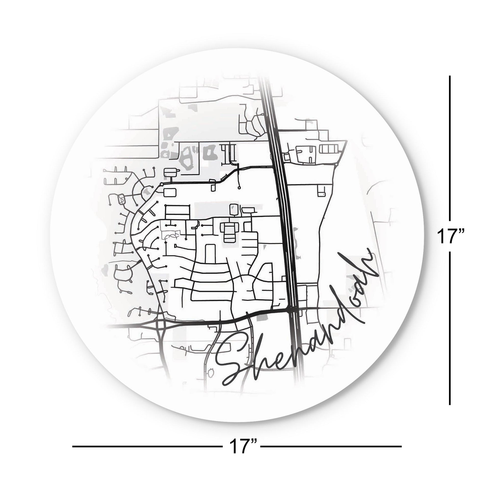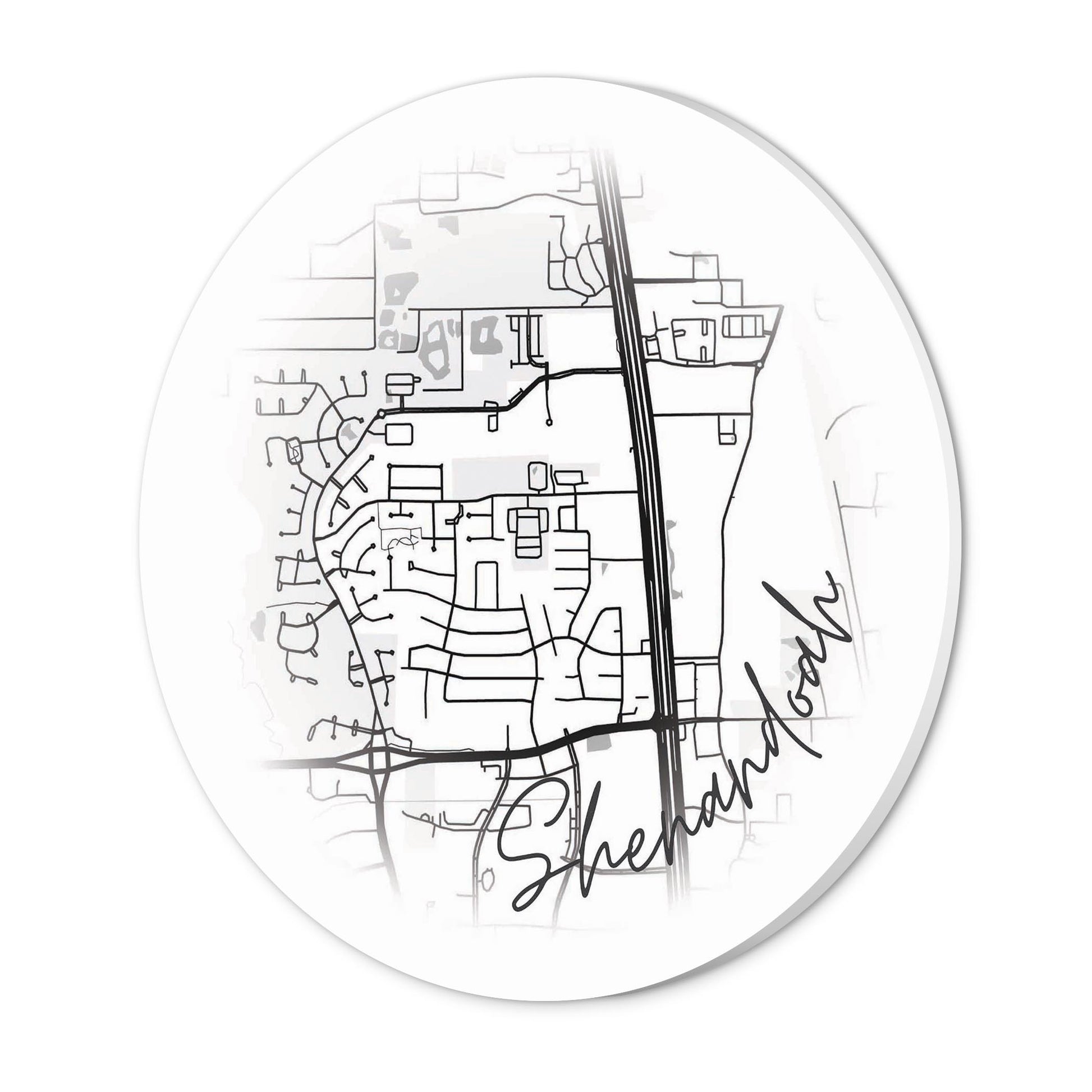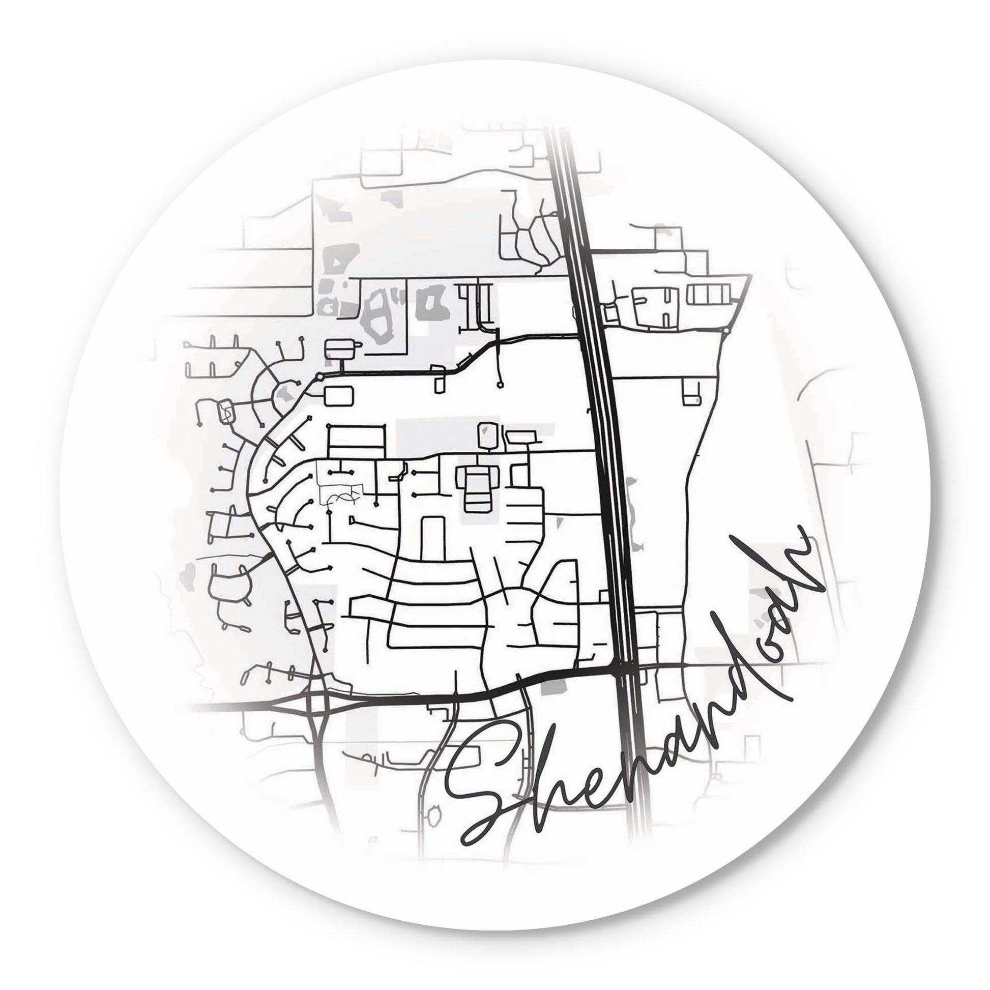 Minimalistic B&W Texas Shenandoah Circle Map | Wood Sign | Eaches | Min 1