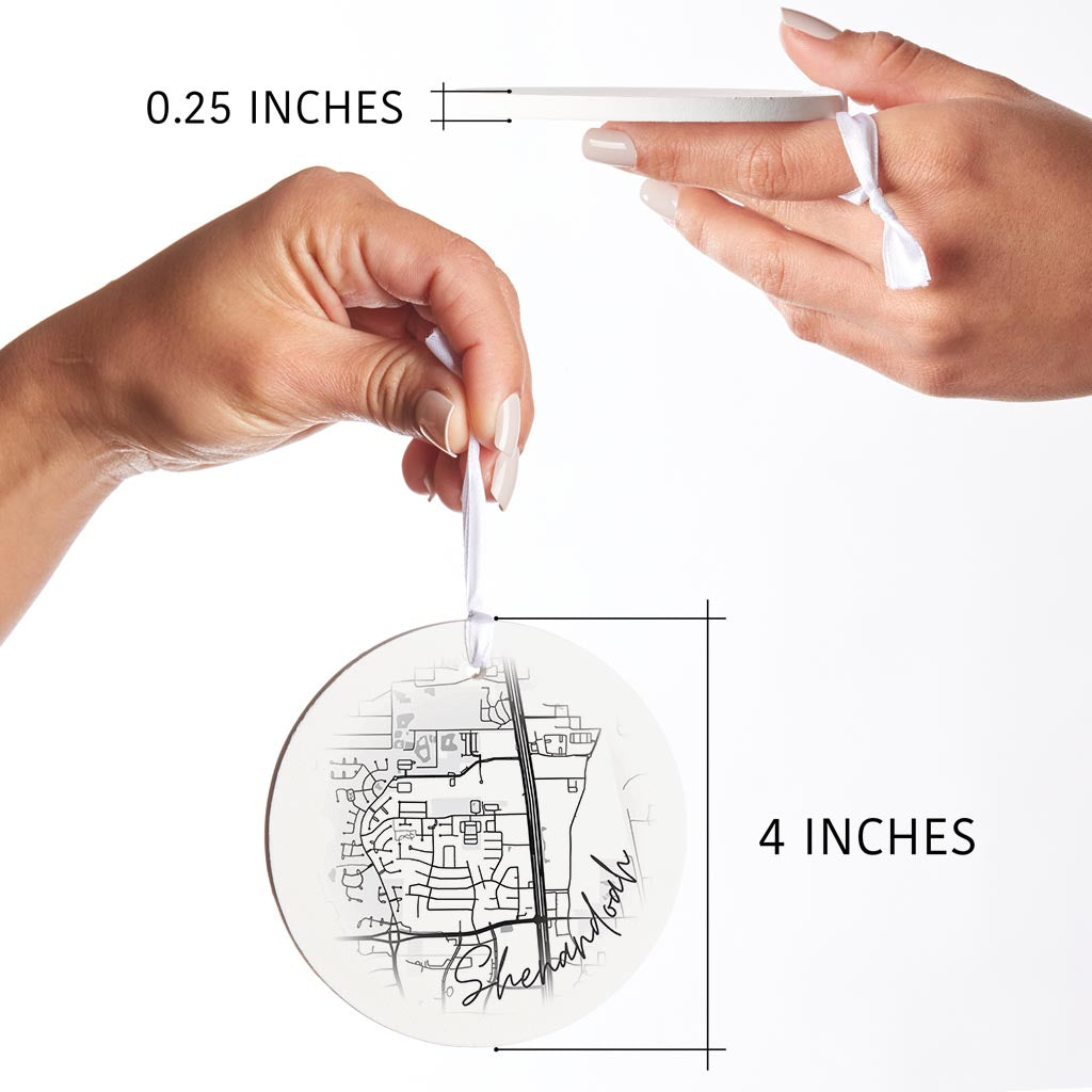Minimalistic B&W Texas Shenandoah Circle Map | Wood Ornament | Eaches | Min 6