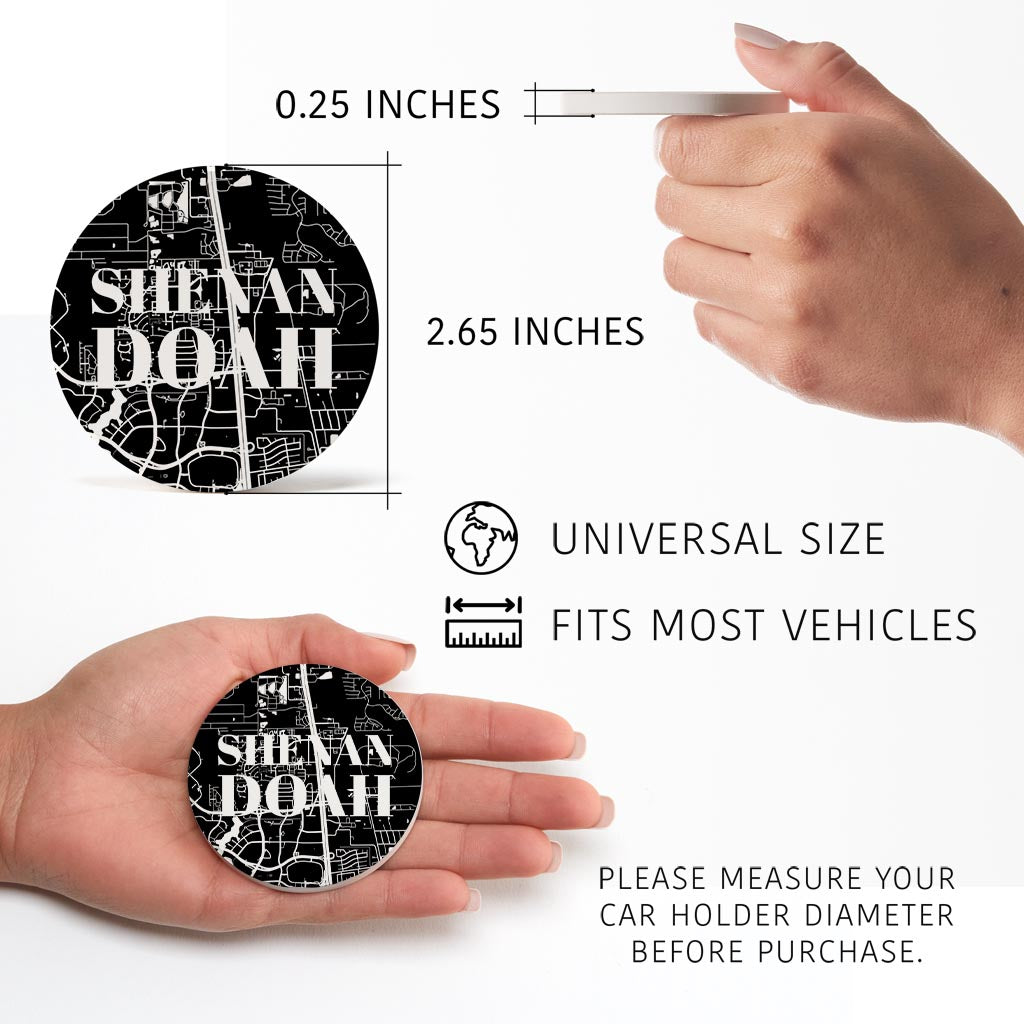Minimalistic B&W Texas Shenandoah Map | Absorbent Car Coasters | Set of 2 | Min 4