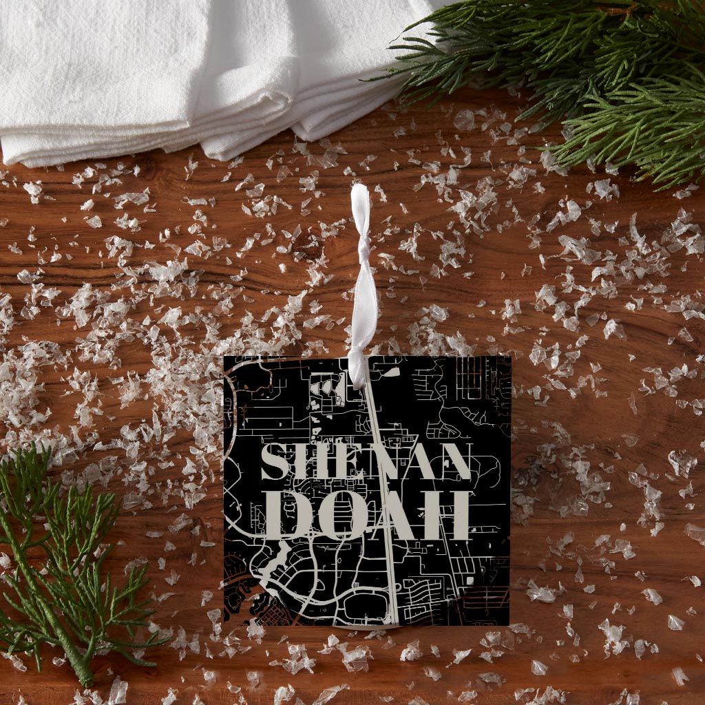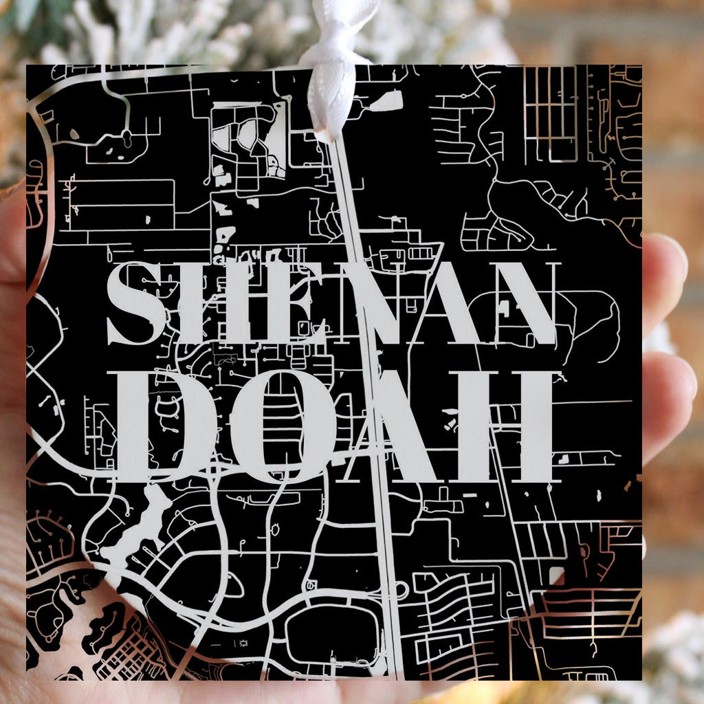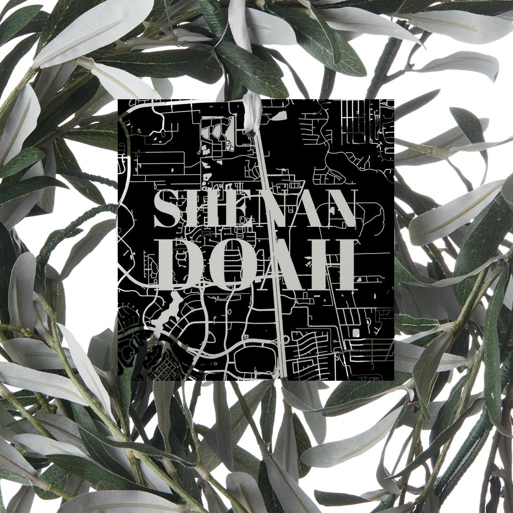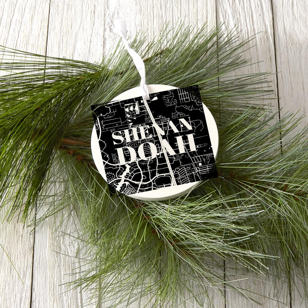 Minimalistic B&W Texas Shenandoah Map | Wood Ornament | Eaches | Min 6
