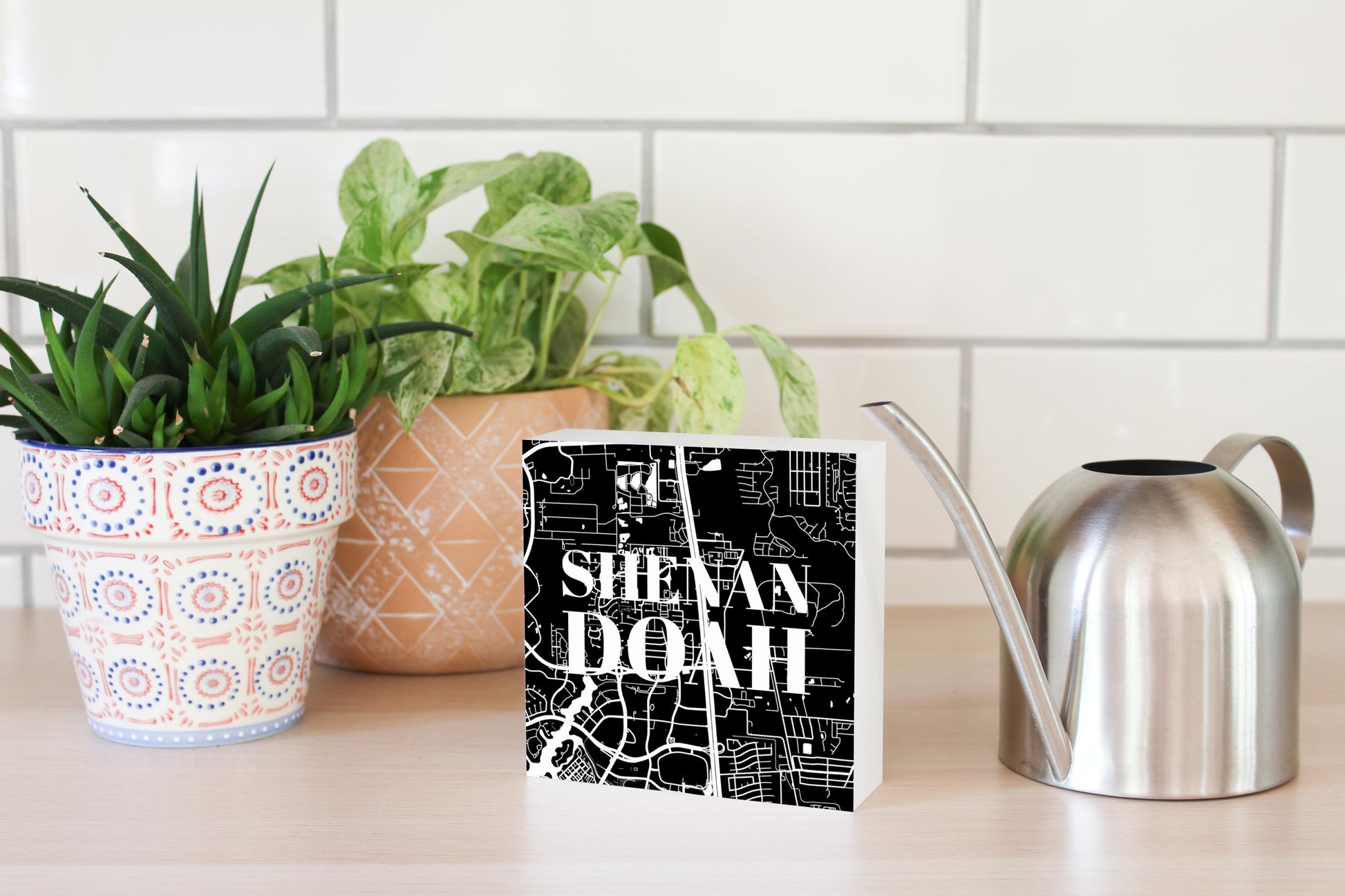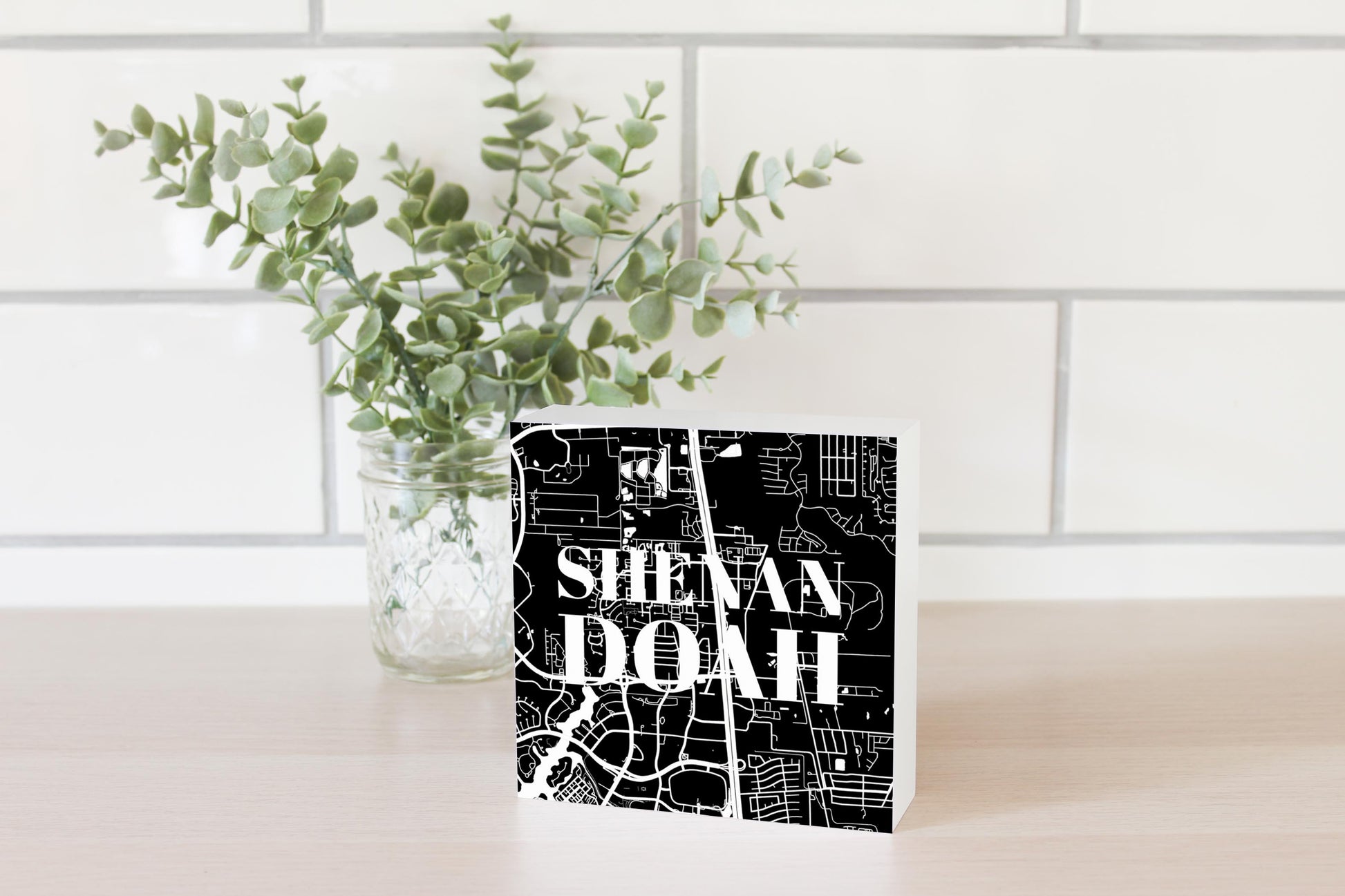 Minimalistic B&W Texas Shenandoah Map | Wood Block | Eaches | Min 4