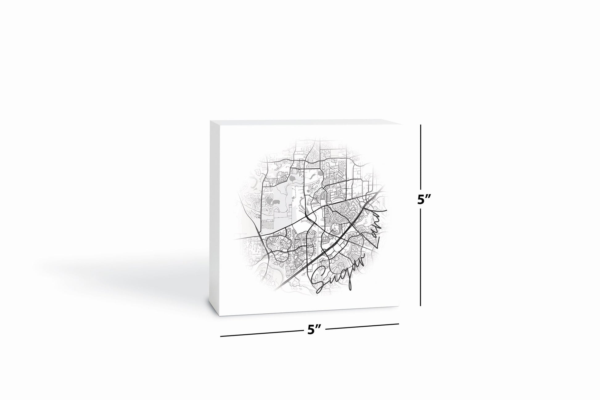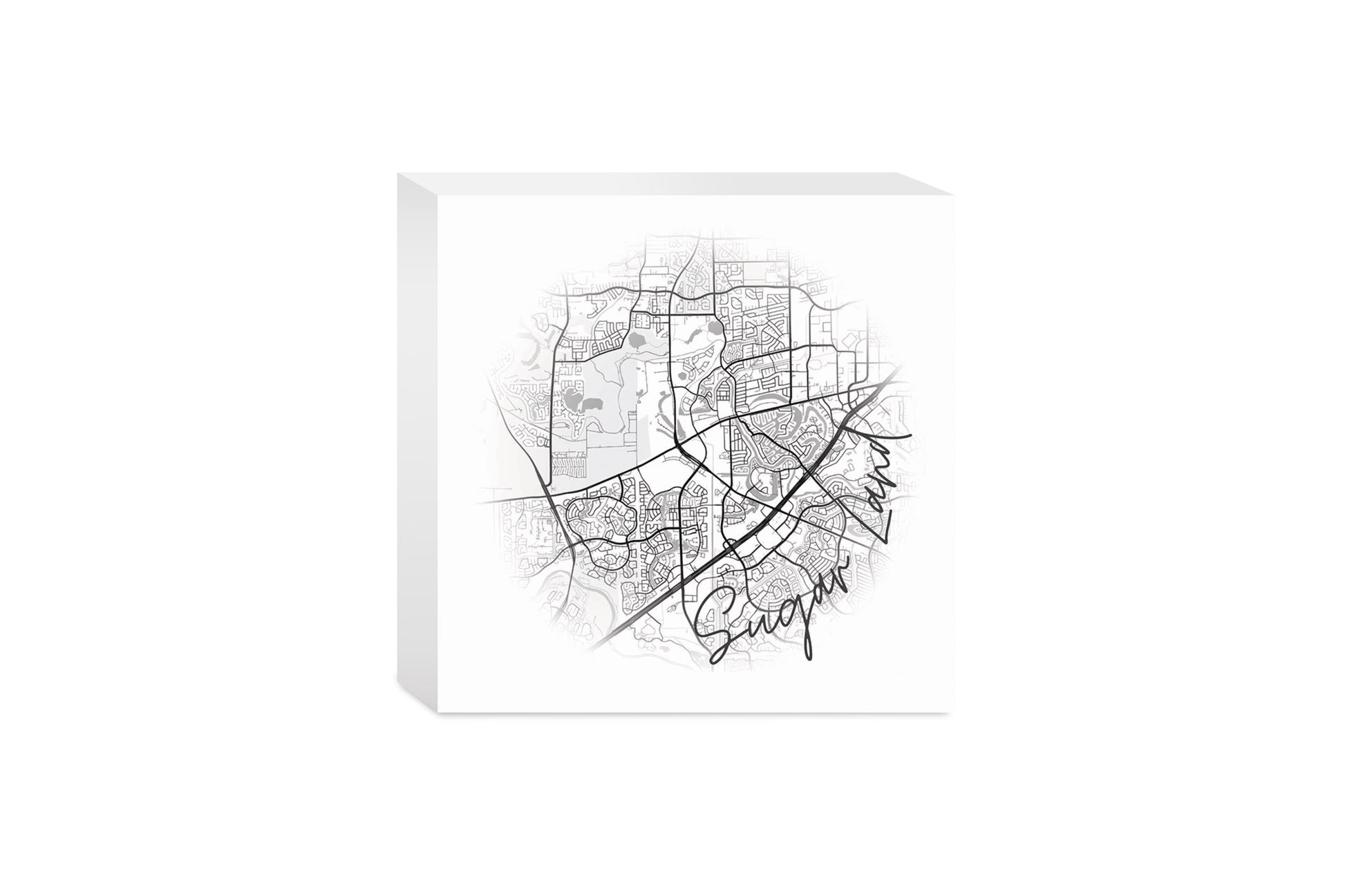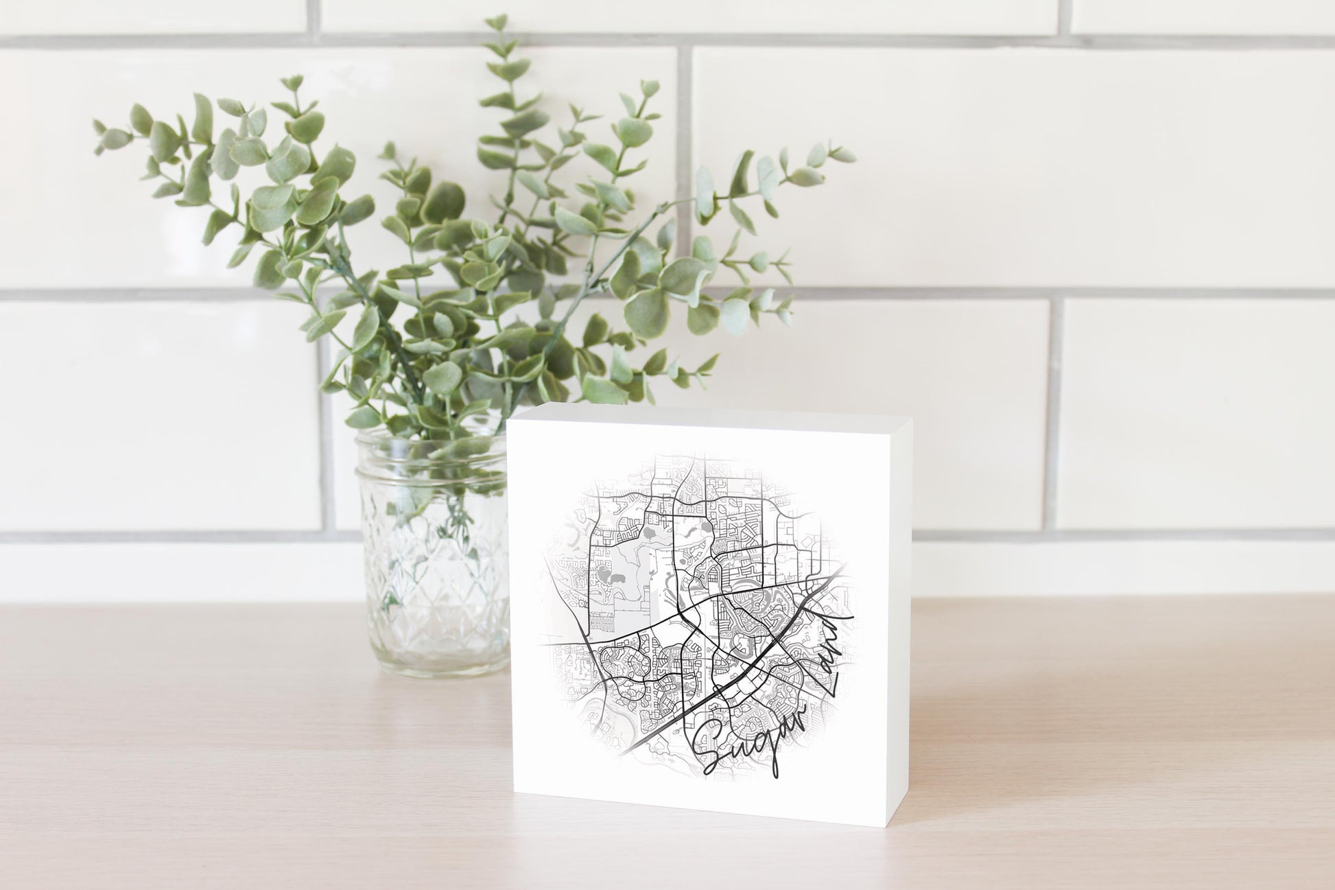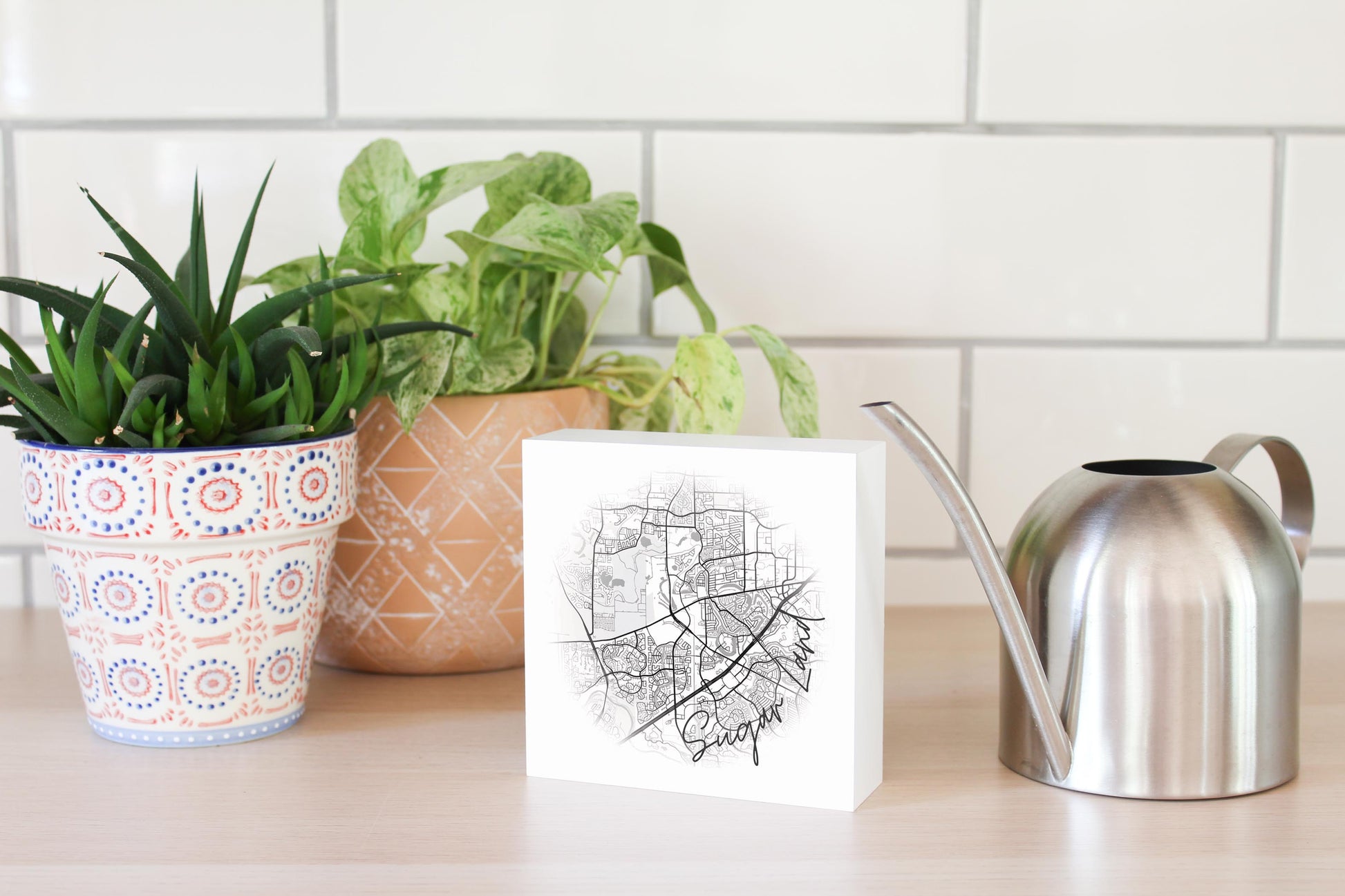Minimalistic B&W Texas Sugarland Circle Map| Wood Block | Eaches | Min 4