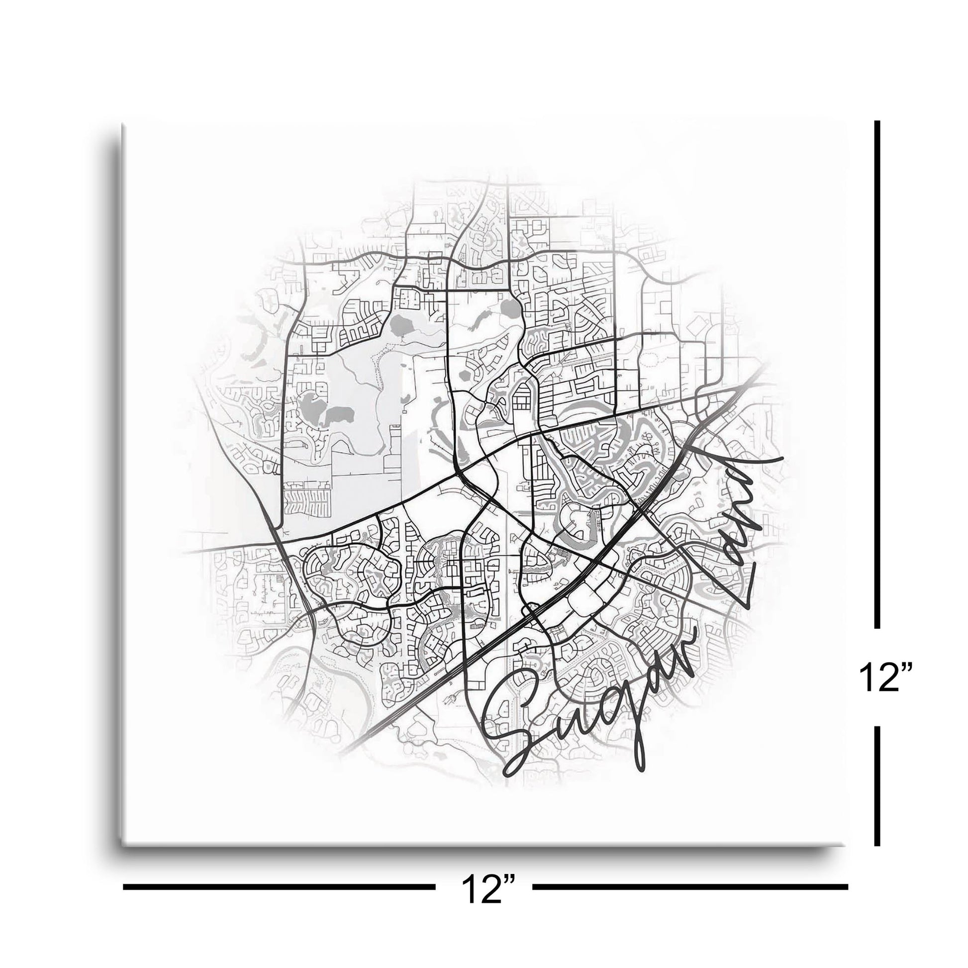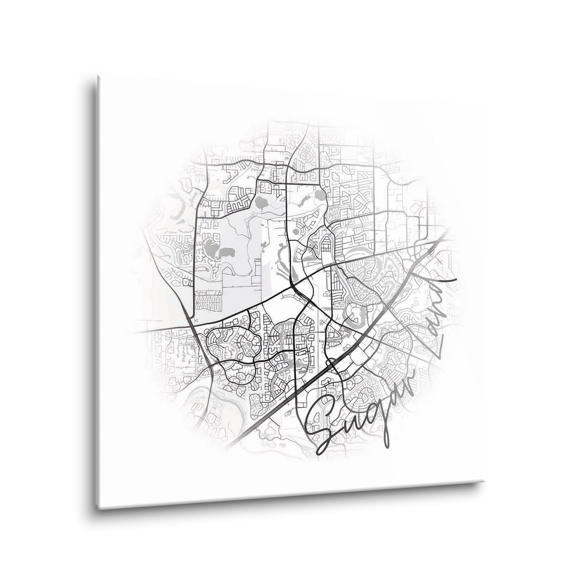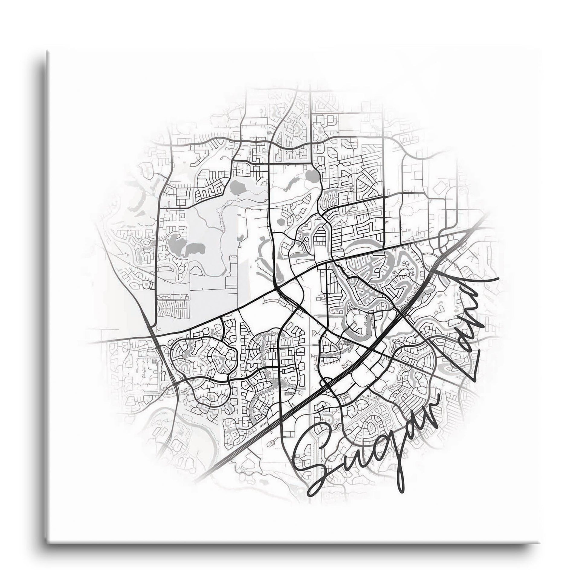 Minimalistic B&W Texas Sugarland Circle Map | Hi-Def Glass Art | Eaches | Min 1