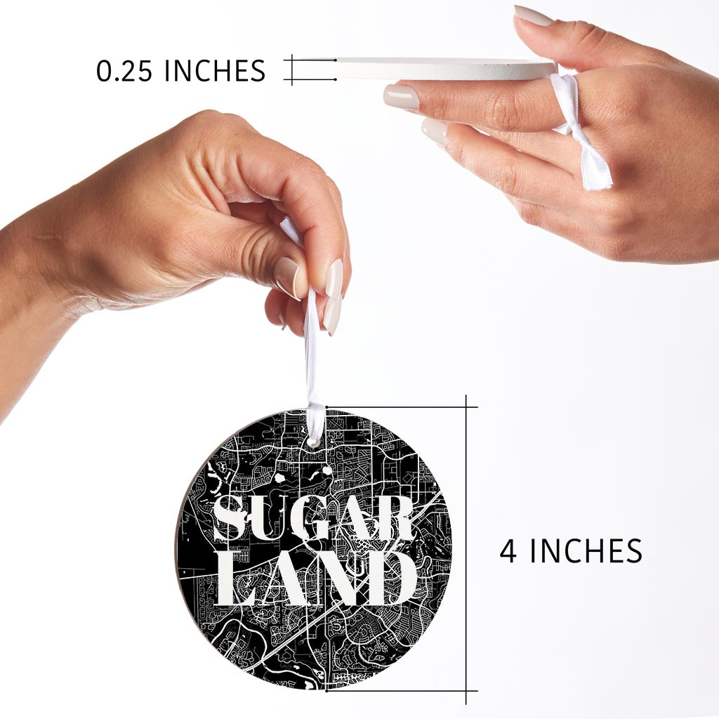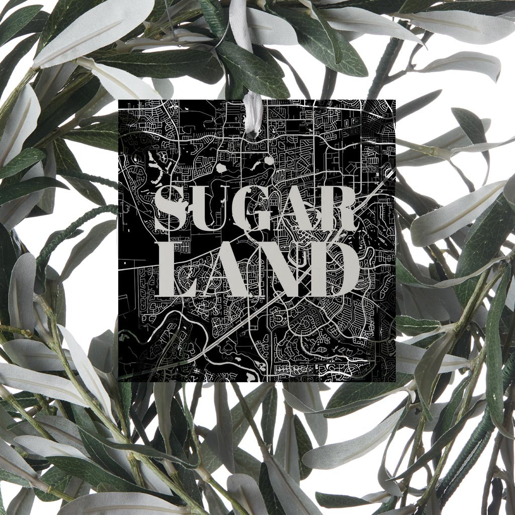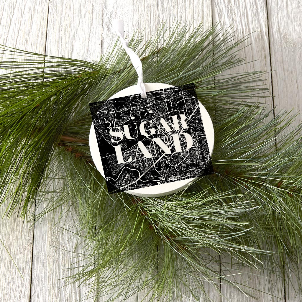 Minimalistic B&W Texas Sugarland Map | Wood Ornament | Eaches | Min 6