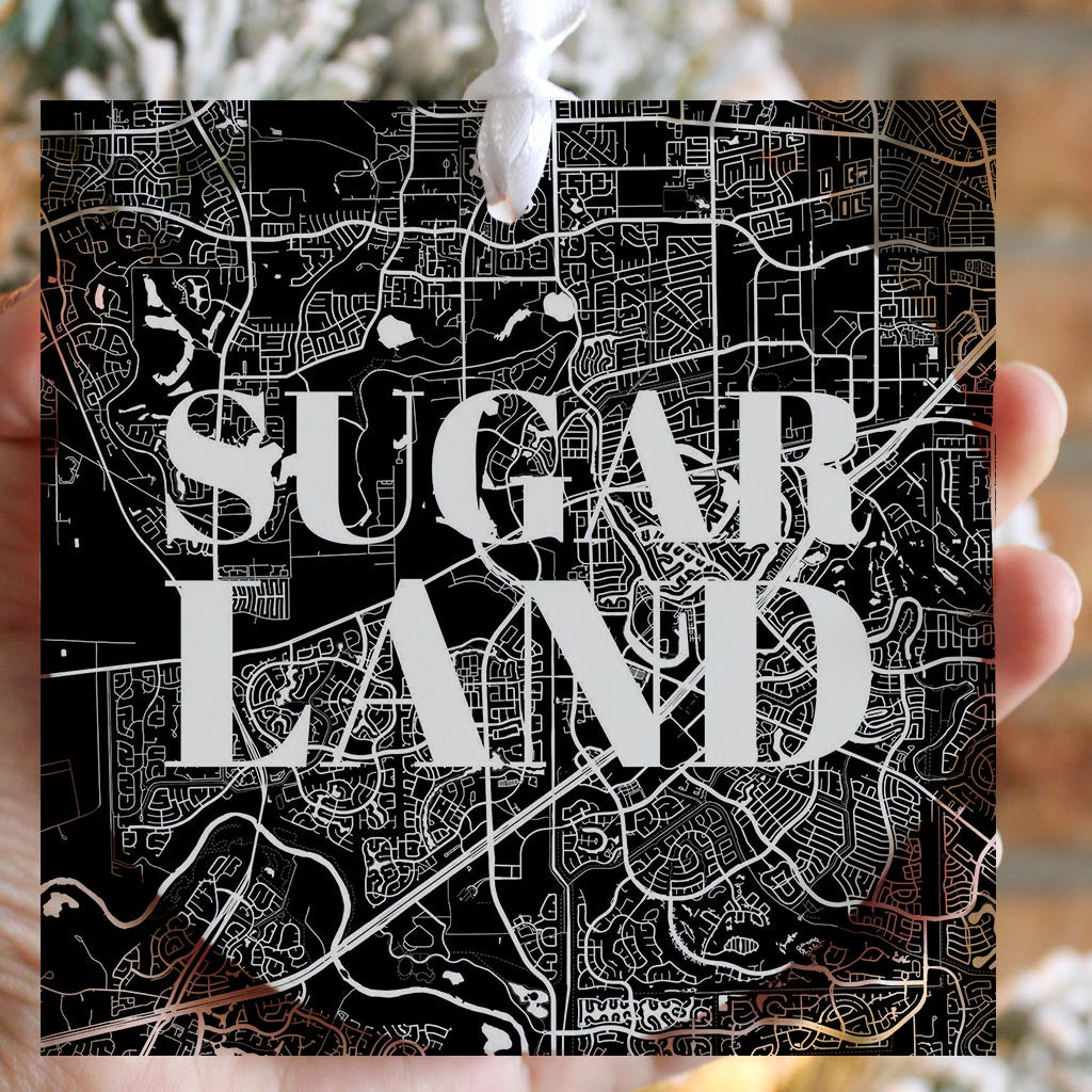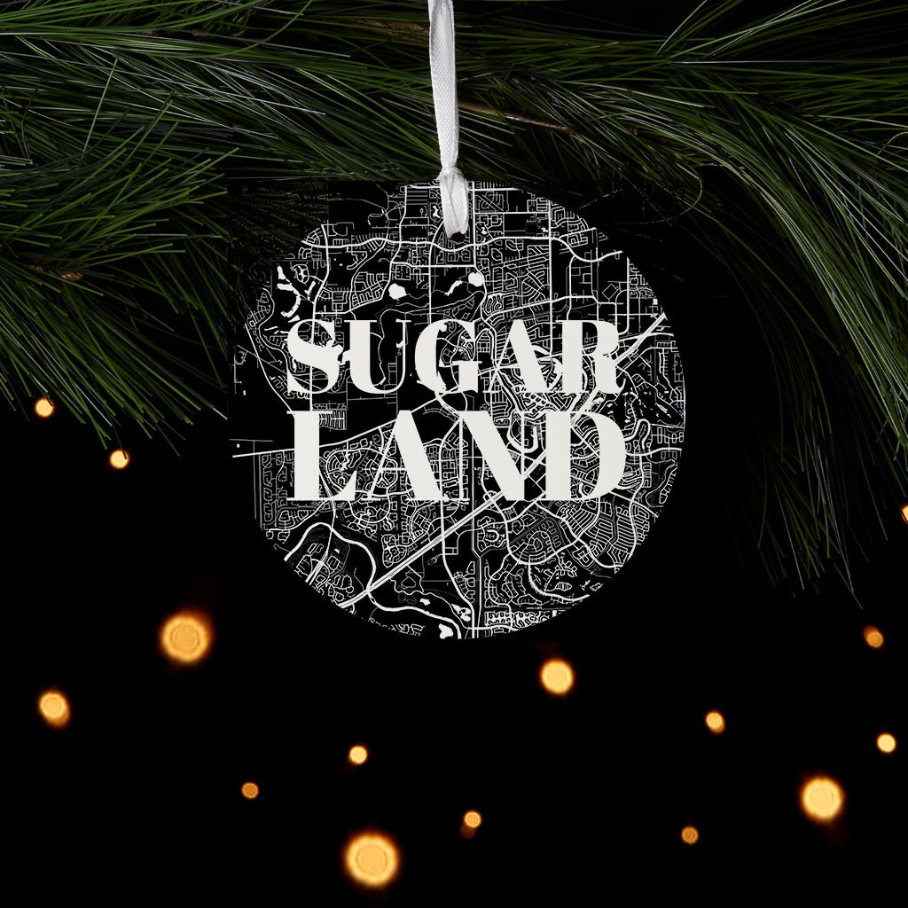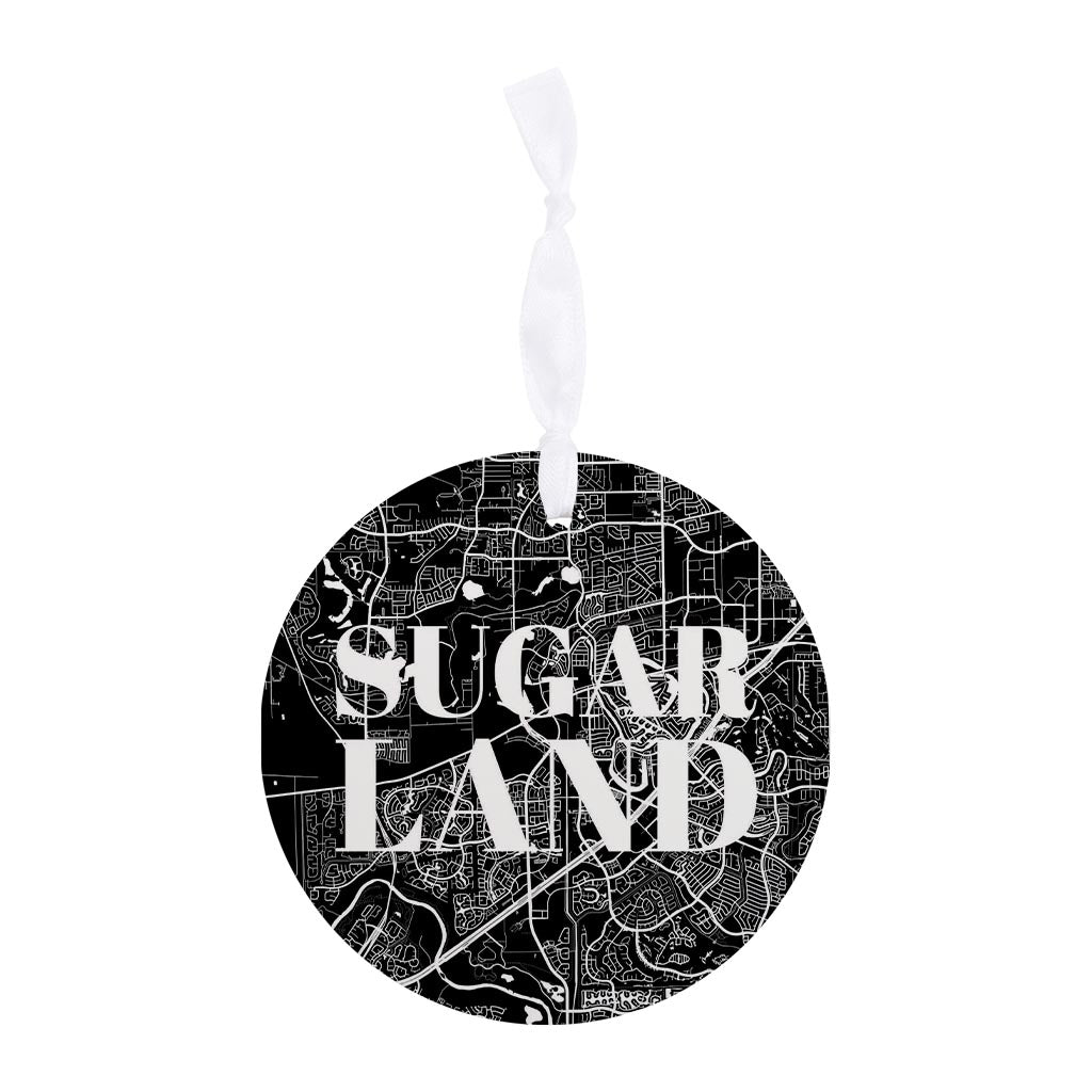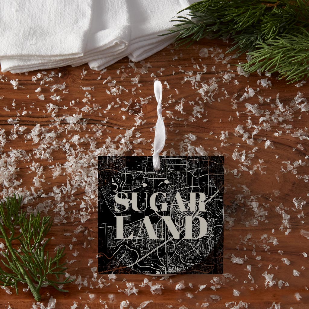 Minimalistic B&W Texas Sugarland Map | Wood Ornament | Eaches | Min 6