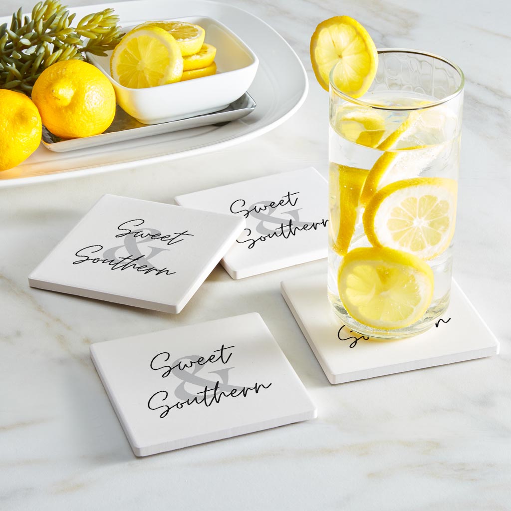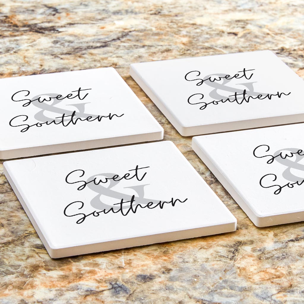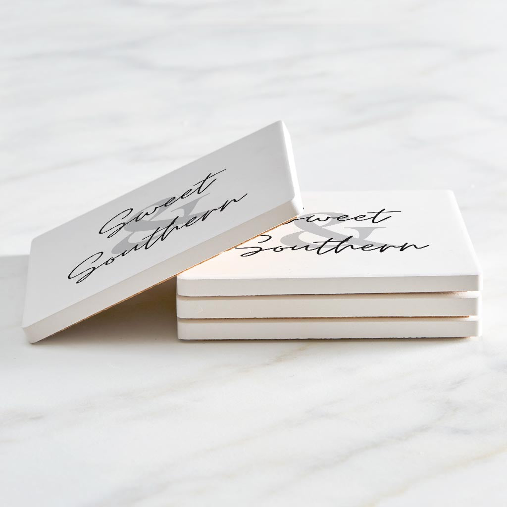 Minimalistic B&W Texas Sweet Southern | Absorbent Coasters | Set of 4 | Min 2